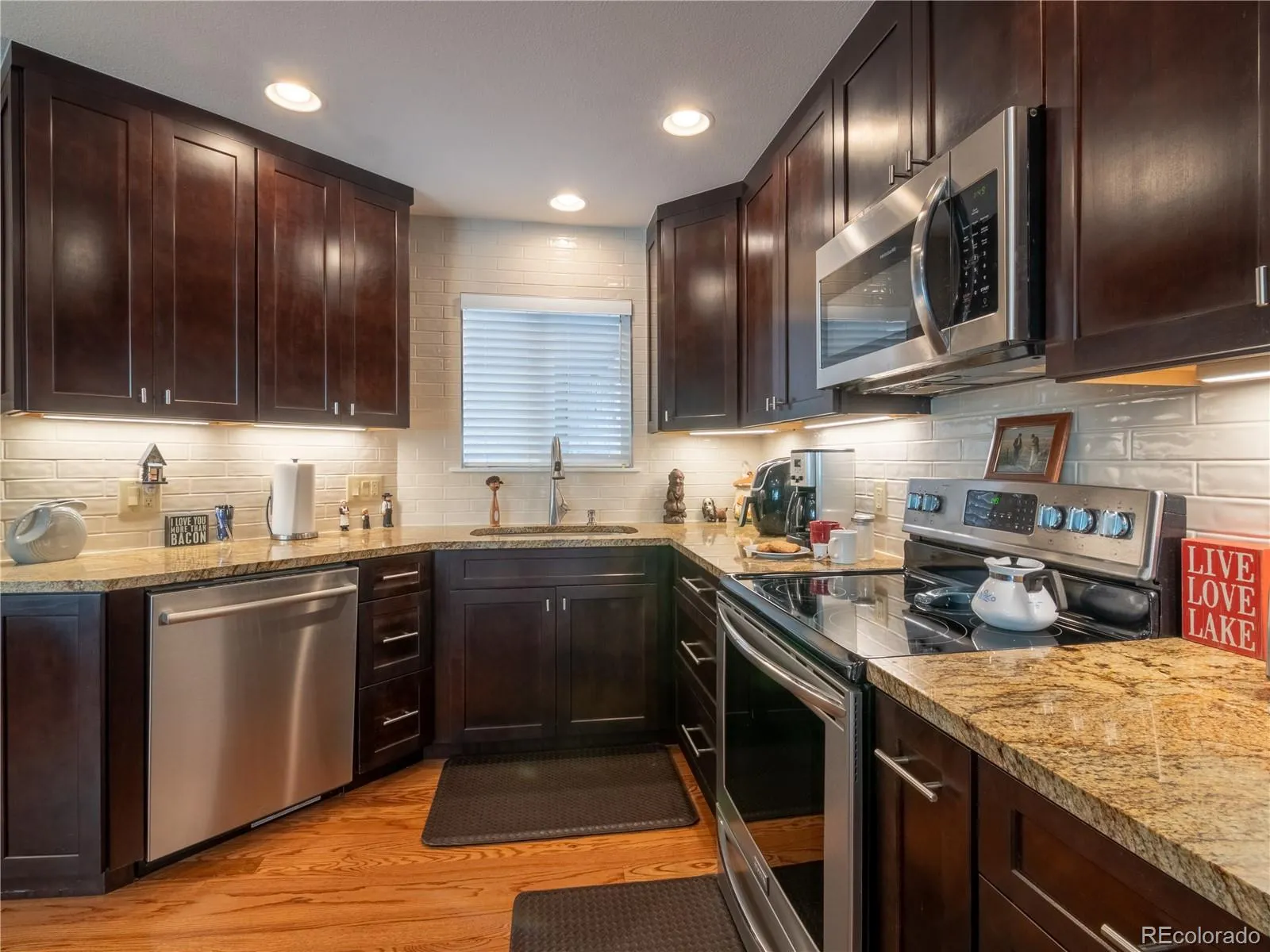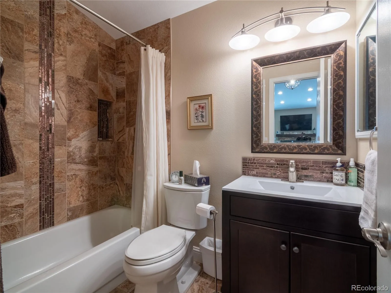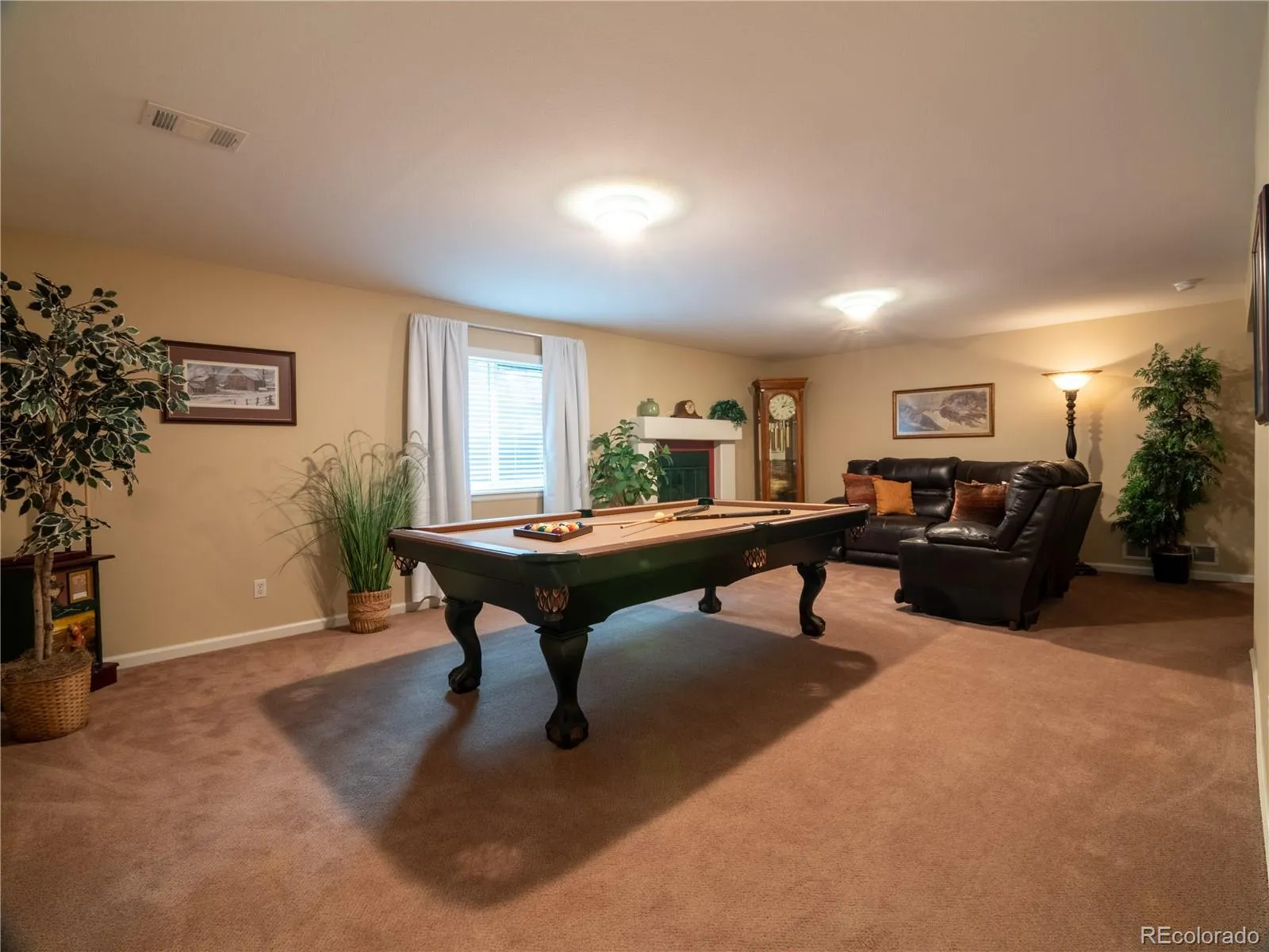 The finished basement expands your living space with a family room, a second fireplace, and an en-suite bedroom tucked behind a privacy door—perfect for overnight guests. Backyard features a patio and deck, a gas valve, and is wired for a hot tub. HOA covers the front yard lawn and snow removal. Solar panels are owned.