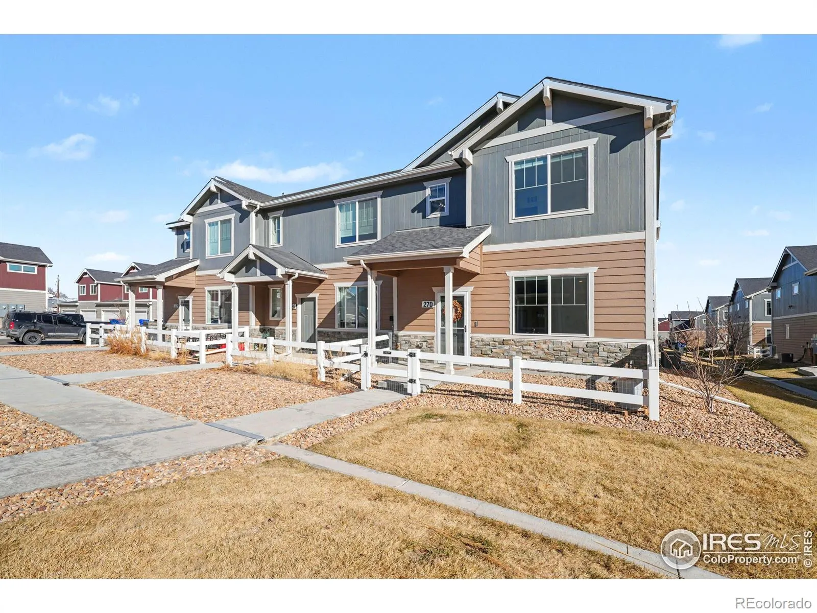 Stunning, sun-drenched townhome! This bright, open floorplan overlooks open space and is ideally located in the center of the development on one of the best lots. Entertain from the spacious kitchen complete with stone counters, stainless steel appliances (all stay), tile backsplash, walk-in pantry, custom live-edge shelving, undermount sink, and wraparound bar seating. The large living room offers plenty of room to spread out and overlooks the fenced yard and manicured grounds. The airy Primary Retreat features a private bath with oversized shower and HUGE walk-in closet. Curl up with a good book in the cozy loft/office space on the upper level or sip your morning coffee on the covered porch. Large laundry room on the upper level offers convenience and storage. The windows on this end-unit follow the sun bringing natural light from dawn to dusk. High-end pull-down cellular insulated shades are installed throughout the home. Tech touches include a premium Ecobee digital thermostat, Ring doorbell, and LED lighting package. Large, insulated and heated garage with opener, bright LED bay lighting, and additional storage, HE furnace, 50-gallon water heater, and central air conditioning. The best part? Low HOA for exterior maintenance and NO METRO DISTRICT taxes! Adjacent to community open space and trails, close to historic downtown Johnstown, the YMCA, parks, dining, and shopping. View today and make your next move your best move!