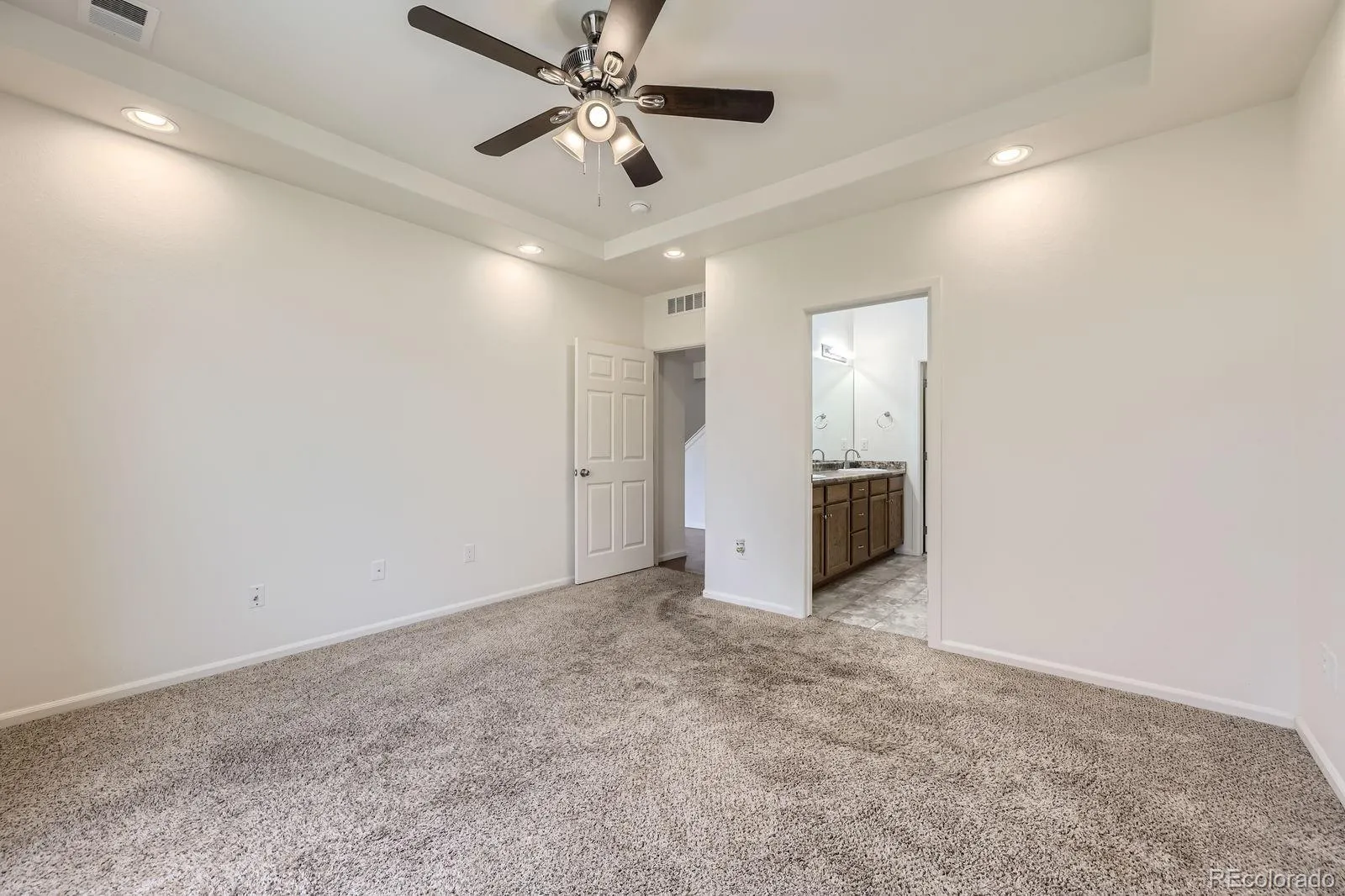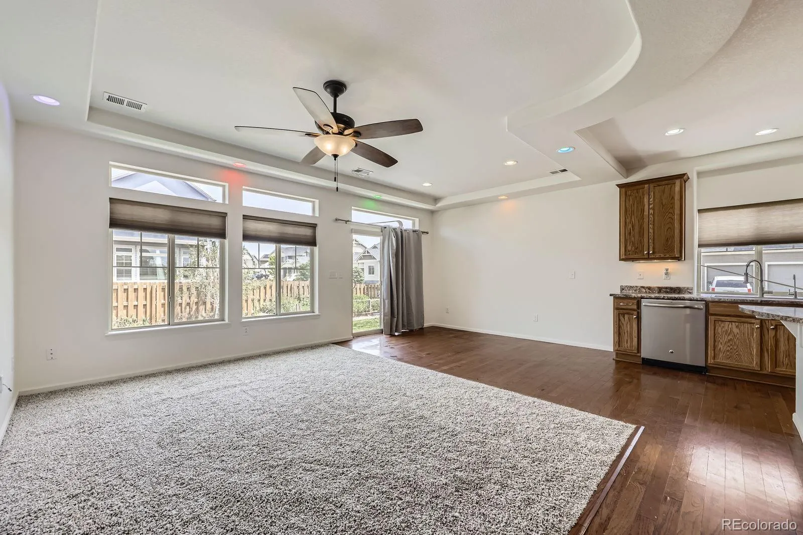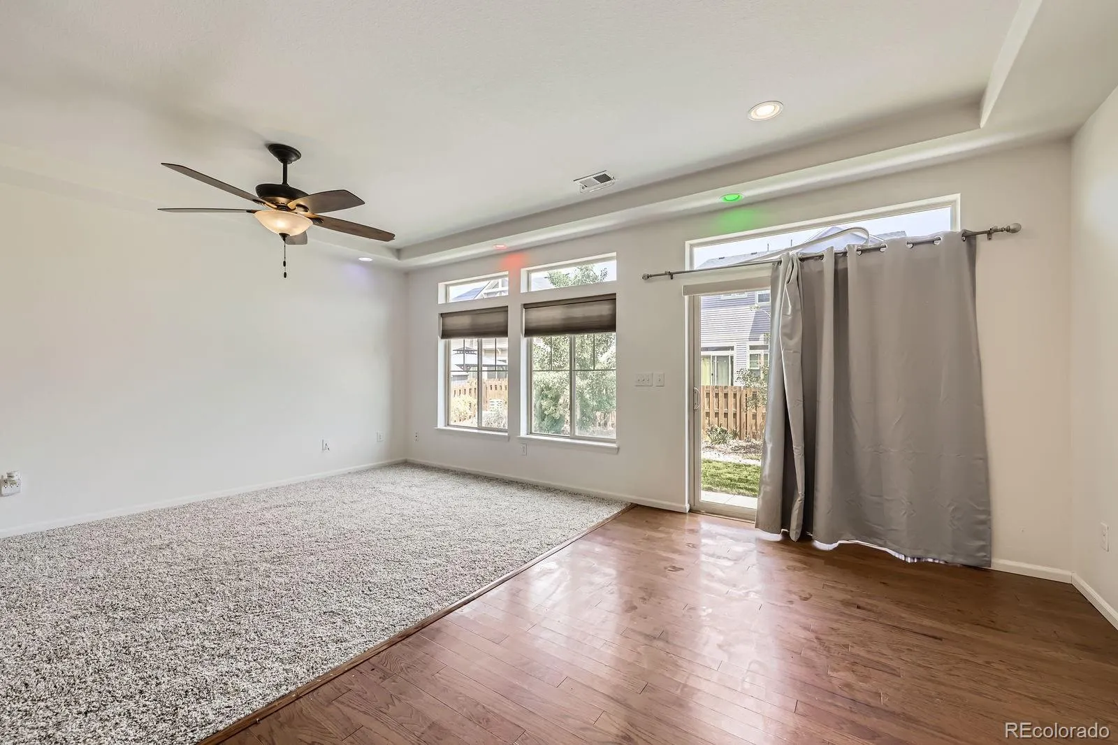 Welcome to this beautiful, newer 3-bedroom, 3-bath home in Turnberry Meadows that is truly move-in ready. Situated on a desirable corner lot, the property features a landscaped yard, raised garden bed, and an oversized patio—perfect for relaxing or entertaining. The home offers convenient main-level living with a spacious primary suite featuring abundant natural light, a walk-in closet, and a custom shower, plus a second main-level bedroom and full bath ideal for guests or a home office. The bright main living area showcases hardwood floors and an open-concept layout that flows seamlessly into the kitchen, complete with a large island, stainless steel appliances, and a walk-in pantry, along with main-floor laundry for added convenience. Upstairs, enjoy an expansive loft, a third bedroom, and a full bathroom, providing flexible living and workspace options. A very large unfinished basement with 9-foot ceilings offers excellent potential for future expansion or storage. Energy-efficient upgrades include solar panels and a hardwired EV charger. Located near neighborhood parks, a community pool, Bison Ridge Recreation Center, shopping, dining, schools, and major commuter routes, this home combines comfort, functionality, and location.