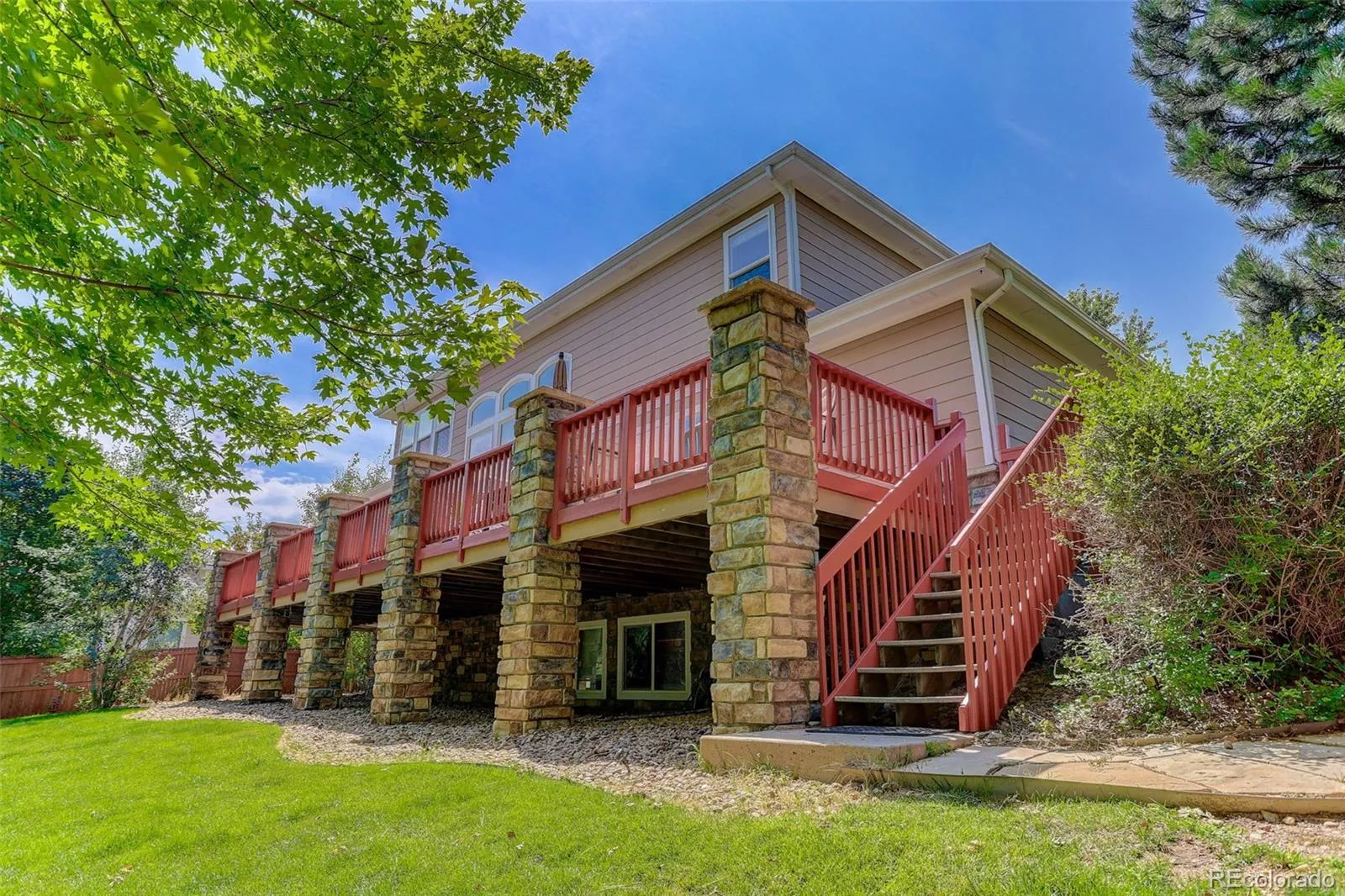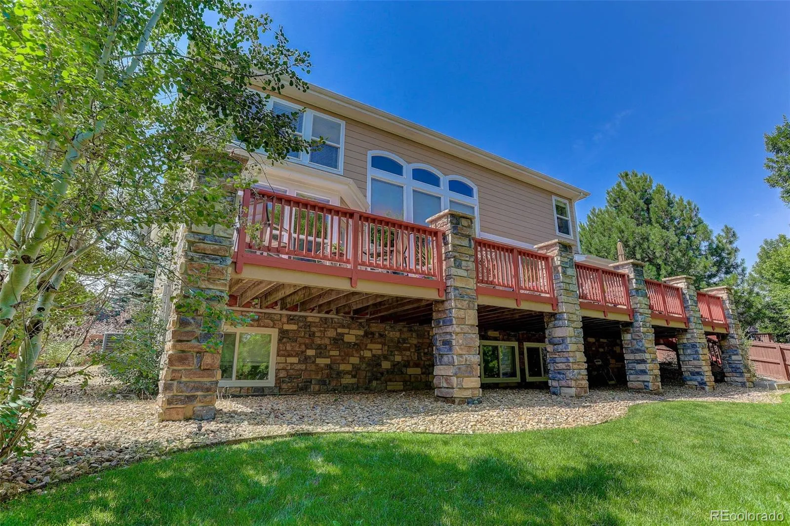 Tucked into a quiet cul-de-sac in Broomfield’s coveted Aspen Creek neighborhood, this home blends elegant design with scenic Colorado living in Broomfield, recently named the #1 best city to live in out west! The residence is defined by rustic elegance, highlighted by a soaring two-story family room with a dramatic stone fireplace with a log mantle and walls of windows that bathe the interior in natural light. The gourmet kitchen serves as the heart of the home, boasting slab granite countertops, modern stainless-steel appliances, and gleaming hardwood floors that flow throughout the main level. For those seeking flexibility, a dedicated study offers a quiet retreat for remote work, while the upstairs loft provides a versatile area for play or relaxation. The full basement provides lots of room for storage or expanded living area. Situated on a rare, oversized lot, the property offers a level of privacy and outdoor space that is increasingly hard to find. Step outside to the expansive deck, a true showstopper where privacy abounds in the summer months thanks to lush, mature landscaping and gorgeous maple trees. The location perfectly complements the home’s interior, providing direct access to scenic trails and a short walk to the neighborhood pool and the highly regarded Aspen Creek K-8 School. With a 3-car garage offering space for all your outdoor toys and affordable HOA fees covering trash, recycling, and common amenities, this home delivers an unbeatable lifestyle in the region’s premier community.
