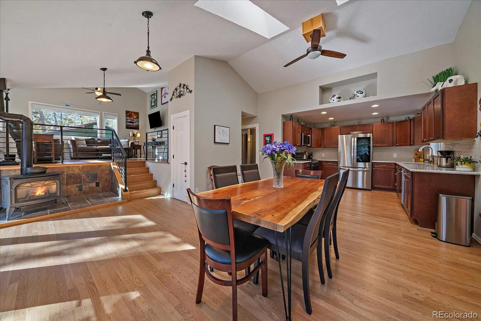 Stunning, remodeled home offers everything you can want. You can have it all from the quick walk to Maxwell Falls, to a totally updated home, huge (newer) garage and sunny location. The gentle driveway welcomes you to the home where you are greeted with plenty of parking (including RV parking). Once inside, a lovely great room is flooded with sunlight and this area makes a perfect space for dining and living space. Warm wood floors, skylights, vaulted ceilings and a natural gas fireplace add ambiance. Just beyond, is the totally remodeled kitchen with stainless steel appliances. There is a spacious fully renovated bath and laundry on this level. Just a few steps above the great room, is a family room with distant views. This area is open to the main level, making it an optimal entertaining space. There is also a niche for a desk area. A bedroom is located just off this room and can be used as the primary, if desired. Just a few steps from the main level, you will find two bedrooms, including the primary. The suite offers a recessed niche for a dresser and has a private en-suite bath with walk-in shower. A cozy bedroom could also be an office or play area. This space has access to the cleanest crawl space with tons of storage. Need more storage, a huge 2 car garage (built in 2020) can be home to your large vehicles, and overflow items and offers built-in shelving. Gentle parking area and acreage affords opportunities for basketball, playing fetch or just enjoying the land. Leave your tools behind – home has Hardie board siding, newer gutters, extensive fire mitigation and many newer windows and doors. This home feels MUCH newer and exudes pride of ownership. With Maxwell Falls trails just across the way, you have nature at your fingertips.