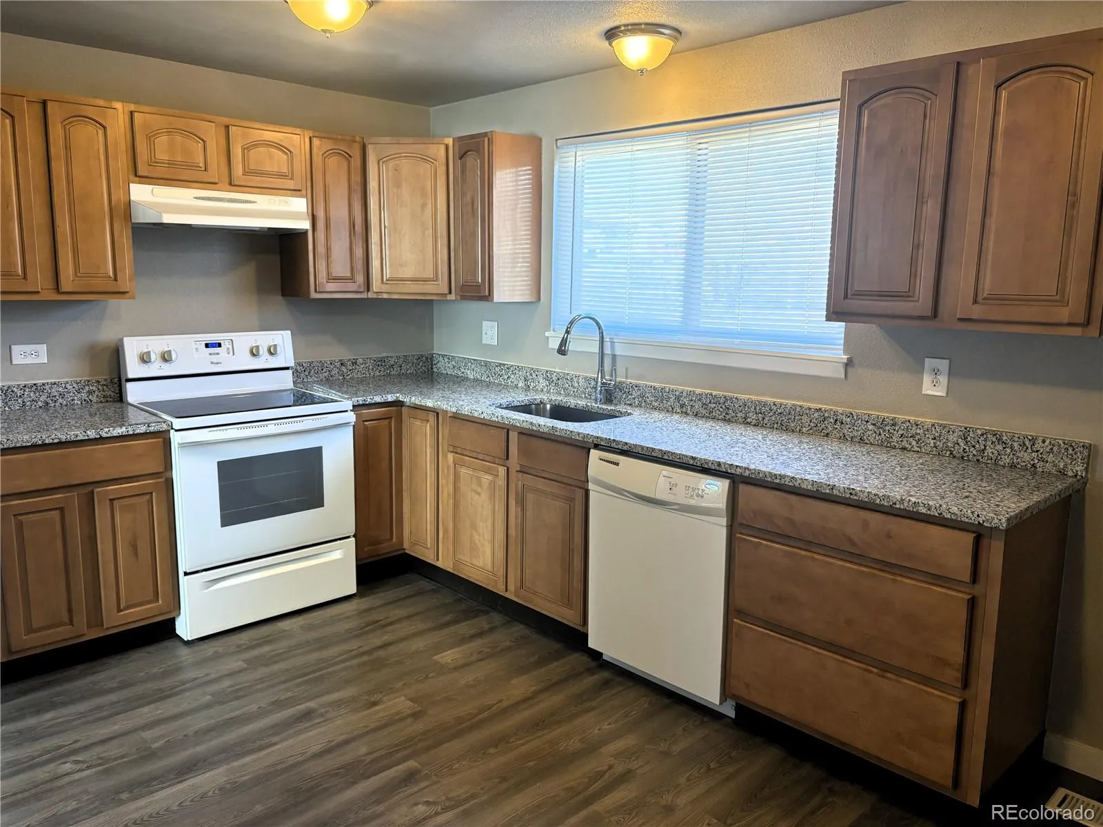 Easy access to I-25. Large corner lot with full privacy fence. New roof. New granite kitchen countertops. A/C installed in 2020. Newer carpet and LVT flooring. Lower level can be used as large primary bedroom or family room.