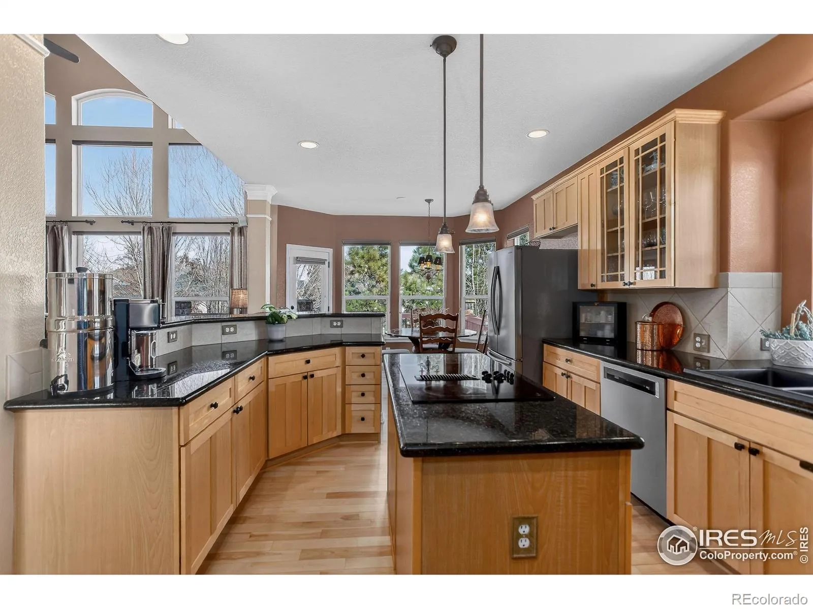 Tucked into a quiet cul-de-sac in Broomfield’s coveted Aspen Creek neighborhood, this home blends elegant design with scenic Colorado living in Broomfield, recently named the #1 best city to live in out west! The residence is defined by mountain elegance, highlighted by a soaring two-story family room with a dramatic stone fireplace with a log mantle and walls of windows that bathe the interior in natural light. The gourmet kitchen serves as the heart of the home, boasting slab granite countertops, modern stainless-steel appliances, and gleaming hardwood floors that flow throughout the main level. For those seeking flexibility, a dedicated study offers a quiet retreat for remote work, while the upstairs loft provides a versatile area for play or relaxation. The full basement provides lots of room for storage or expanded living area. Situated on a rare, oversized lot, the property offers a level of privacy and outdoor space that is increasingly hard to find. Step outside to the expansive deck, a true showstopper where privacy abounds in the summer months thanks to lush, mature landscaping and gorgeous maple trees. The location perfectly complements the home’s interior, providing direct access to scenic trails and a short walk to the neighborhood pool and the highly regarded Aspen Creek K-8 School. With a 3-car garage offering space for all your outdoor toys and affordable HOA fees covering trash, recycling, and common amenities, this home delivers an unbeatable lifestyle in the region’s premier community.