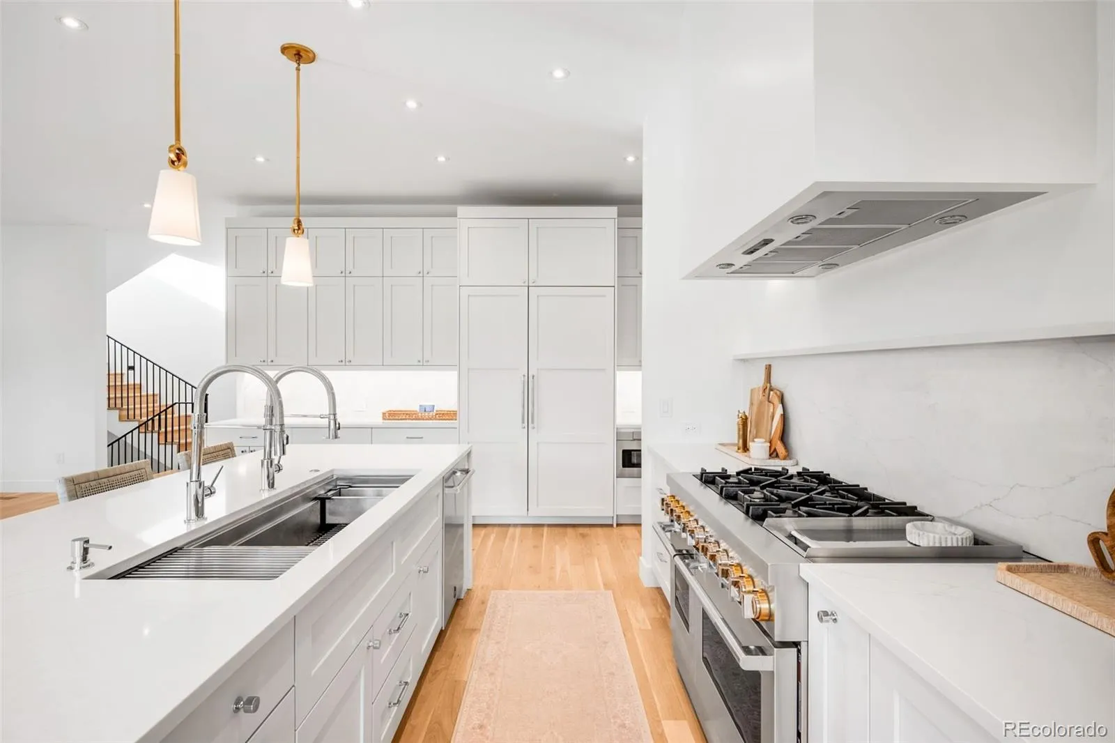 Modern Tudor elegance in the highly sought-after Wellshire neighborhood, this beautifully crafted home blends timeless design with modern luxury! The chef’s kitchen features top-of-the-line JennAir appliances, a two-person sink, hidden pantry doors, and handcrafted cabinetry, while a custom wood staircase with steel railing and dramatic waterfall treads adds architectural sophistication. The formerly open loft has been enclosed to create an additional 4th private bedroom upstairs, enhancing functionality and flexibility. Outdoors, enjoy a private backyard with an 8′ fenced yard and a cantilevered covered patio ideal for relaxing or entertaining. Meticulously designed throughout, this home offers refined comfort in one of Denver’s most desirable neighborhoods. Don’t wait to see this one, it will sell soon!