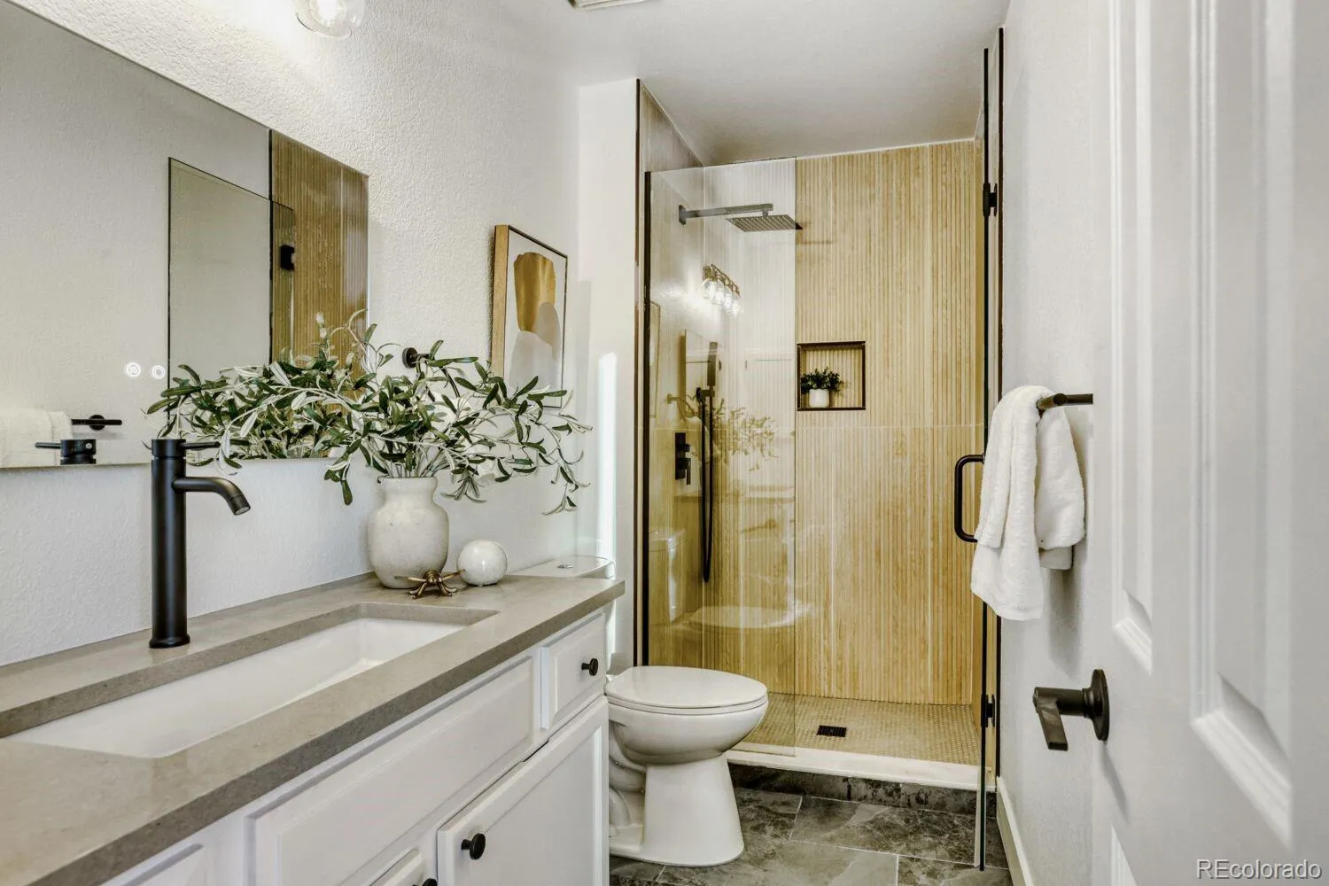 Welcome to the perfect home on the edge of Denver and Arvada. The home starts with a large, vaulted entryway and kitchen that comes with brand new stainless appliances, new custom cabinets and unique countertops. The home comes with three full bathrooms including a master ensuite all finished with premium design, materials, and labor. The lower area has an additional living space with a brick fireplace and new flooring. The home also comes with a large two car garage and a well sized yard perfect for families or pets.