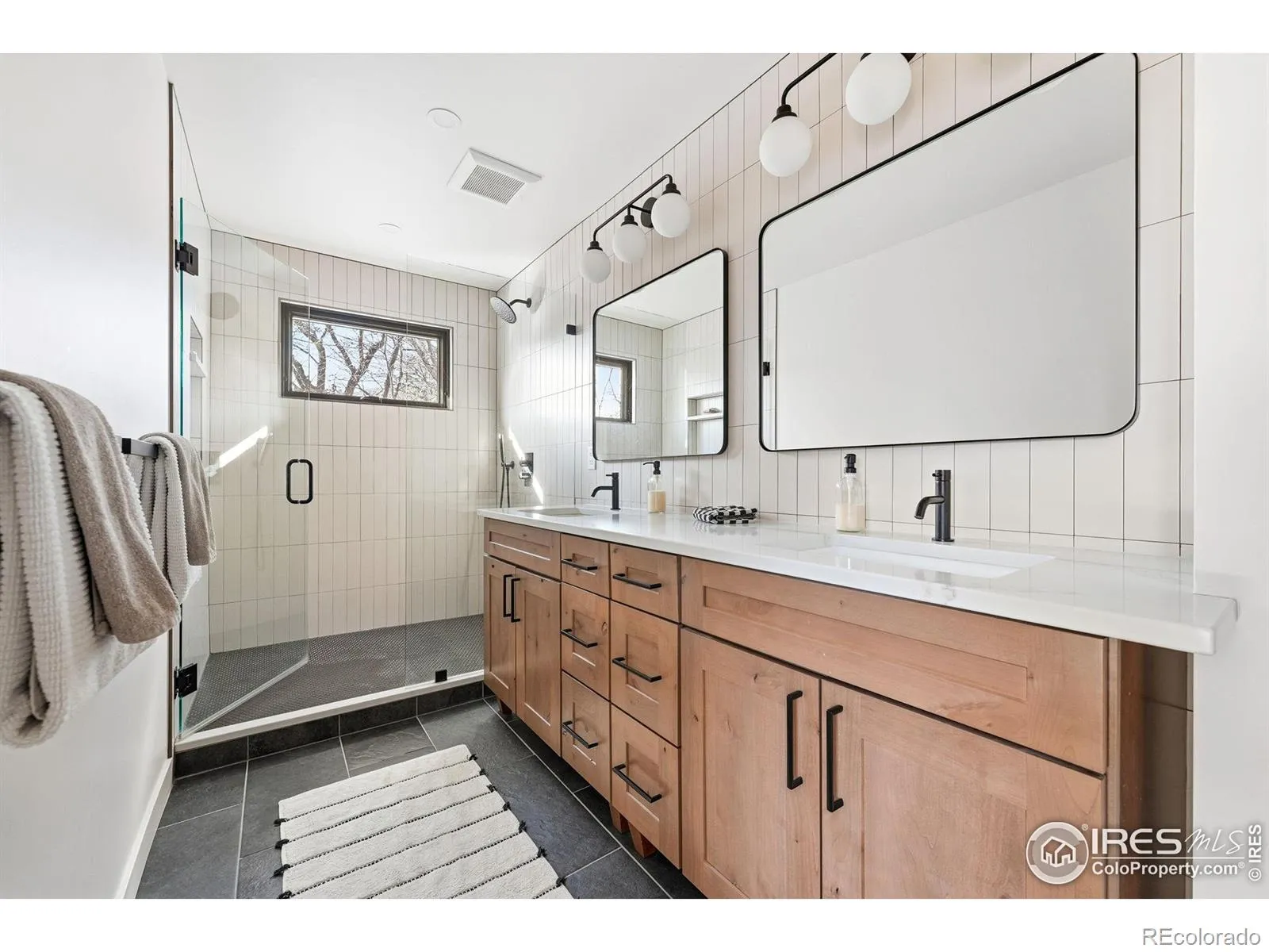 This incredible property was redesigned by local architect, Cheri Belz, gutted and refinished with no surface left untouched. Situated on an elevated quarter acre, corner lot the site offers phenomenal southern exposure, great views of the Flatirons, Sanitas, Boulder foothills. Thoughtfully designed 5 bed, 4 bath home offers beautiful and functional living spaces in a quiet, mature neighborhood close to the Community Gardens, Salberg Park and Ideal Market Shopping Plaza. The spacious living room is anchored by an elegant fireplace with custom surround and wood mantle, remarkable natural light and large picture windows. The dining area is located between the living room and kitchen for convenience and versatility with direct access to the backyard. Kitchen features: generously sized center island with eat-in bar, Thermador appliances, custom cabinetry with floating shelves and a walk-in pantry/coffee bar. A large family room with custom sliding barn door allows for privacy between the entertaining areas. Outdoor access to the backyard from the family room, office and laundry creates an effortless indoor/outdoor flow. The main level also features an elegant powder room, two bedrooms with a well-designed shared bathroom with shower and ample storage options. A custom steel and wood staircase leads upstairs to a full bath, 2 beds and the owner’s suite. Owner’s suite: king-sized sleeping space, sitting area/desk space, walk-in closet with mountain views, gas fireplace, balcony overlooking the yard and foothills. The backyard offers a large deck with decorative tile wall, sauna, garden area, patio, mature trees, detached garage with storage room and Tesla charger. Front yard amenities: large covered porch, well-designed parking pad that also features a basketball hoop, towering evergreen and grassy area. 2965 17th: quiet and serene location, close to trails, shops, schools, parks, with quick access to Pearl Street. This home is truly one of a kind and not to be missed.