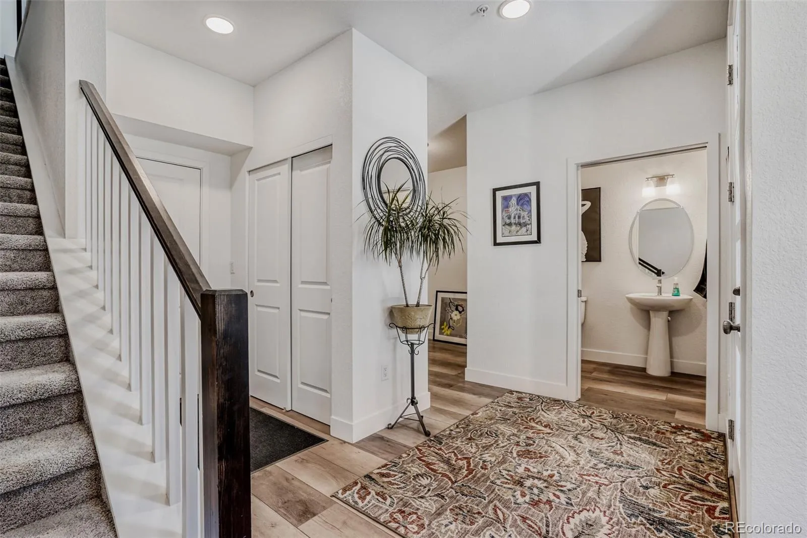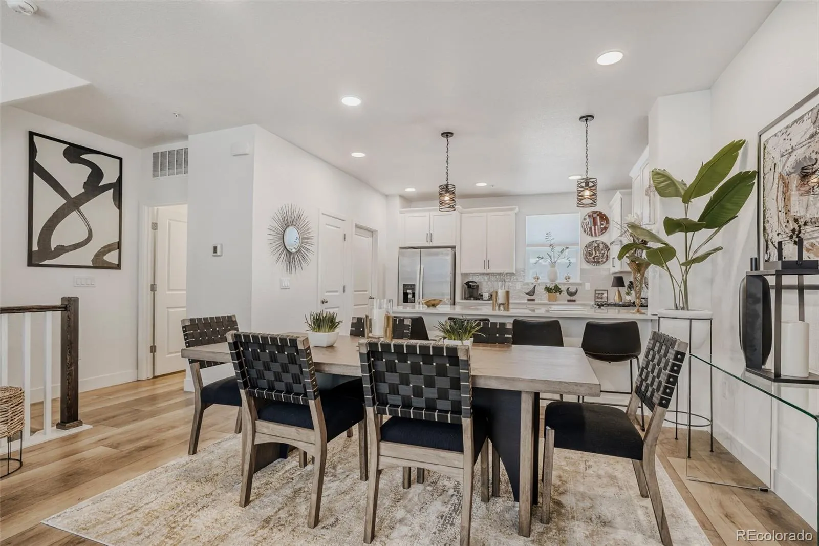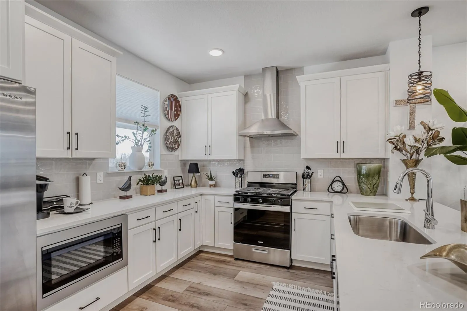 Kitchen is open with Whirlpool stainless steel appliances with hood and gas stove, custom light, 2nd story balcony, central air, tankless hot water heater. Conveniently located near schools, light rail and