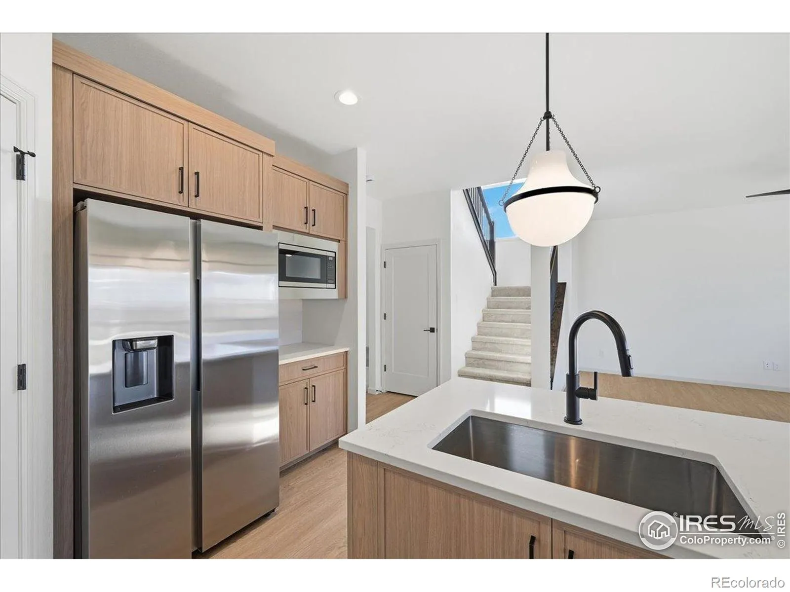 Located just minutes from downtown Windsor and the scenic Windsor Lake, this two story single family home in Greenspire is designed for comfortable, everyday living. The home includes a three car garage, full yard landscaping, fencing, and a finished basement, making it move in ready from day one. Start the day on the covered front porch and enjoy time outside on the covered back patio, ideal for both relaxing and entertaining throughout the year. Inside, the main level offers an open flow between the great room, dining area, and kitchen, creating a space that works well for daily routines and get togethers. The kitchen features wood cabinetry, light quartz countertops, a gas range, and stainless steel appliances. Extended buffet cabinetry adds extra storage and counter space while keeping the layout functional and inviting. Upstairs, the laundry room is conveniently located near the bedrooms. The primary suite offers vaulted ceilings, a walk in closet, and a five piece bath with a freestanding soaking tub, tiled shower, and dual vanities. Two additional bedrooms and a full bath complete the upper level. The finished basement extends the living space with a recreation room, full bath, and additional bedroom, ideal for guests, hobbies, or movie nights. With quality craftsmanship, modern finishes, and thoughtful design throughout, this home captures the essence of Colorado living in the welcoming community of Greenspire at Windsor Lake.