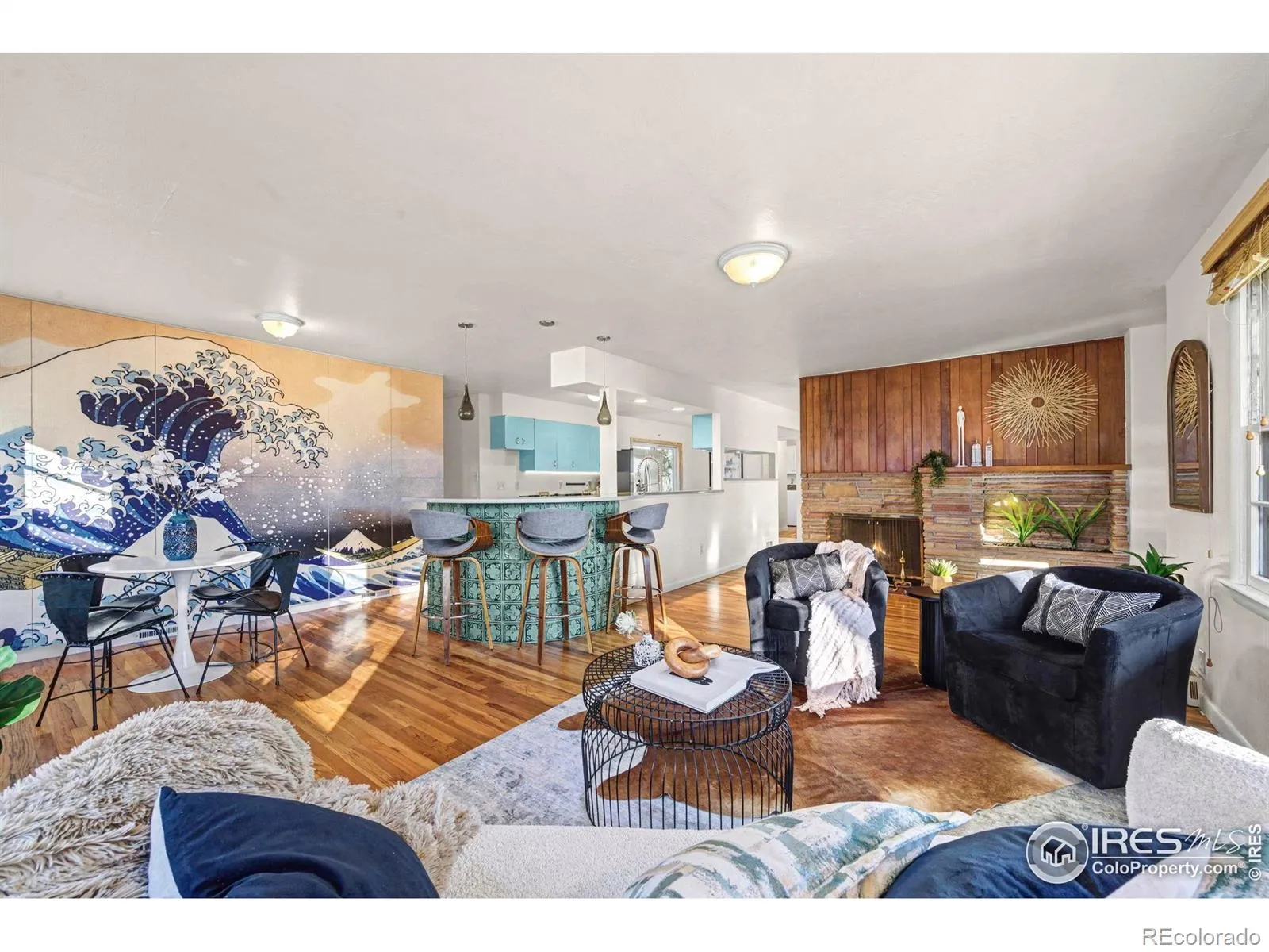 Welcome to this beautifully renovated mid-century modern ranch, where cool vibes meet timeless charm. The open concept floor plan effortlessly combines the home’s vintage character with contemporary updates, creating a bright and inviting space for both living and entertaining. The updated kitchen is a true chef’s kiss featuring stainless steel appliances, including a gas cooktop and hood. The stylishly updated faucet with a pull-down sprayer complements the chic tile backsplash, while generous cabinet space ensures ample storage for all your culinary needs. A thoughtfully designed built-in bar with seating is perfect for hosting family and friends. Ready to wind down? Savor the gorgeous flagstone fireplace which embraces both the living area and dining/family room or retreat to the primary bedroom, which boasts a luxurious spa-like en-suite bathroom. Here, you’ll find double sinks, a freestanding tub, and a walk-in shower with a frameless glass enclosure, all illuminated by sophisticated lighting. The cherries on top are a newer AC, a one-car garage with contemporary door, and an oversized carport, providing plenty of parking options. Its prime location near CSU, Old Town, parks, trails, and more offers endless recreational opportunities. You’re home!