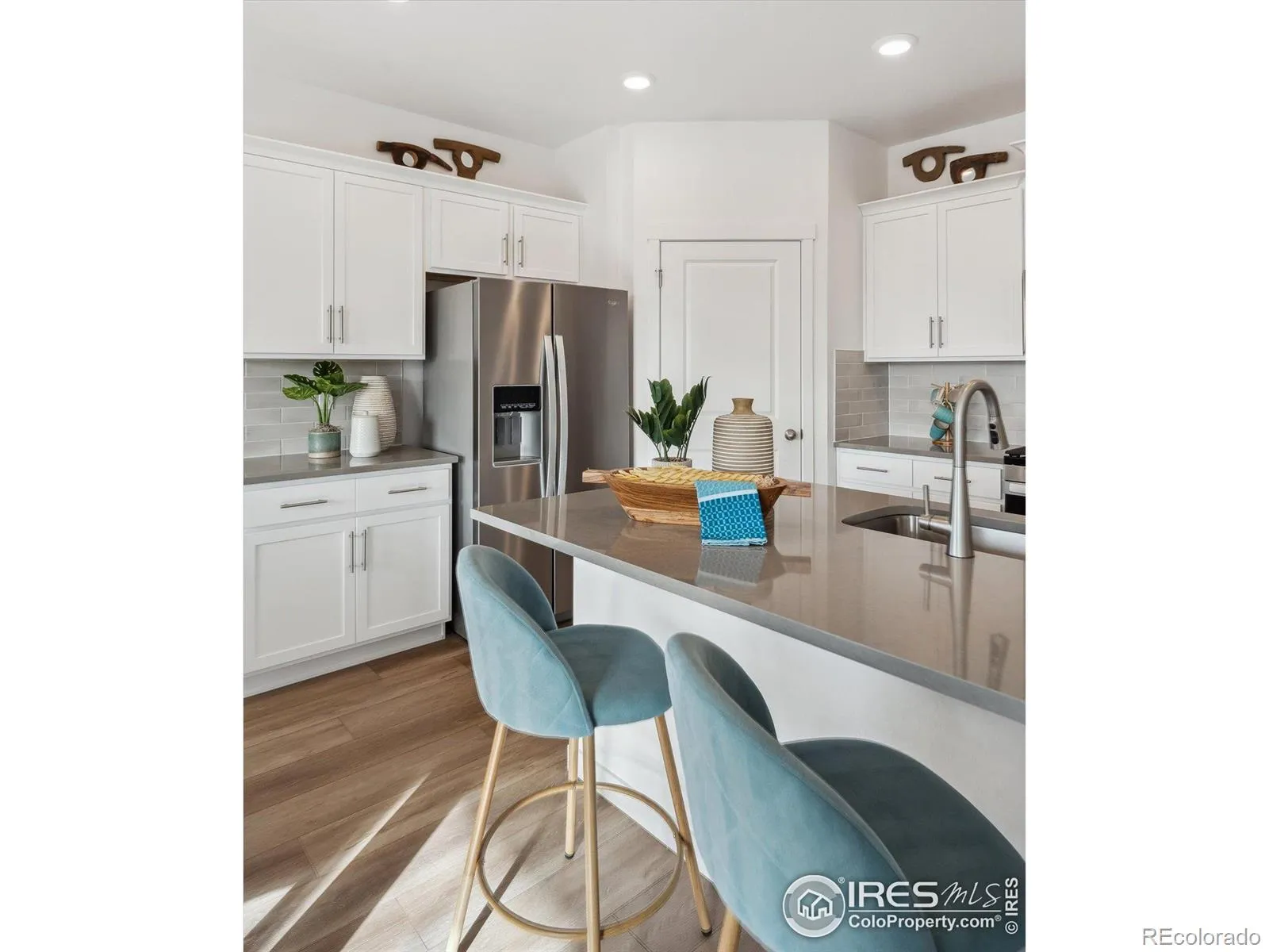 Contact builder today about Special Financing for this home – terms and conditions apply. This beautiful Ranch style home offers a spacious open concept with 4 bedrooms, 2 baths, large kitchen island, and covered patio where you can enjoy the Colorado evenings! A stunning open design with modern gray cabinetry, quartz countertops throughout, and refrigerator included! Along with a Smart Home Technology package that includes keyless front door, Alexa features, and more all with remote access capabilities. Not to mention 9′ ceilings, energy efficient tankless hot water heater, full fencing, and front and back yard landscaping to make this home move in ready! Come see it NOW before it’s gone! Located in a charming new community with small-town appeal, modern conveniences, and NO HOA. ***Estimated Delivery Date: May. Photos are representative and not of actual property**