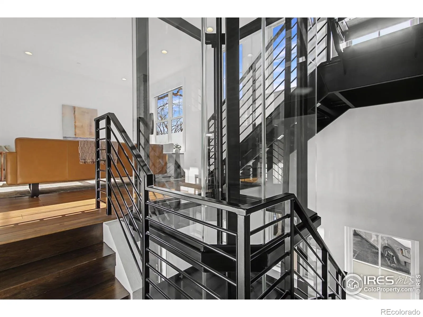 An exceptional opportunity to own a sophisticated, four-story luxury townhome in one of Old Town Fort Collins’ most coveted locations. Perfectly positioned adjacent to Library Park and just three blocks from Old Town Square, this residence offers the rare combination of minutes to urban living with a quiet, neighborhood ambiance. Designed for both privacy and elegance, the home features a private street-level entrance as well as direct access from the secure, gated two-car garage. An architectural open-tread staircase and private glass elevator seamlessly connect all four levels, offering effortless living at every stage. The main living floor is sun-filled in natural light and thoughtfully designed for entertaining, with an open-concept kitchen, dining, and living area anchored by a striking two-sided stone gas fireplace. The chef’s kitchen is appointed with top-tier Wolf and Sub-Zero appliances, Asko dishwasher, quartz countertops, an expansive island, and custom Milarc cabinets. European white oak wide-plank floors, soaring ceilings, and three HVAC zones enhance comfort and sophistication throughout. The primary suite is a private retreat, featuring a spa-inspired bath with radiant heated floors, double vanity, curbless walk-in shower, generous walk-in closet, and conveniently located washer and dryer. Crowning the home is an impressive fourth-floor indoor/outdoor living space that is ideal for entertaining or unwinding. Enjoy a wet bar, dual-zone wine and beverage refrigeration, retractable awning, and a private deck with gas line ready for a grill or fire pit, all set against the backdrop of Old Town Fort Collins. Secure, low-maintenance, and impeccably finished, this luxury townhome offers refined living just steps from dining, culture, and the best of Old Town, without compromise.