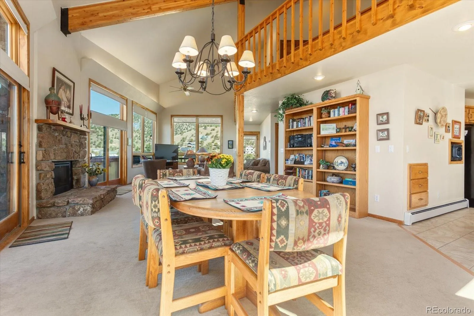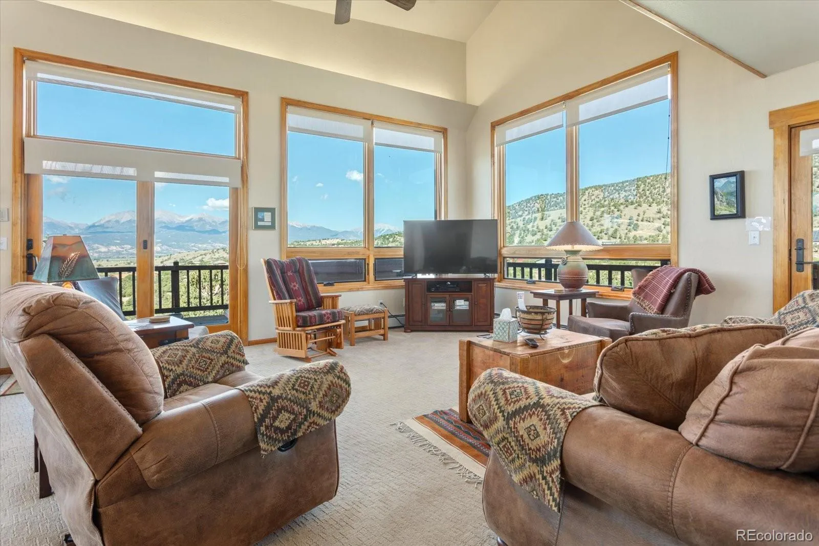 This exceptional mountain retreat offers the perfect blend of comfort, charm and breath-taking scenery. With expansive panoramic views of the surrounding peaks, this home is ideal as a second residence, a down-sizing opportunity, or even a potential short-term rental (subject to Chaffee County approval). Thoughtfully maintained, gently used and move-in ready, it combines modern upgrades (both bathrooms have been recently remodeled with tile, double vanities and quartz countertops) with timeless mountain character. Two cedar lined closets can be found both upstairs and downstairs. Spacious and functional layout with an open living, dining and kitchen area. Bright, airy interior with an open loft space at the top of the stairs, perfect for an office or reading nook, or guest over-flow. New Anderson windows with quality window treatments and doors. Radiant Baseboard Heat: hot water fueled system with annual boiler inspections for peace of mind. Home is equipped with reverse osmosis and a water softener for quality. Fresh interior paint done in 2011, deck was just stained in Sept 2025. Don’t miss the deck with hot tub for relaxing evenings out under the stars or the gas burning stove in the living room for those cozy evenings in. Large laundry room features utility sink and there is a separate utility room for easy-access. Smoke and pet free! This property is a rare opportunity to own a well-cared for home: pride of ownership shows throughout. Very close to BLM and single track bike trail North Back Bone that takes you into downtown Salida. Whether you are looking for a weekend escape, a full-time residence, or a down-sized lifestyle, this home will deliver. Furnishings are negotiable.