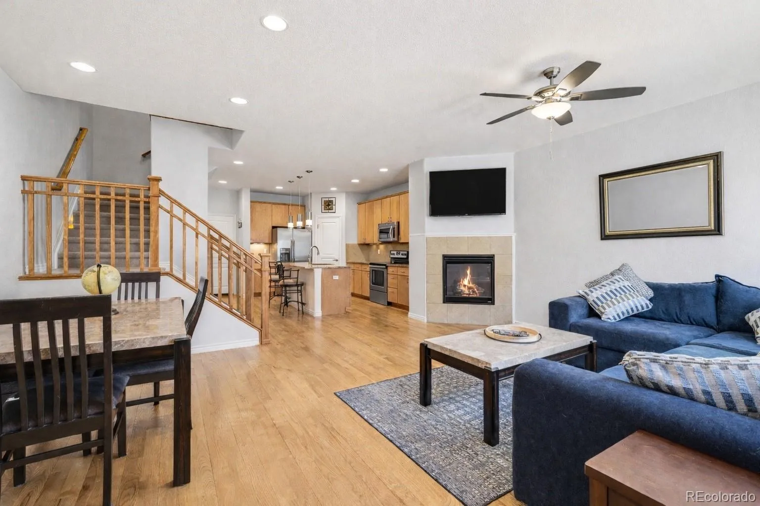 Light-filled townhome located in a quiet part of Dancing Willows with hardwood floors, gas fireplace, and low-maintenance living in a park-like community with trails, pond, clubhouse and swimming pool.
