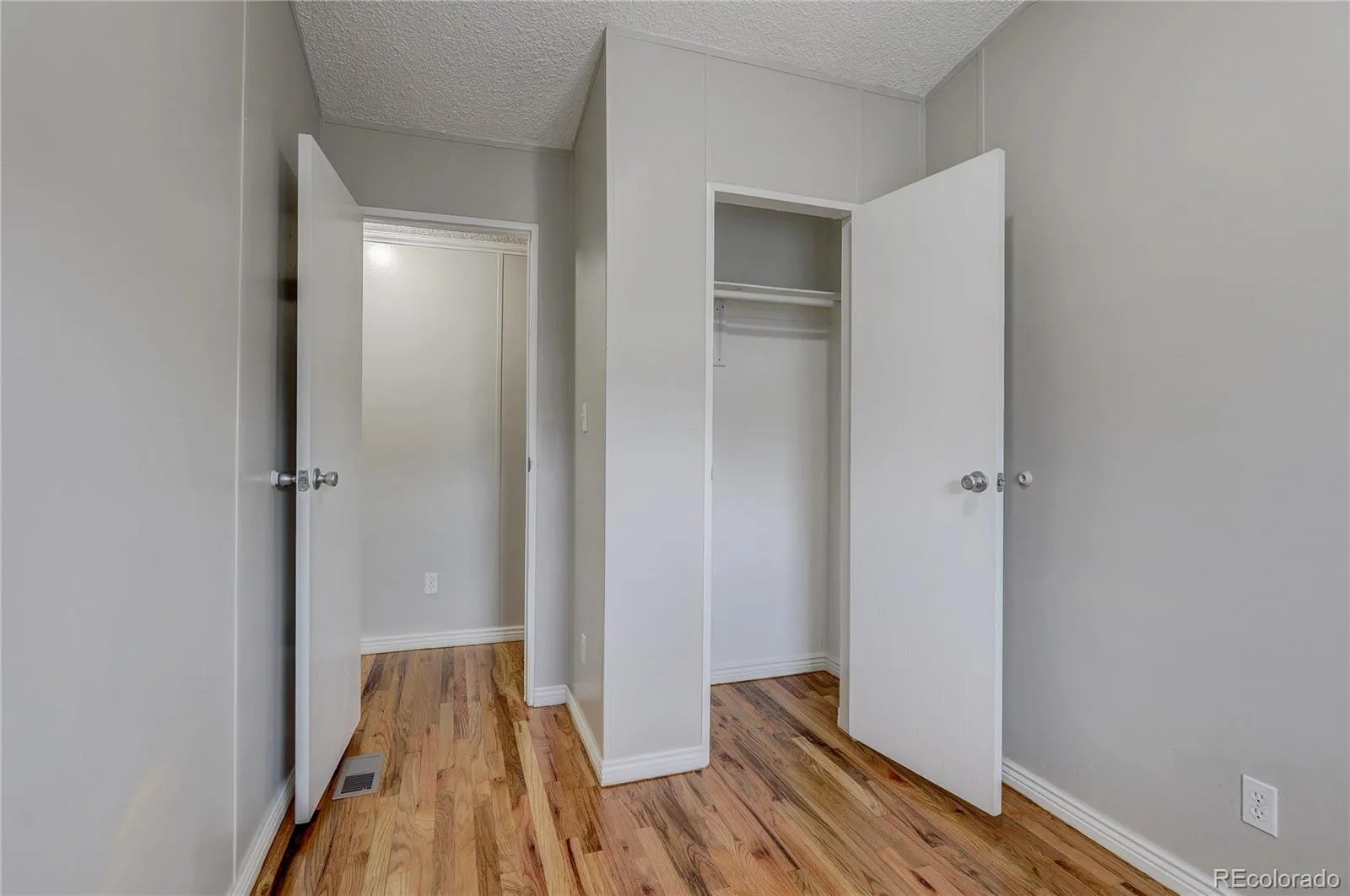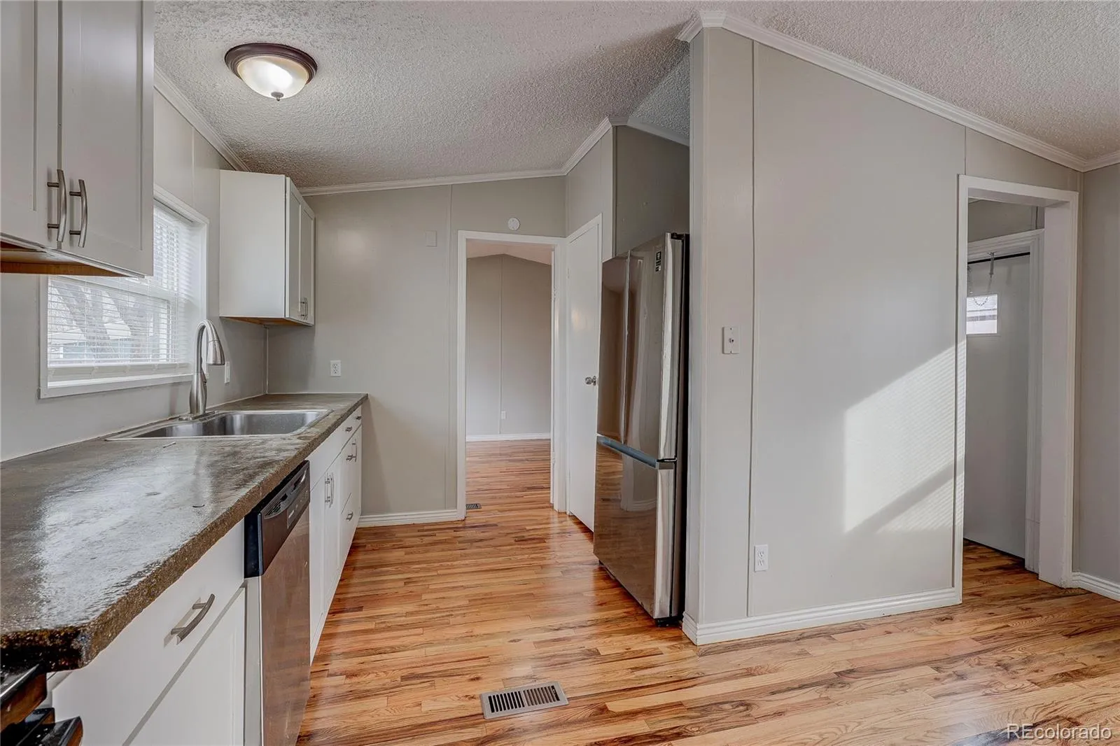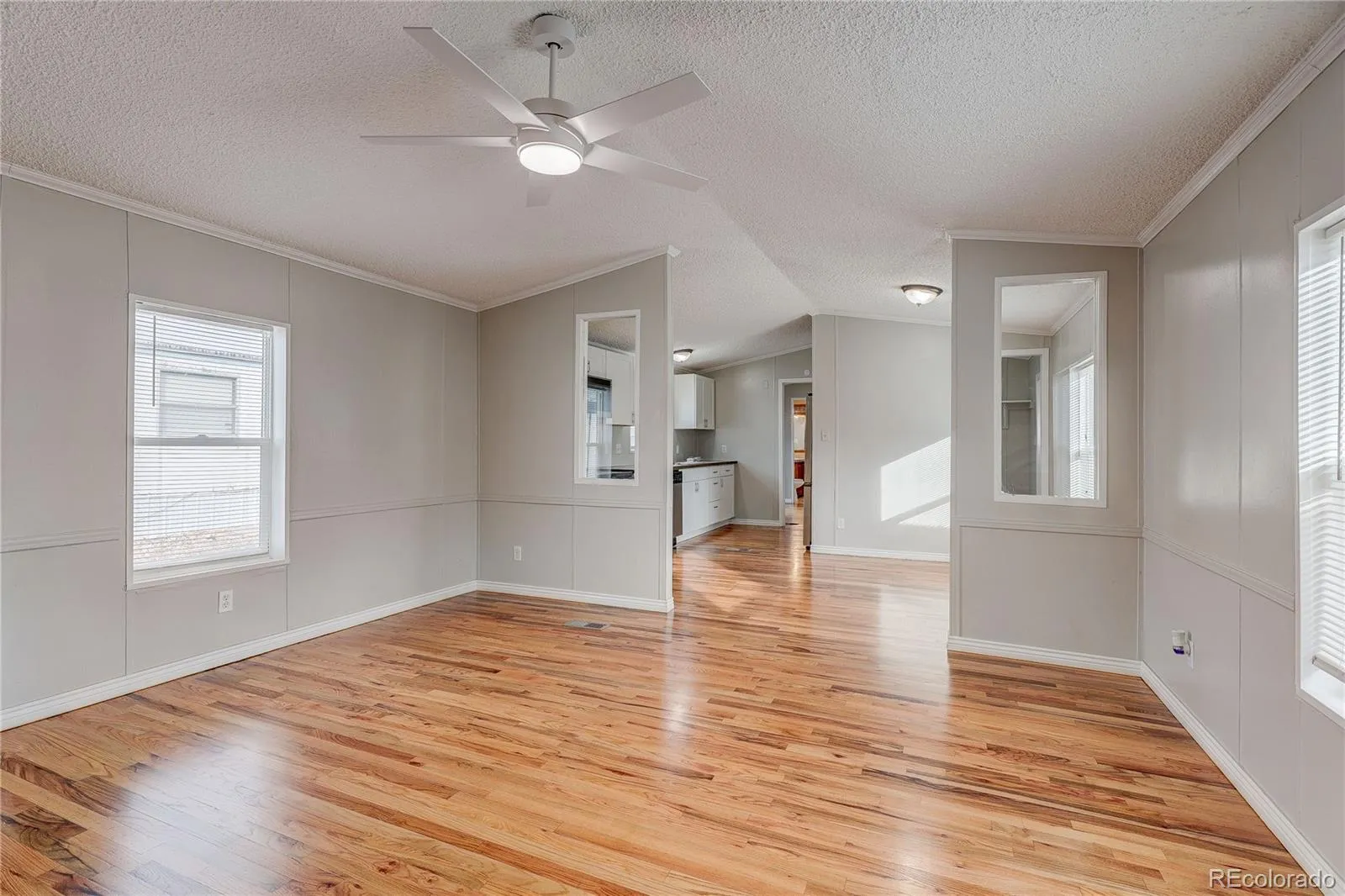 Discover the perfect downsized, affordable dream home in a prime Thornton location: this beautifully remodeled 3-bedroom, 2-bath manufactured home, where you own the land outright—no burdensome lot rents and a low HOA. Fully updated from top to bottom this move-in-ready gem offers smart, efficient living in approximately 1,216 sq ft on a generous 4,000 sq ft lot. Fresh interior and exterior paint, gorgeous real hardwood flooring throughout, create a bright, open, and welcoming atmosphere without excess space to maintain or heat. The open-concept design flows effortlessly between living areas for relaxed daily life or small gatherings. The updated kitchen has updated appliances and a convenient peninsula breakfast bar. Each of the three generously sized bedrooms provides cozy, comfortable retreats and a walk-in master closet, both bathrooms updated. A dedicated laundry room. Updated double-pane windows and newer roof. Killer hardwood floors. Private, fenced backyard—ideal for gardening, pets, or low-maintenance enjoyment—plus an extra-long side driveway offering ample off-street parking for multiple vehicles and a handy storage shed. Best of all, this home combines true land ownership with affordability and low-maintenance appeal, exceptional choice for first-time buyers, those ready to downsize. Prime location in the friendly Riverdale Farms neighborhood, just minutes from grocery stores, Thornton Town Center shopping and dining, parks like Rotella Park and Community Park, trails, recreation, and the Thornton Community Center. Quick access to I-25. Schools nearby include Explore Elementary (with its focus on experiential learning), Thornton Middle School (strong STEM emphasis), and Thornton High School (advanced placement courses and solid sports programs). This beautifully updated, affordably priced home delivers exceptional value, ownership pride, and convenience.Family-friendly area makes this your fresh start. Efficient, stylish, and affordable!