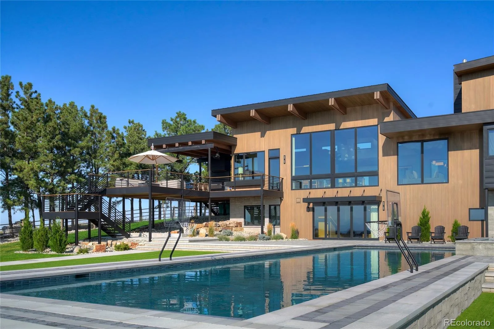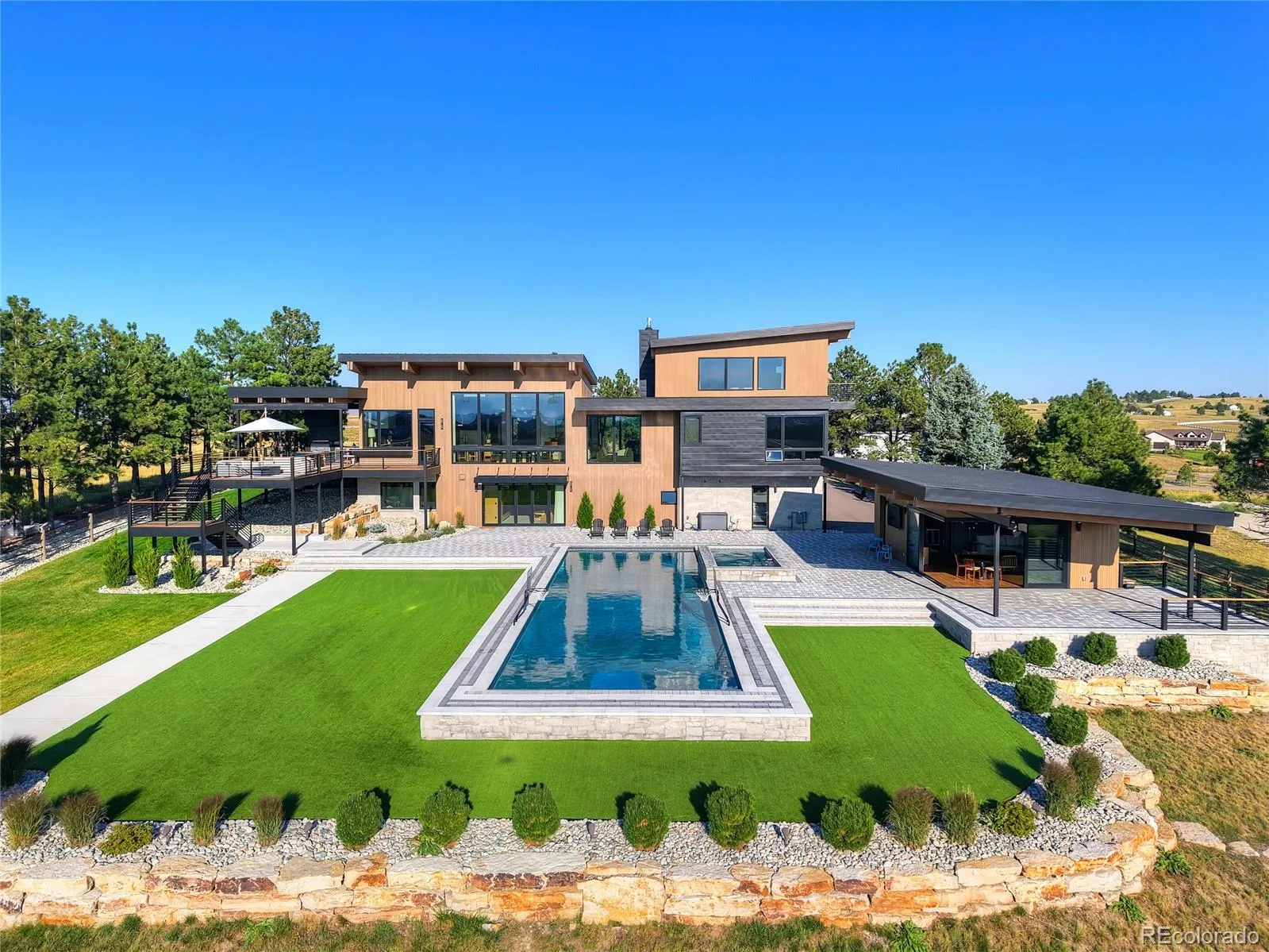 10811 Shadow Pines is something Parker has never seen till now. BRAND New Construction in 2023, an architectural masterpiece designed for entertaining and family gatherings. Truly TOP of the hill sitting on two of the highest elevated lots in ALL of Douglas County with huge views of the Foothills and Downtown Denver. Walk into the front door and be immediately drawn to the floor to ceiling windows facing west looking right at the beautiful mountains and 100 acres of OPEN SPACE. A once in a lifetime opportunity that can NOT be duplicated, this custom Parker Home perfectly positioned just 5 minutes from Southlands Shopping Center, 24 Minutes to Denver International Airport, and only 19 minutes to the Centennial Private Airport gives you the best of everything! A thoughtful floor plan with 6 bedrooms plus a separate pool house, guest house, office or gym gives you a flexible 7 bedroom plus 7 bathroom home. You must come walk the grounds and see the attention to detail to really appreciate this luxury estate. This is the best of Parker, your dream home awaits now.
