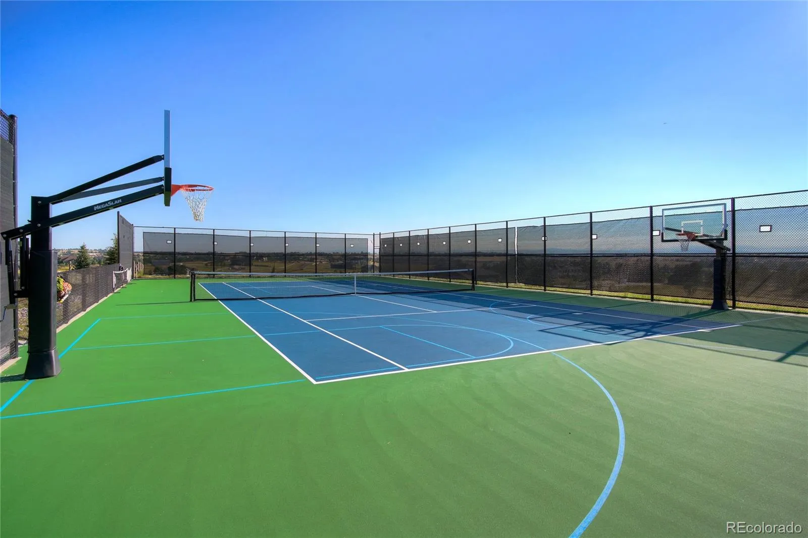 Welcome to Summit Haus. A true family resort style Estate on TWO lots totaling almost 5 acres with HUGE Denver Skyline Views. As soon as your private gate opens you will be taken away by the private oasis feel and amenity packed compound including FULL size 20 Meter Swimming Pool, Full size Basketball Court, Full size Tennis Court, In ground Trampoline, Pool house and separate LOT that is fully sodded and ready to use as your own private football field or build another Home. Separate lot is shovel ready and can break ground immediately or in the future!