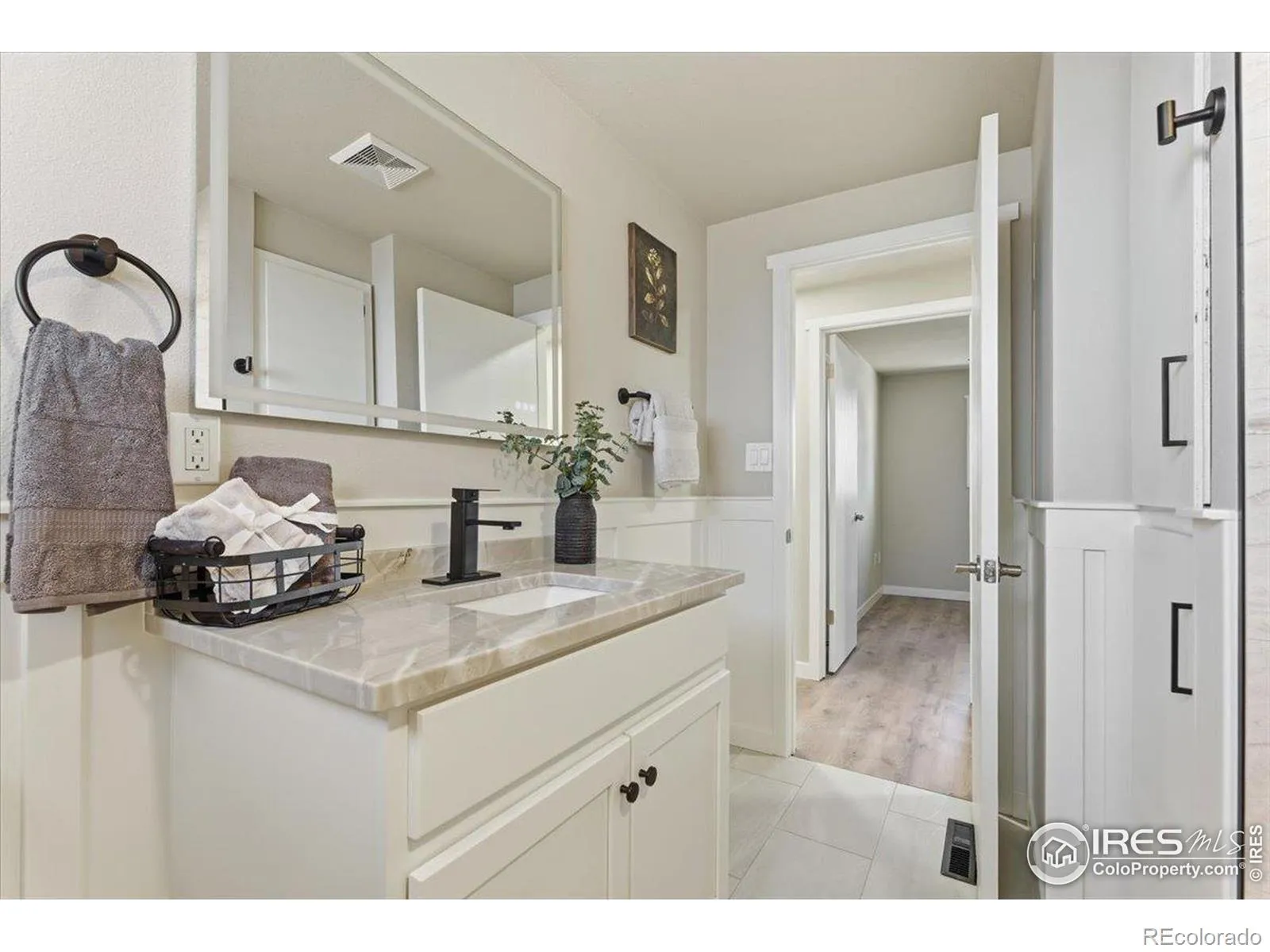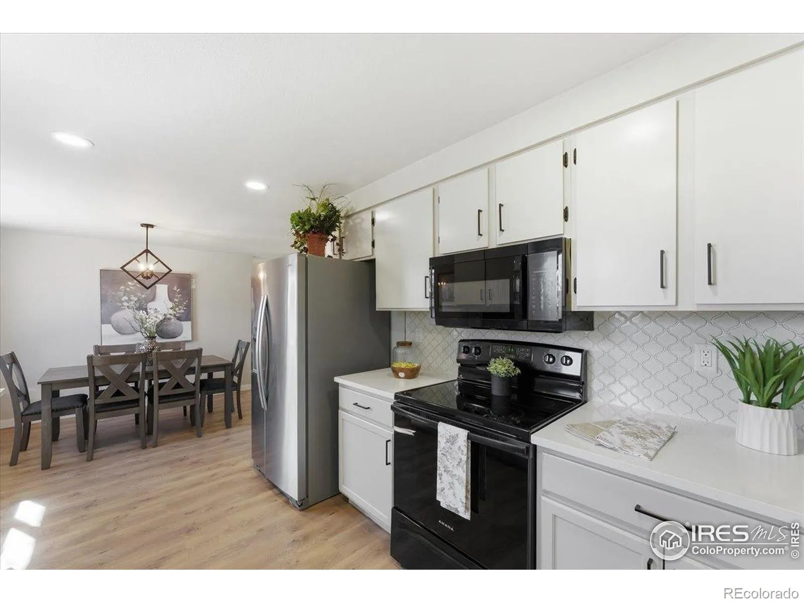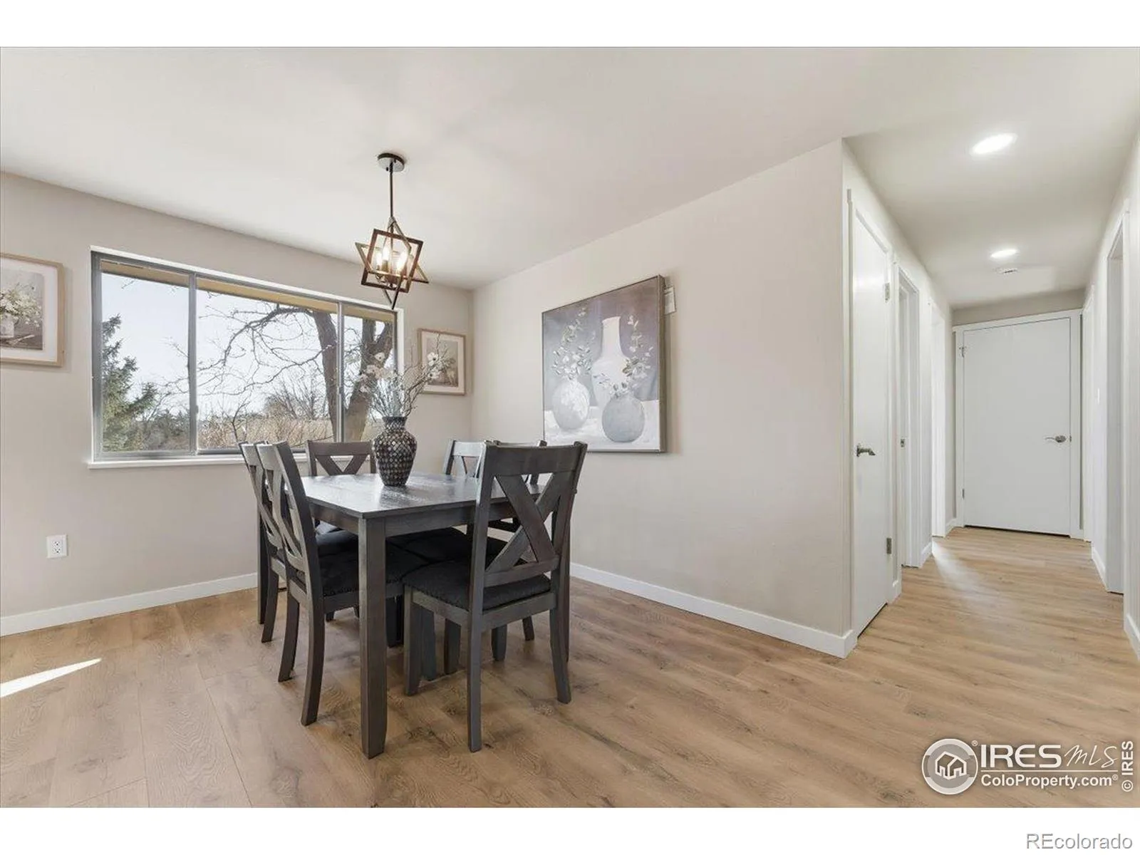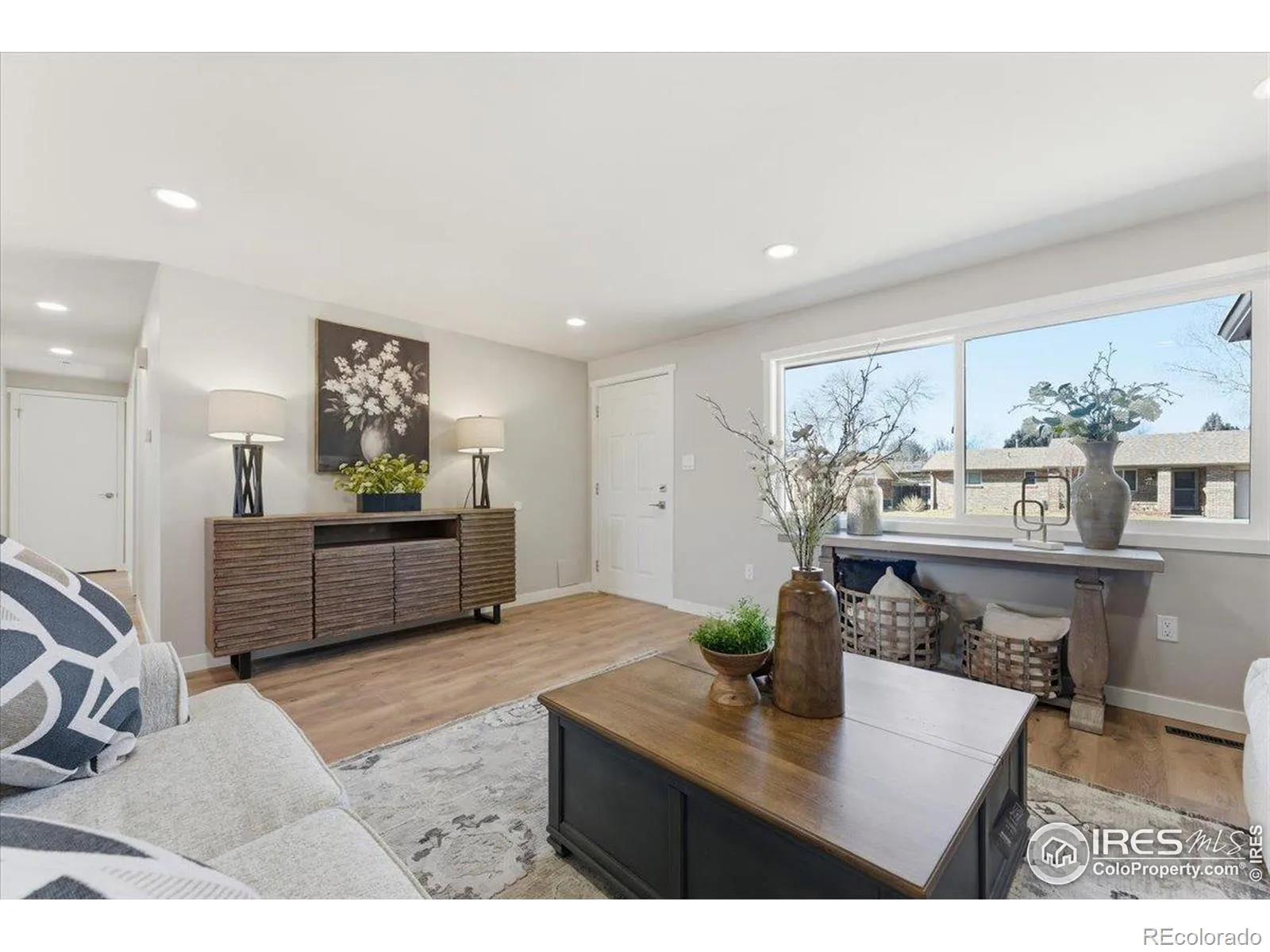 This thoughtfully and extensively remodeled 3-bedroom, 2-bath home offers modern comfort, quality craftsmanship, and true move-in-ready appeal. With over 1,100 square feet of finished living space, nearly every surface has been updated to create a clean, cohesive, and inviting interior. Step inside to discover brand-new flooring throughout, fresh interior paint, new trim, updated door hardware, and modern light fixtures that elevate the entire home. Popcorn ceilings have been removed, drywall repaired, and new lighting added in key living spaces including the living room, kitchen, laundry room, and bathrooms for a bright, refreshed feel. The fully renovated kitchen is both functional and stylish, featuring new base cabinetry, updated countertops, designer tile backsplash, new sink and faucet. A new dining room light fixture completes the space, making it ideal for everyday living and entertaining. Both bathrooms have been completely remodeled with new tile, vanities, toilets, updated fixtures, wainscoting, and fresh paint-offering a clean, modern aesthetic with timeless appeal. The bedrooms are comfortably sized and now include three new ceiling fans, updated lighting, and new flooring. Additional improvements include three new front-facing windows, new storm doors at both front and rear entries, new electrical outlets and switches, a new thermostat, updated vents with full air duct cleaning, and a secured water heater expansion tank. Outside, the home features a fully fenced backyard along with the entire home being freshly painted including the backyard shed. Entry landscaping has been upgraded with new flagstone, including a refreshed front walkway and a new 5’x5′ concrete slab at the front entry, enhancing curb appeal. Conveniently located near parks, shopping, dining, and major commuting routes, this Loveland property blends modern updates with everyday functionality.