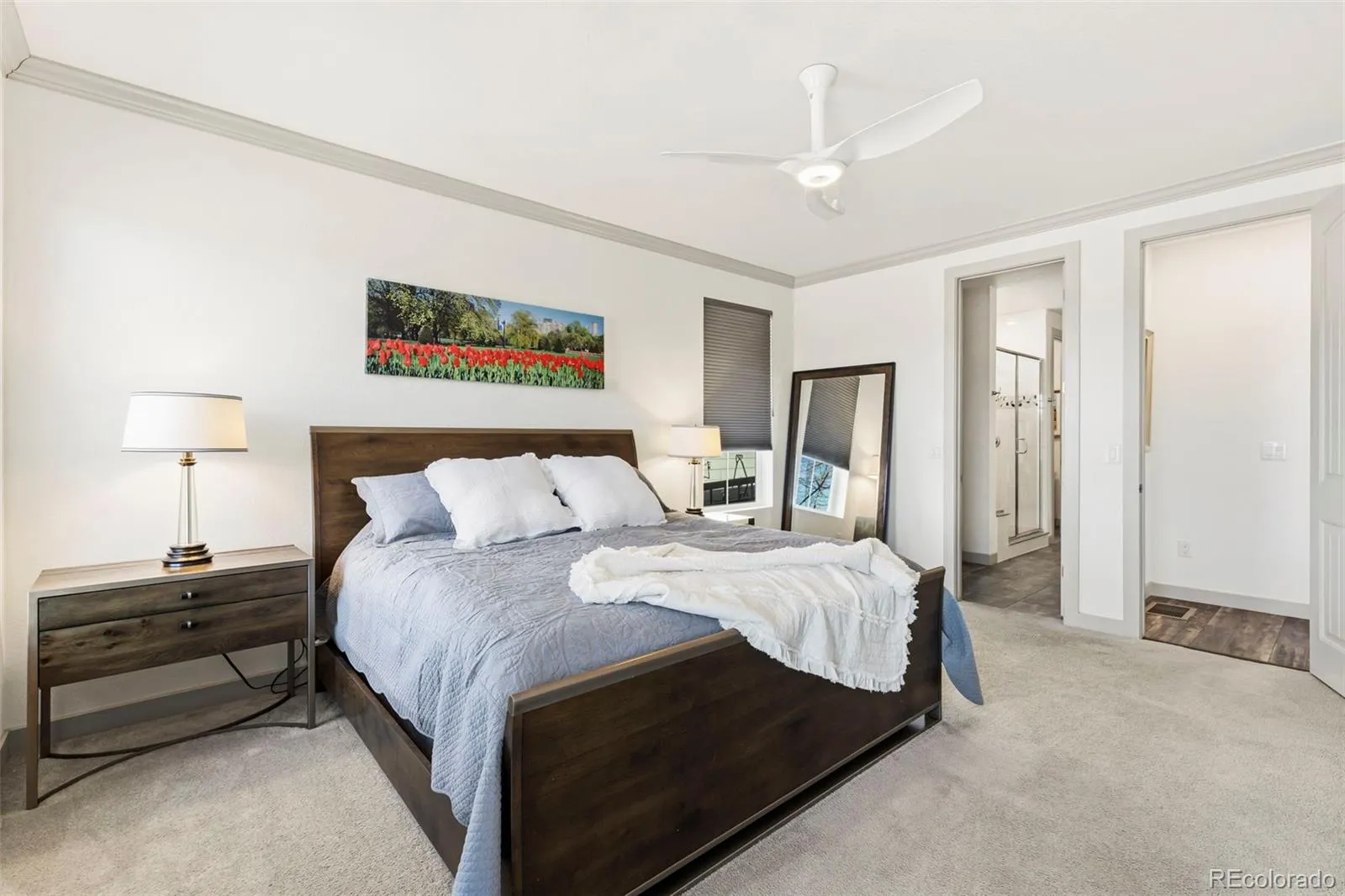 Welcome to The Meadows, an exceptional community, full of trails, parks, schools, & wildlife. You can relax on the inviting front porch before entering this meticulously maintained ranch home that showcases mountain views right from the front door. As you step inside, you’ll be greeted by a spacious foyer featuring 8′ doors throughout the main level, enhancing the open feel. The versatile front room is adorned with crown molding, making it perfect for a study, or can easily be transformed to a formal living or dining area. The expansive kitchen is equipped with stainless steel appliances, including a gas cooktop above a double oven. It also features 42″ upper cabinets, granite countertops, convenient pull-outs, a wine rack, and a generous walk-in pantry for easy organization. Flowing effortlessly from the kitchen is the dining area and great room, complemented by beautiful lighting fixtures and views that can be enjoyed from the entire back of the home. Step out onto the 24’x8′ covered deck, which includes auto privacy shades for added comfort and convenience, creating an ideal outdoor space for relaxation. The spacious master suite also offers views and crown molding, along with a well-appointed en suite bath that includes a door for privacy and a sizable walk-in closet. Descend the staircase with wrought iron spindles to discover a large recreation room, currently utilized as an exercise space, along with additional family living space. This level also features a full bathroom and a sizable bedroom complete with a walk-in closet. For your convenience, a large crawl space provides ample storage options, and the home comes equipped with air conditioning for year-round comfort. All cabinetry throughout the home features the ease of soft-close functionality. Lastly, this home includes 2 220-volt outlets in the garage. This beautiful home is move in ready so come enjoy the good life at The Meadows!