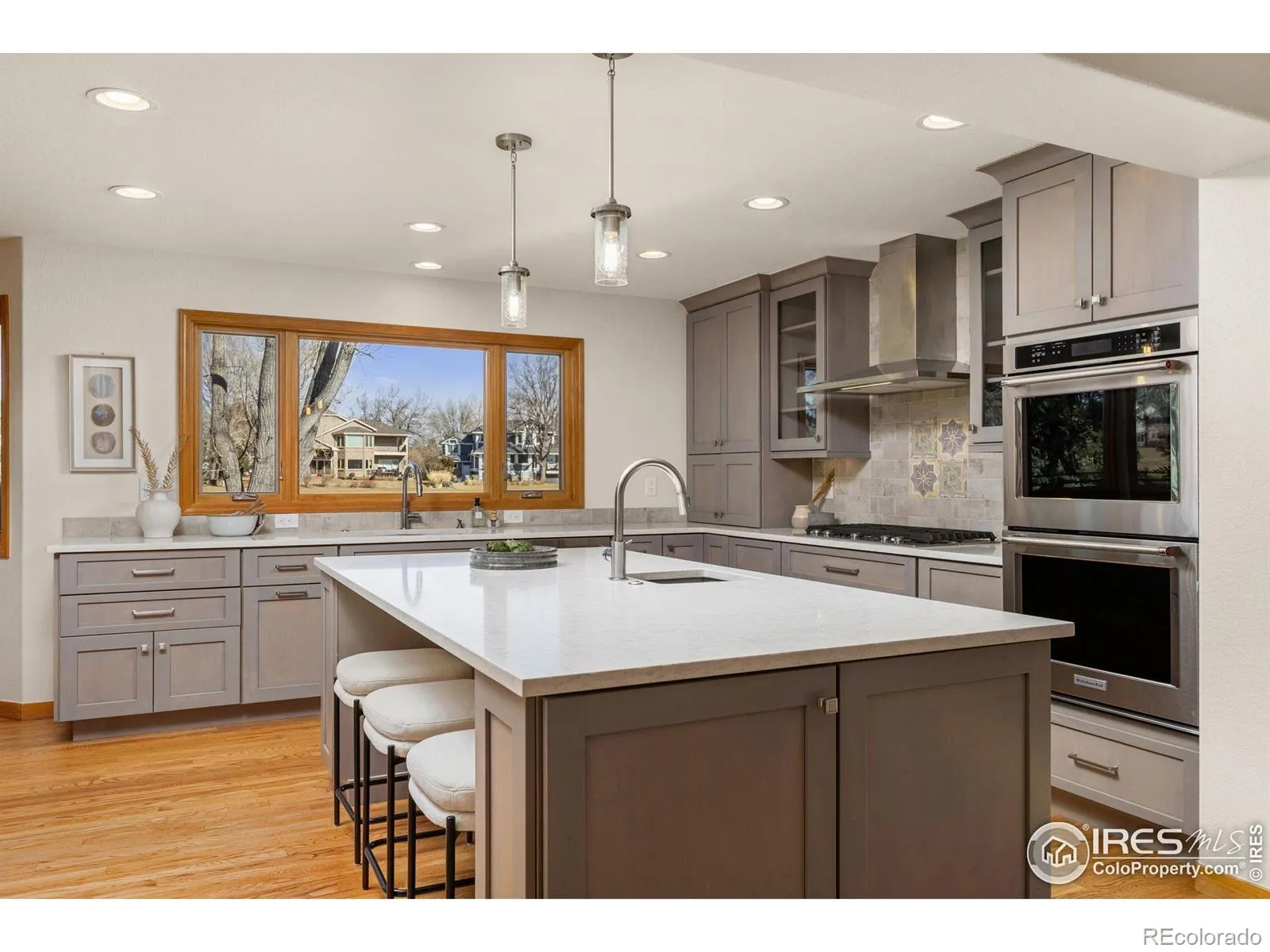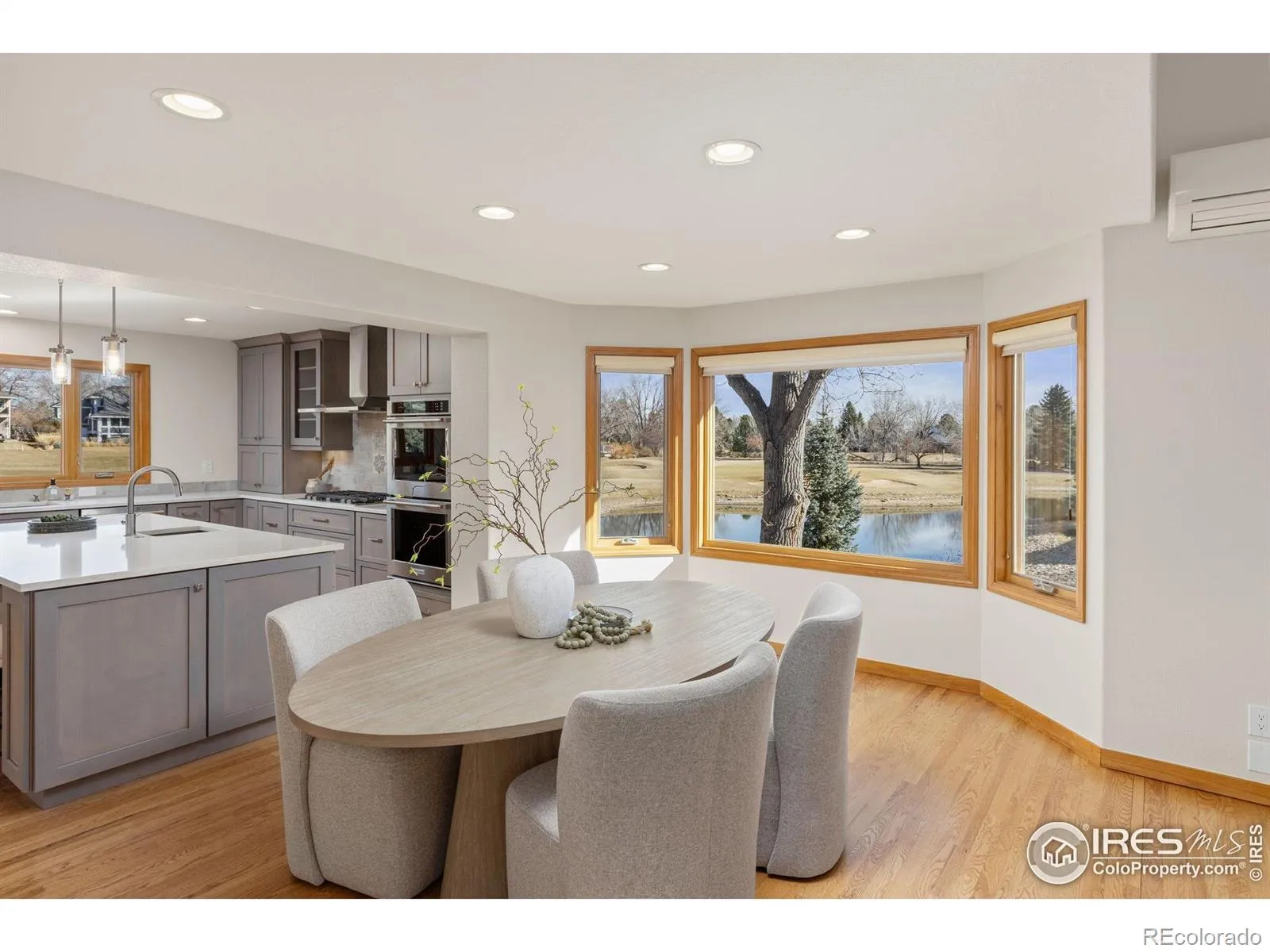 Beautifully positioned along the golf course in The Island at Coal Creek Ranch, this exceptional home offers serene views of the fairway and pond. A welcoming foyer opens to a light-filled living and dining room with hardwood floors throughout. The updated kitchen is the heart of the home, featuring expansive windows with continued golf course views, a center island with seating, and professional-grade design elements including soft-close cabinetry, pull-out shelves, cookie sheet and platter storage, double ovens, and a hidden microwave. New energy-efficient mini-split systems provide comfort and cooling on the main floor and in bedrooms. Adjacent to the kitchen is a cozy family room with a gas fireplace, an additional sitting area or office, and access to the spacious elevated composite deck. The main level also includes a private office near the guest bath and a large laundry/mudroom off the garage entry. The oversized 3-car garage offers an extra-deep third bay for storage and a desirable south-facing driveway. Upstairs, 4 bedrooms are featured: a private primary suite with fairway views, a remodeled 5-piece bath with heated floors and a walk-in closet. 2 bedrooms share a bathroom, while a 4th features its own ensuite bath. The finished walk-out basement adds a spacious recreation room and a full bath with an oversized jacuzzi tub. A sliding glass door opens to a covered patio and a built-in gas fire pit overlooking the pond. Recent updates include newer windows (2016), roof (2018), bedroom carpet (2024), and fresh paint in the living areas (2026). Coal Creek Ranch residents enjoy access to a community pool, tennis courts, playground, and miles of scenic trails, all just minutes from Downtown Louisville, Community Park, and Relish Food Hall & Pickleball.
