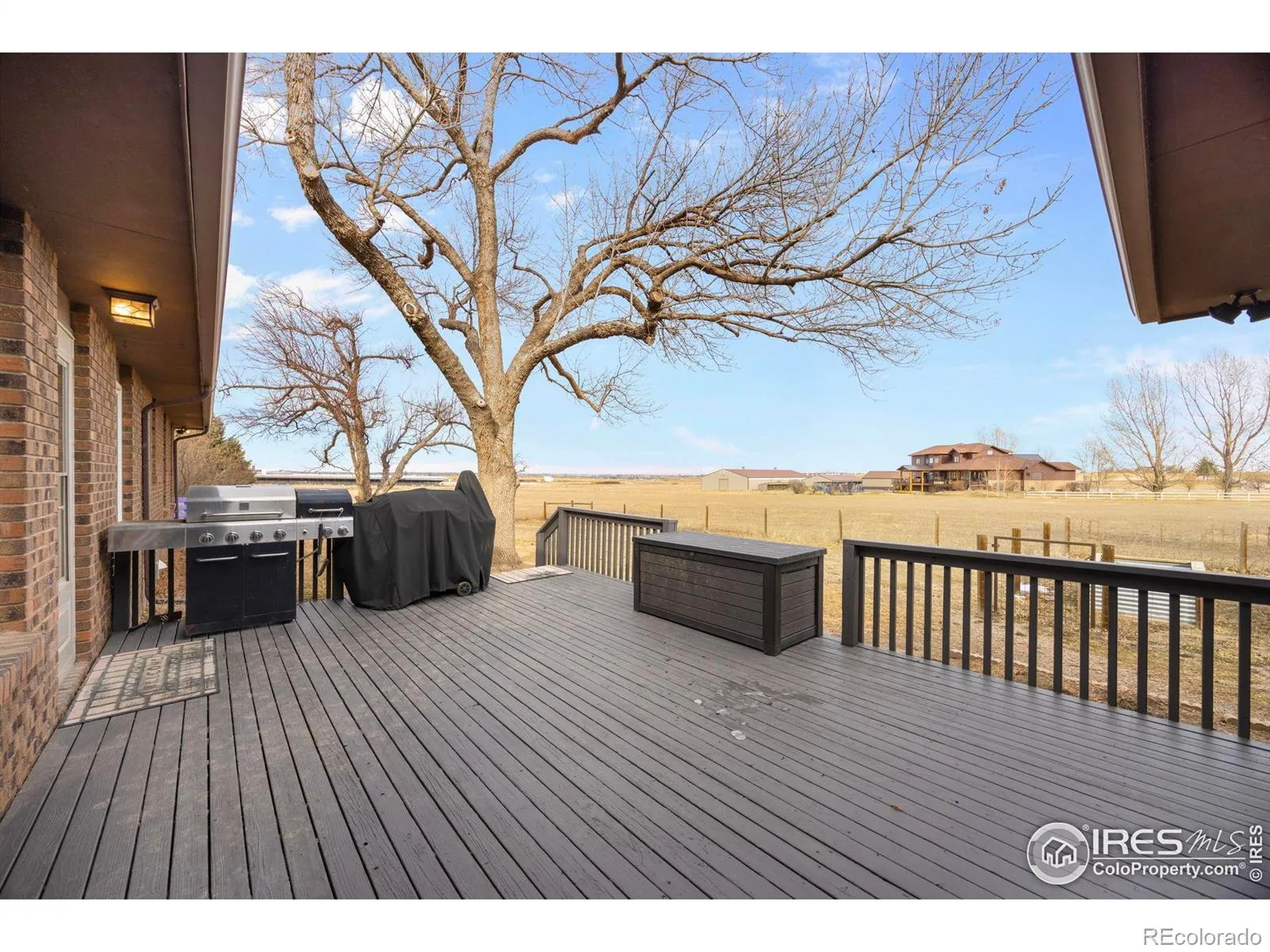 11-acre property true Colorado living with space, privacy, and no HOA or metro district. This 3,200+ sq ft brick ranch offers 3 bedrooms, 3 baths, a 2-car garage, finished basement, and ideal main-floor living with updated carpet, paint, baths, lighting, a newer furnace, and a 5-year-old roof. Natural light fills the home, and the kitchen features a gas range, generous cabinetry, and seamless flow into open living and dining areas. The yard includes a sprinkler system, fenced backyard, mature landscaping, raised garden beds, and a large deck for outdoor living. The land is horse-ready with fenced runs, pasture, loafing shed, automatic waterer, wash station, 1 share of water, and a hay field producing approx. 600 bales/year. A 30×60 shop with heat on one side, plus additional storage buildings, offers excellent flexibility for animals, equipment, or creative projects. Paved access and close to I-25, yet surrounded by farmland for peaceful, rural charm. Home warranty included. This is a rare chance to create your dream home, hobby farm, or retreat, with the freedom to make it your own.
