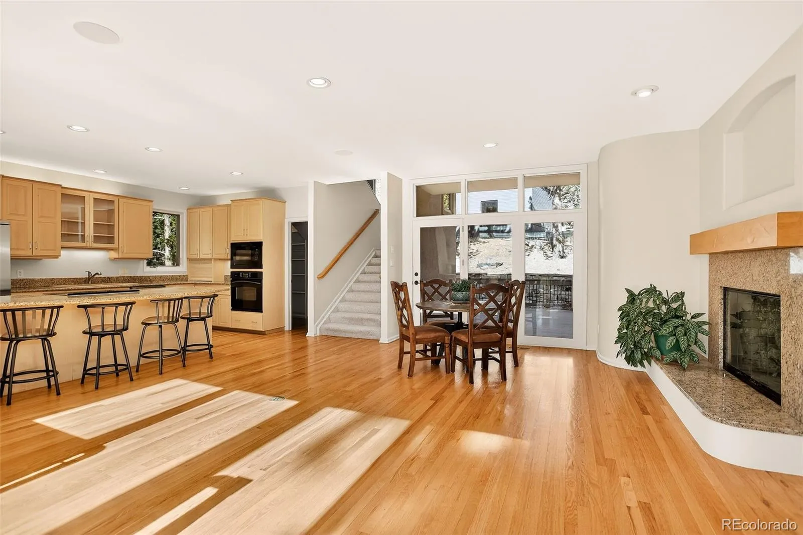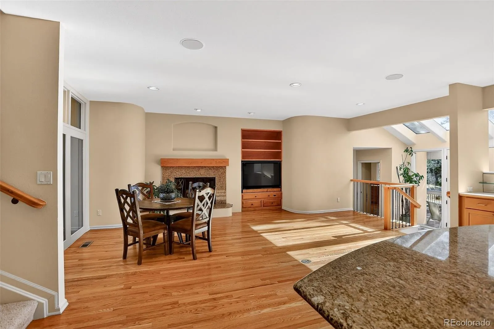 Inside, the home features 5 bedrooms, including an incredible main-level primary suite with a spa-like bath, large walk-in closet, and private deck. Gorgeous wood floors, vaulted ceilings, and skylights fill the home with natural light, creating an airy and inviting atmosphere. The beautiful kitchen showcases a large island with seating, generous counter space, and ample storage—perfect for entertaining and everyday living. Brand-new carpeting adds a fresh, move-in-ready feel throughout.