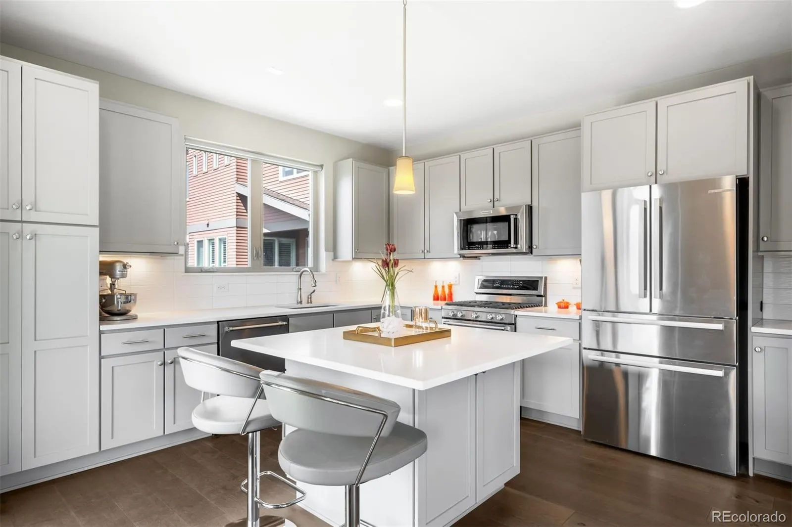 Rare detached single-family home, this gem offers privacy along with 360 degrees of breathtaking mountain and golf course views and an ultra-functional, design-forward layout across four levels of living. A main floor bedroom with an ensuite bath offers flexibility for guests or a home office. The oversized two-car garage makes use of the space with custom built-ins providing storage galore – perfect for the four-season Colorado explorations, easily accessible on the first floor, and includes a handy backup sensor to alert you when you are fully parked. The second floor open-concept living space with kitchen, dining, and living room is flooded with natural light from floor-to-ceiling Western windows, with electric window coverings, showcasing the one-of-a-kind mountain/golf course views. Off the main level is the first outdoor living opportunity with a private balcony, offering a gas line for grilling and ideal for dining al fresco. The kitchen boasts a gas range, generous kitchen storage, and a thoughtfully tucked-away office nook, making daily living and hosting feel seamless. The third level has conveniently located laundry room to benefit the two additional spacious bedrooms, including a dreamy primary suite with oversized Southwest-facing windows, a spa-like ensuite with walk-in shower, and a massive custom walk-in closet. The secondary bedroom is equally impressive, complete with a built-in custom Murphy bed (included) and 3/4 ensuite bath. Crowning the home is a jaw-dropping rooftop deck designed for maximum impact-with panoramic mountain and golf course views, a built-in gas fireplace, and ample space for entertaining under the Colorado sky. Framed by sweeping golf course views and just moments from all the energy and charm of Tennyson Street, this home offers the ultimate in privacy, location, and lifestyle that’s impossible to replicate.