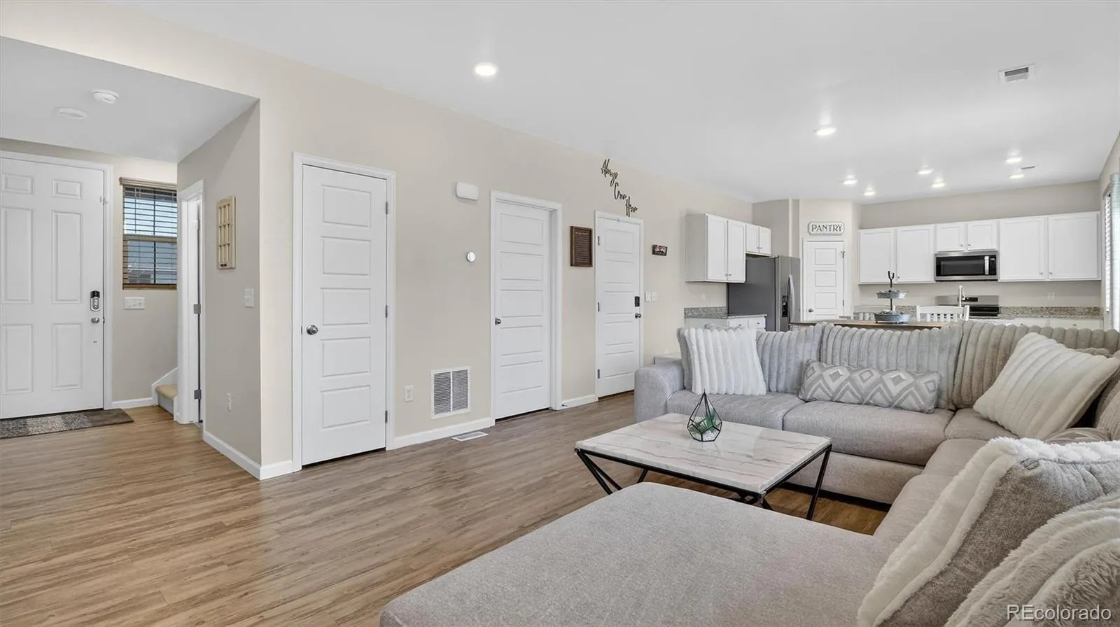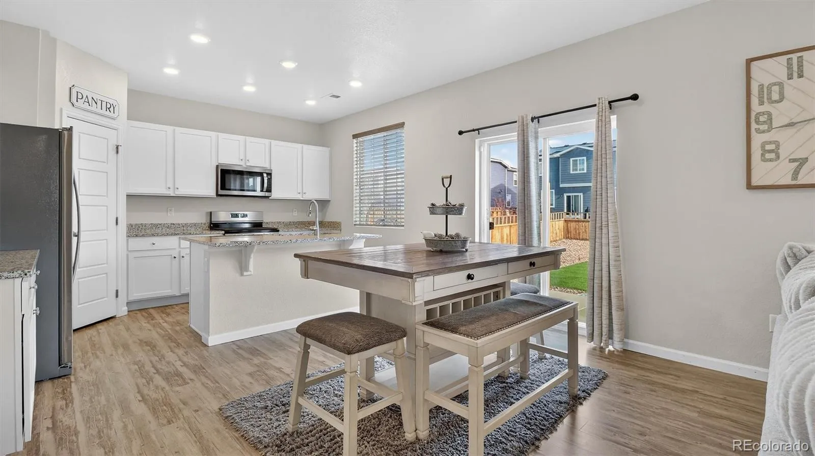 The low-maintenance turf in the backyard is perfect for relaxing, gardening, or hosting gatherings during Colorado’s beautiful seasons. An attached garage and generous storage enhance the home’s functionality and ease of living.