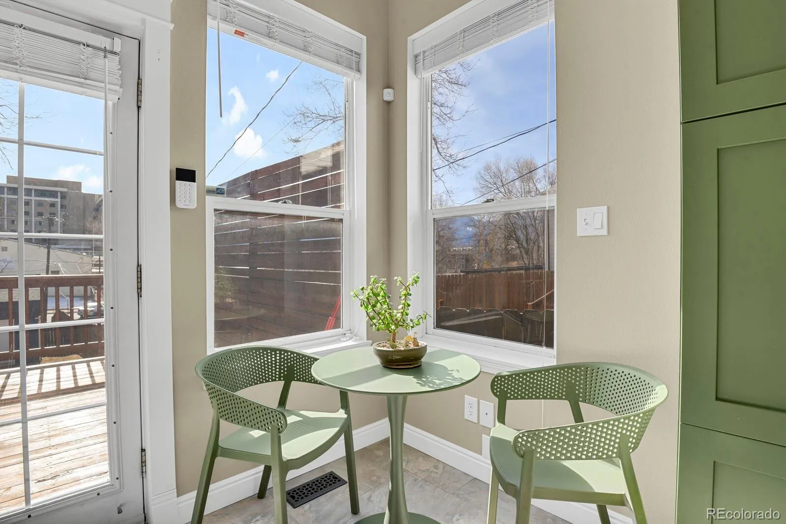 This turn-of-the-century home is straight out of a design magazine, blending timeless character with thoughtful modern updates. Built in 1894, this three-bedroom, two-bath residence has been meticulously remodeled while preserving its historic charm. Highlights include high ceilings, authentic hardwood floors, abundant natural light, and stylish modern lighting throughout. The spacious living room is large enough to accommodate an oversized foyer and dining area, creating a welcoming and versatile layout. The dining space features a custom built-in bench and opens seamlessly to the kitchen, making it ideal for entertaining and everyday living. The updated kitchen is a true showstopper, featuring custom green cabinetry with sleek black hardware, new fixtures, a large granite sink, under-cabinet lighting, classic subway tile backsplash, open wood shelving, stainless steel appliances, and a gas range. A charming spot for a breakfast nook sits in front of two corner windows, creating a light-filled space perfect for morning coffee. The main-level primary bedroom features hardwood floors and overlooks the deck with some mountain views. A custom modern staircase leads to the lower level, which offers a private additional bedroom, a full bathroom, and a dedicated laundry space. A large wood deck extends off the kitchen through French doors, perfect for indoor-outdoor living and entertaining. The fully fenced in lot offers alley access, a storage shed, and ample space to add a garage. The property is also zoned R-4, providing additional flexibility and potential. Additional parking in back of the house with ample room for RV parking. Some property updates include A/C (2020), water heater (2020), roof (2012), updated kitchen, windows, electrical, interior/exterior paint, floors, railing, and lighting. Enjoy quick accessibility to Shooks Run Trail and Switchback Coffee Roasters, walkability to downtown via Kiowa Street, restaurants, shopping, parks, schools and hospitals.