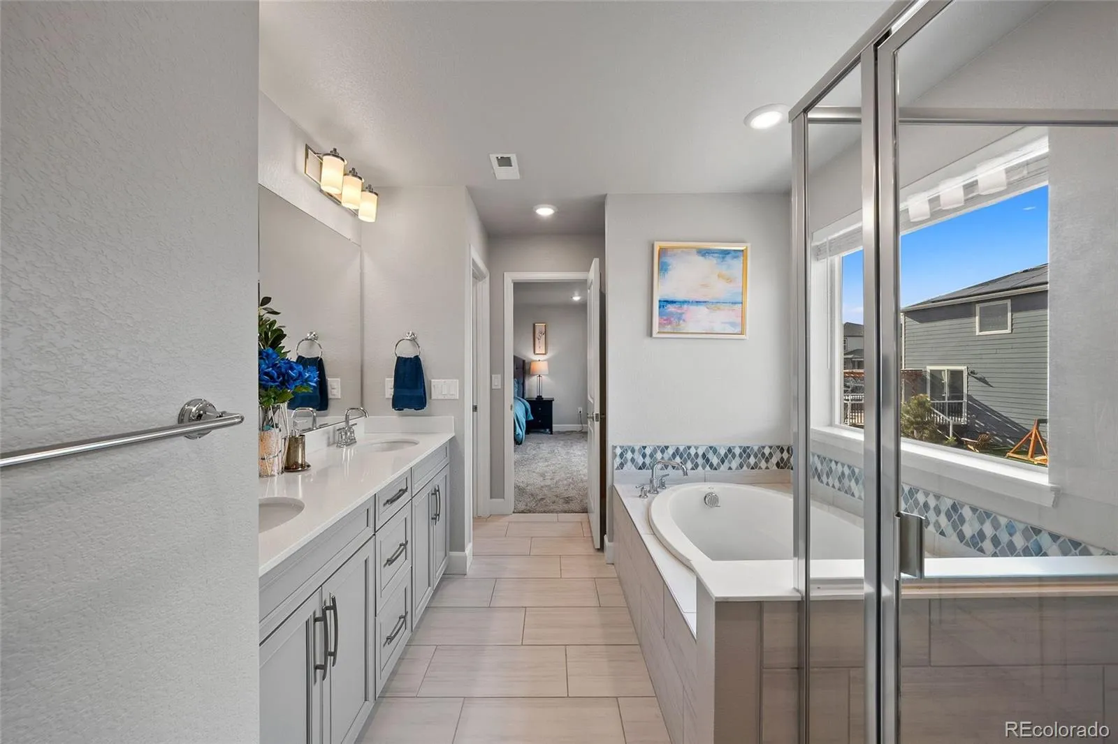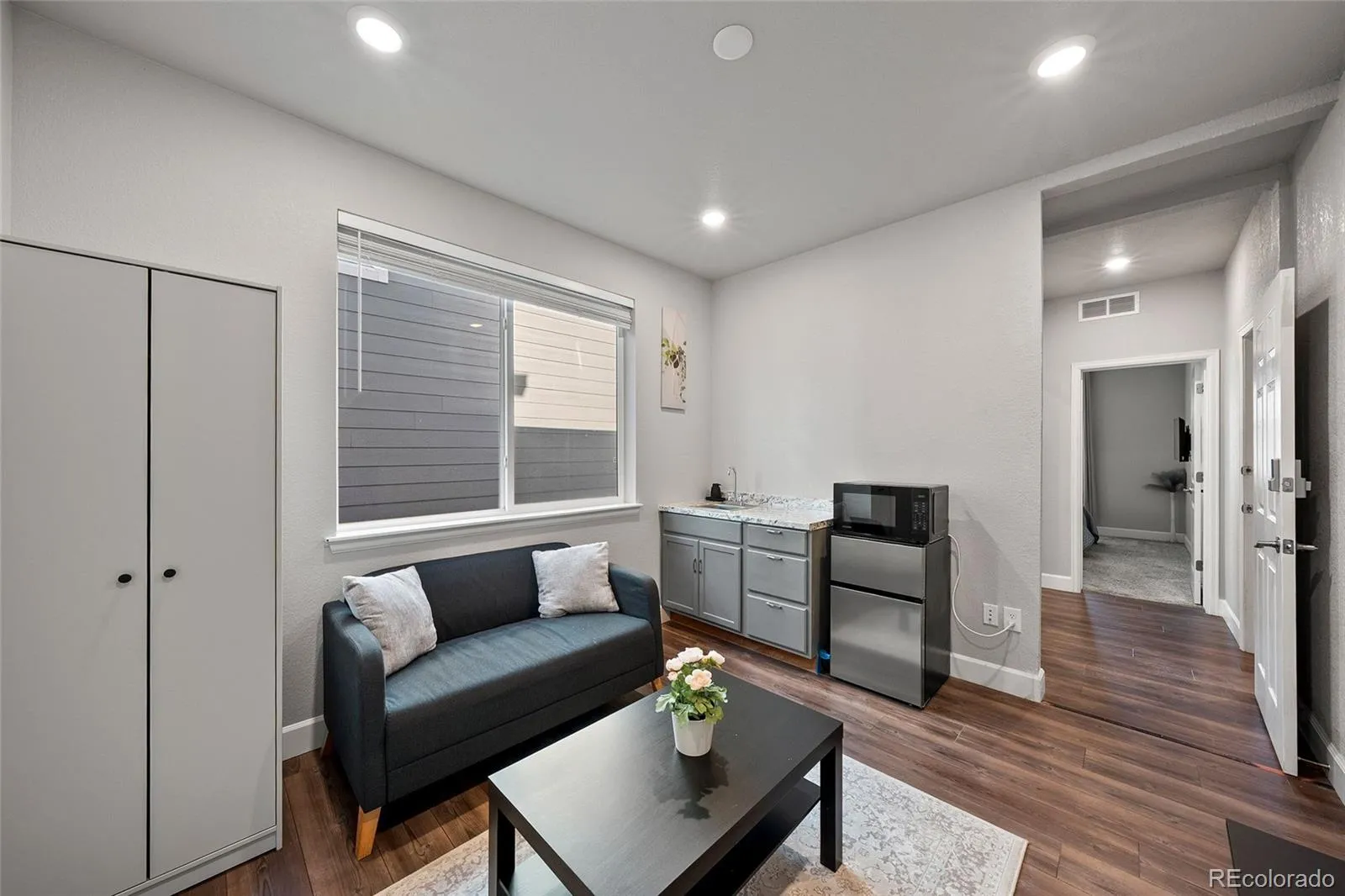 Welcome to this beautifully built 2022 mountain contemporary home in the sought-after Sunstone Village at Terrain, where modern living meets everyday convenience. Thoughtfully designed with flexibility and energy efficiency in mind, this home features solar panels and a separate attached 1-bedroom Short Term Rental with kitchenette, offering outstanding income potential or multi-generational living options. This home features 6 bedrooms and 4 bathrooms with a fully finished basement, leaving plenty of livable space for everyone. The open-concept main level is anchored by a warm gas fireplace in the living room and a gorgeous, updated kitchen with quartz countertops, a large island, modern cabinetry, and a spacious dining area which are perfect for both entertaining and daily life. Retreat to your primary bedroom upstairs with gorgeous primary bathroom and oversized closet. Upstairs provides generous bedrooms and a versatile loft space, while the finished basement adds additional living and recreational space complete with a kitchenette/wet bar area. Step outside to enjoy a covered front porch, a back patio, and a fully fenced backyard, ideal for relaxing, pets, or outdoor gatherings. Beyond the home, the location truly shines. This home is located in the sought-after Douglas County school district. Residents enjoy neighborhood walking paths, parks, playgrounds, and community trails, all just steps away. The home is minutes from grocery stores, restaurants, coffee shops, and shopping, including The Outlets at Castle Rock, offering a wide variety of dining, retail, and entertainment options. Convenient access to Founders Parkway and I-25 allows for easy commuting and quick trips to downtown Castle Rock, Parker, Denver, and Colorado Springs, while still enjoying the charm of a quiet, well-planned neighborhood. This home delivers the perfect balance of comfort, flexibility, and location which is ideal for homeowners and investors alike.