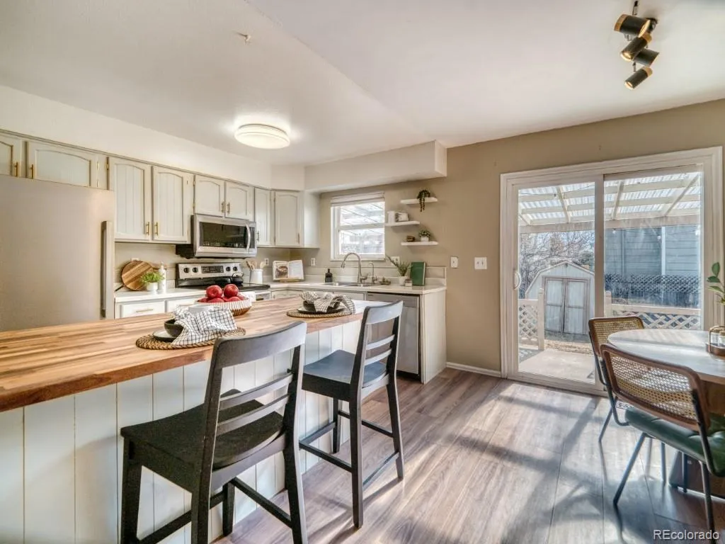 The kitchen shines with a brand-new butcher block countertop and stainless steel appliances, complemented by stylish LVP flooring that flows throughout the home for a cohesive, low-maintenance finish. The residence also features LED lighting, a cozy fireplace, and a spacious private fenced yard on a desirable corner lot—perfect for relaxing, entertaining, or pets. A functional, seamless layout offers multiple living areas and generously sized bedrooms, providing comfort and flexibility for everyday living.