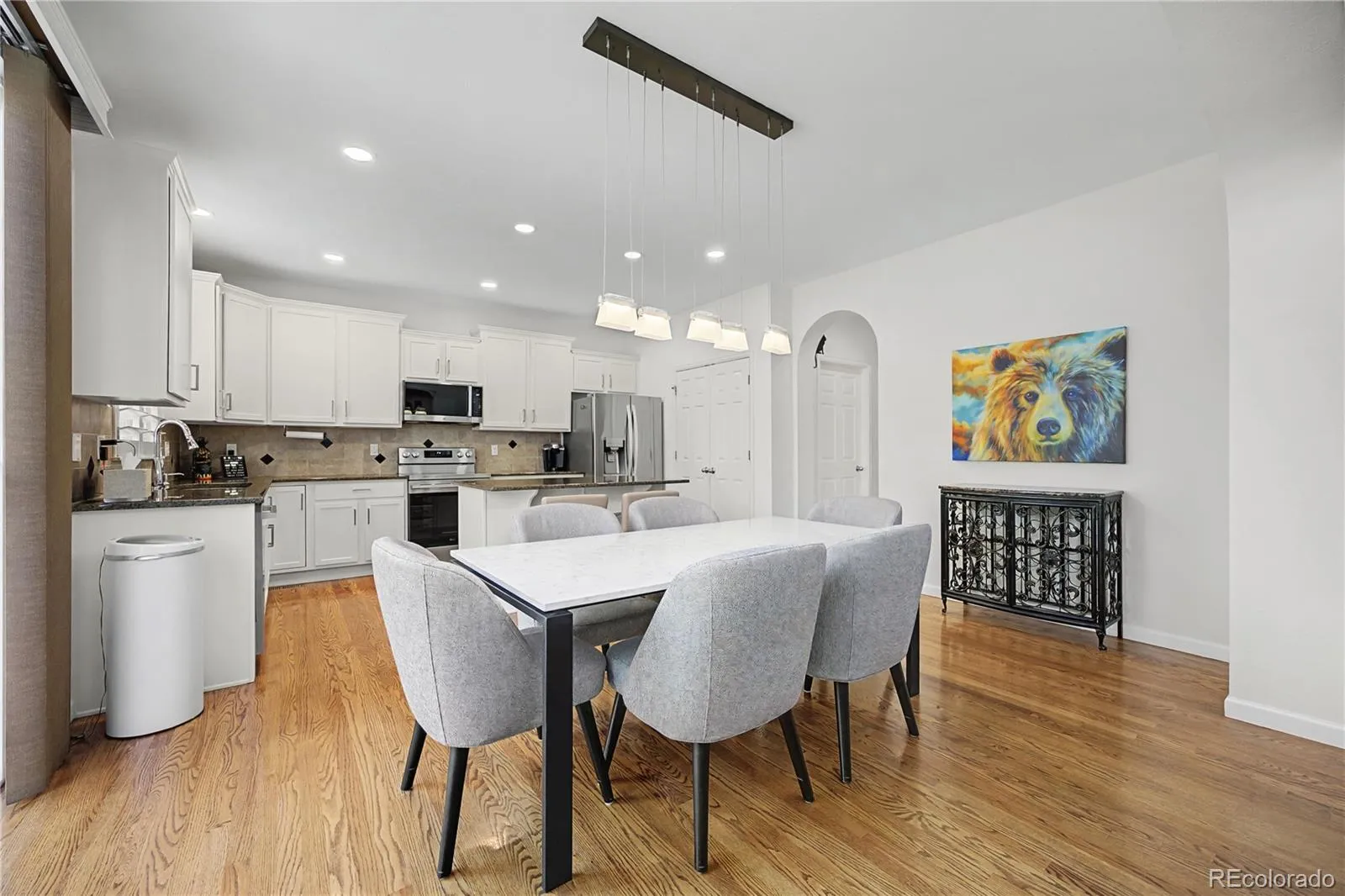This stunning 3-bedroom, 2.5-bath home in Littleton offers a perfect blend of modern updates and timeless appeal—truly move-in ready. Step inside to beautiful hardwood floors throughout the main level, fresh paint in the kitchen, family room, and loft, plus new carpeting in all bedrooms and closets. The refreshed kitchen features painted cabinets, new hardware, and all new stainless steel appliances. Plantation shutters add elegance, updated lighting creates a warm ambiance, and a custom stair railing provides a distinctive touch.