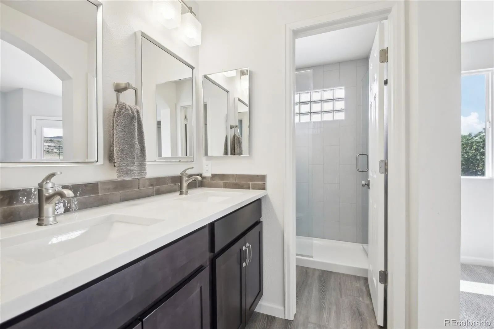 Stunningly remodeled and thoughtfully updated home in the sought-after Soda Lake Condos community! In addition to its beautiful updates, this property’s layout and location make it a strong candidate for those seeking a rental or investment property. The unit has been fully remodeled and transformed with high ceilings and abundant natural light, creating a bright and inviting atmosphere. Brand-new LVP flooring and plush carpet flow throughout, complementing the modern finishes. The open living room shines with a striking fireplace, built-in shelving, and seamless access to a private balcony with serene mountain views. The kitchen has been completely rebuilt with new stainless steel appliances, quartz countertops, sleek cabinetry, and a coordinating backsplash. Three spacious bedrooms include a primary suite with direct balcony access and an ensuite bathroom featuring dual sinks and a new step-in shower. A versatile additional room with French double doors is ideal as a home office or non-conforming bedroom. Other highlights include a spacious laundry room, an attached one-car garage, and a reserved parking spot. Outdoor enthusiasts will enjoy immediate access to hiking and biking trails, plus proximity to Red Rocks, Soda Lakes Beach, and the historic towns of Morrison and Golden. With I-70 nearby, mountain adventures and ski destinations are within easy reach. Updates include roof replacement in 2019 and refinished balconies in 2023. The seller will provide a one-year home warranty, adding peace of mind to this exceptional opportunity. This condo combines modern finishes, outdoor enjoyment, and convenient access to the best of Colorado living!