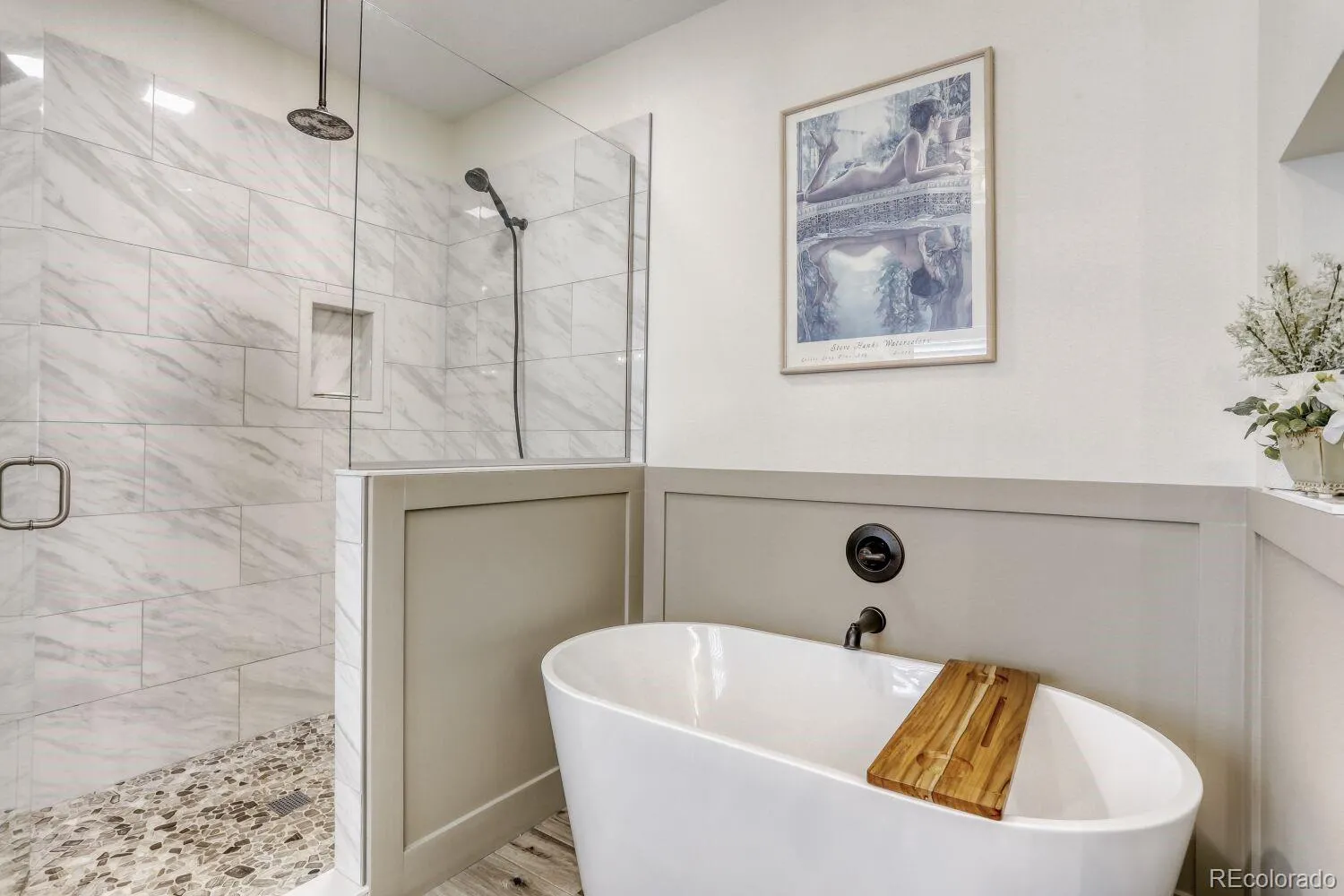 Designed for effortless main-floor living, this garden-level ranch offers a spacious and private primary suite complete w/ a luxurious five-piece en suite bath featuring heated floors & a generous walk-in closet. The heart of the home is the thoughtfully updated kitchen, appointed w/ a gas stove, large island, granite countertops, walk-in pantry & a nearby space to retreat. The tastefully appointed great room is extentuiated w/ a gas fireplace —creating an ideal setting for both everyday living & entertaining. Filled w/ natural light, the dining area flows effortlessly to the expansive deck, overlooking the beautifully manicured, mature yard—perfect for enjoying Colorado’s indoor-outdoor lifestyle. Rounding out the main level is a dedicated spacious office & convenient laundry room.