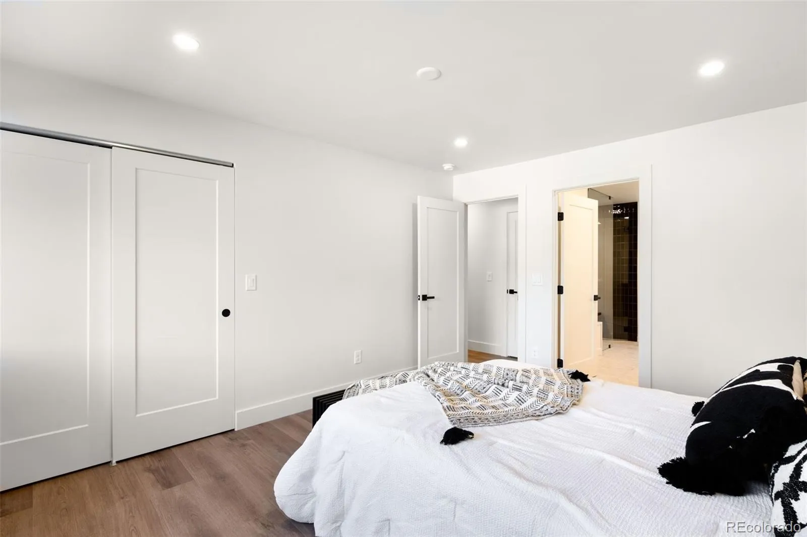 Thoughtfully reimagined from top to bottom, this home combines luxury design with seamless indoor-outdoor living. Every interior surface, fixture, and piece of hardware is brand new, new Pella windows and sliding doors, updated electrical, significant plumbing improvements, and a new tankless water heater, furnace, and central air system. Recessed lighting with dimmers creates a warm, inviting ambiance throughout. The chef’s kitchen is designed for entertaining and everyday living, featuring double stacked ovens plus a warming drawer, a 36” six-burner gas range with a third oven, custom vent hood, full refrigerator and freezer, two dishwashers, quartz counters and backsplash, soft-close cabinetry, a butler’s pantry with wine fridge, and a dedicated Dyson closet. The open main level is framed by picture-perfect windows and dual sliding doors that extend the living space to a covered deck and a large fenced yard. A gas-burning fireplace anchors the living room, while two main-level bedrooms with a Jack & Jill bath offer ideal flex space for offices or dining. The upper-level primary suite is a private retreat with balcony access, mountain views, custom walk-in closet built-ins, and a spa-inspired ensuite with heated floors. Each additional bedroom on the main and upper levels includes its own ensuite bath & generous closet. The walkout lower level is an entertainer’s dream with a large living area, wet bar, covered patio access, exercise room, full bath, sixth bedroom with a wood-burning fireplace, and ample storage. Outside, enjoy a freshly painted exterior, maintenance-free Trex decks, pine tongue-and-groove ceilings on covered outdoor spaces, & a fully finished, heated three-car garage with extra height and storage. Ideally located with easy access to the mountains, Rolling Hills Country Club, Van Bibber Open Space, light rail to Olde Town Arvada, & a scenic bike ride to Golden. Rainbow Ridge is a private pool community with tennis courts.