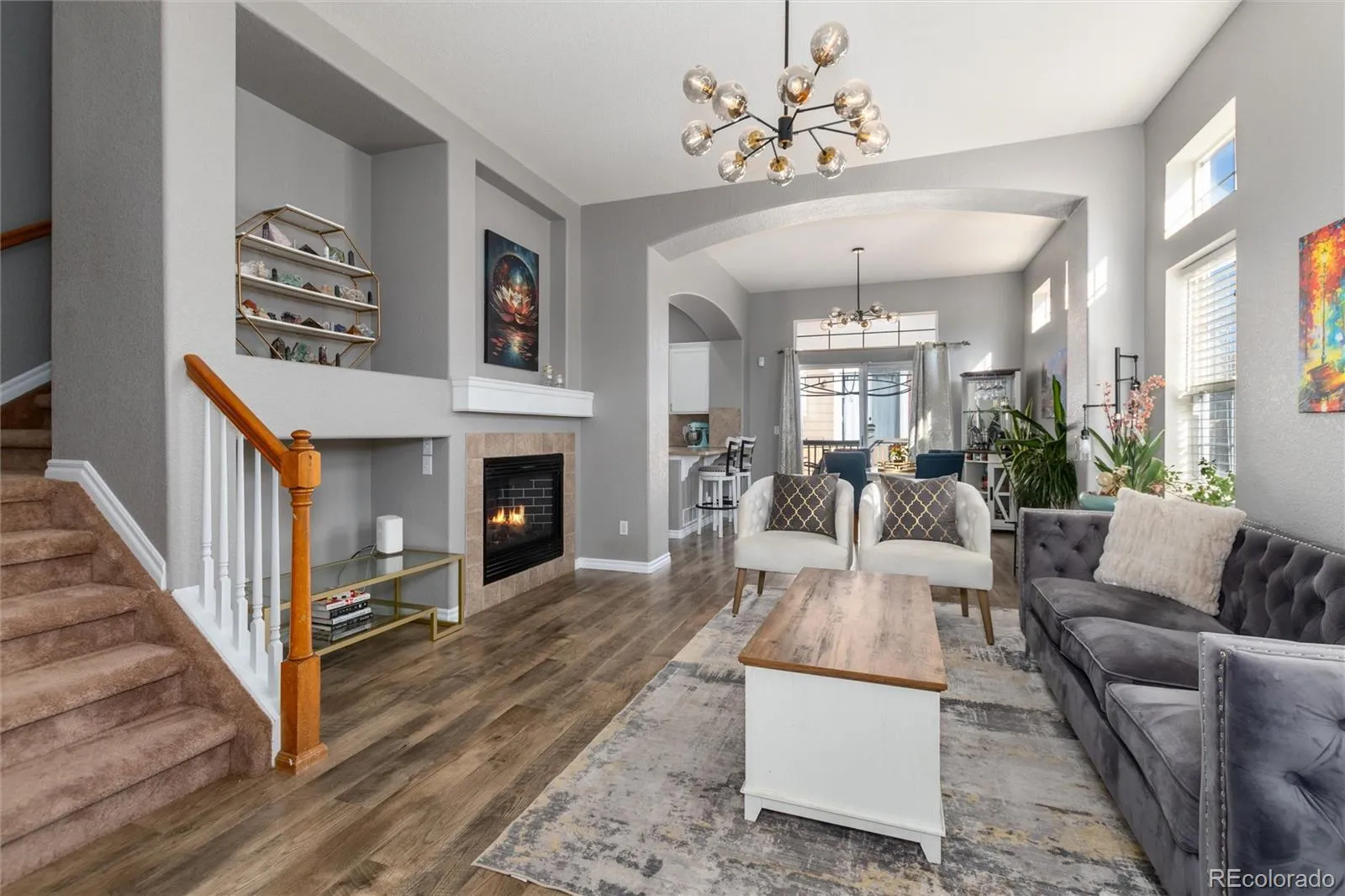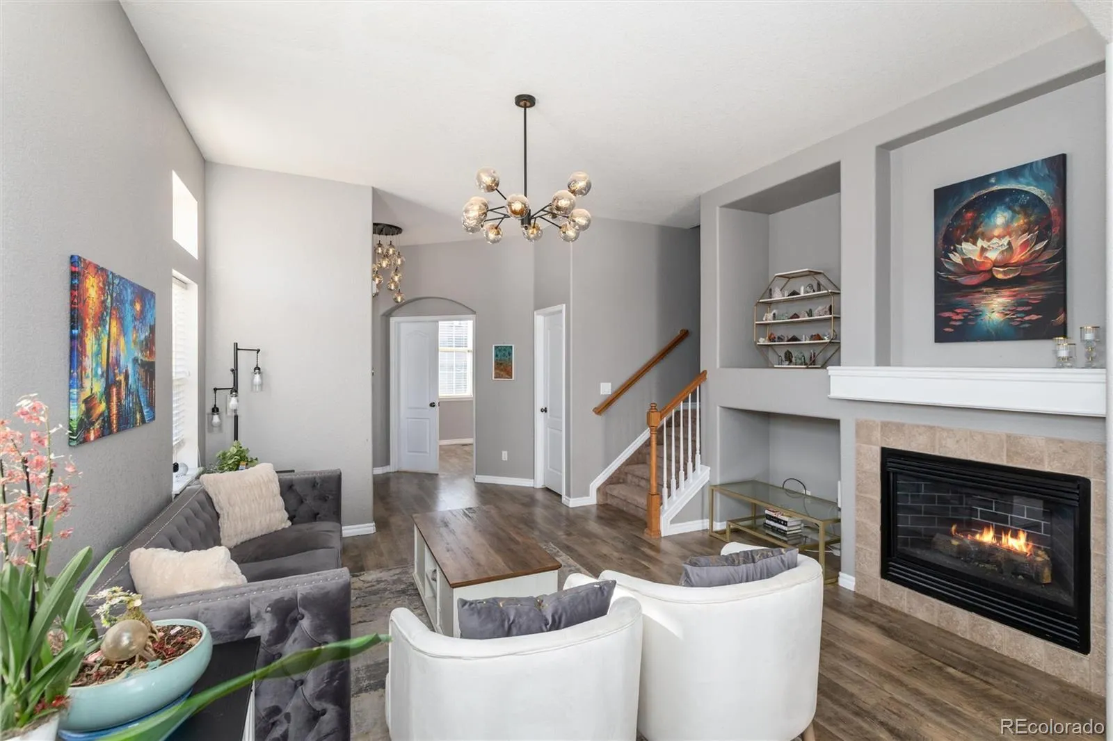 Set on a desirable corner lot in Firelight, this warm & welcoming home is filled with beautiful natural light from the moment you step inside. Large windows throughout allow sunlight to pour in, creating bright, cheerful living spaces that feel open & inviting all day long. Thoughtfully designed, this home reflects true pride of ownership in every detail. Recent updates—including a newer furnace & AC system, smart home features, & a radon mitigation system—add comfort and peace of mind. The spacious floor plan offers four bedrooms, with three upstairs & one conveniently located on the main level, along with two & a half bathrooms. The great room is anchored by a cozy gas fireplace & flows seamlessly into the kitchen & dining area. The main level bath could easily be converted to a 3/4 bath that opens directly into the 4th bedroom. The upper level is anchored by a generous primary suite featuring a five-piece bath & a large walk-in closet, creating a comfortable & private retreat. Two additional upstairs bedrooms share easy access to a full bath, while the open loft provides a flexible space—ideal for a second living area, playroom, or home office. Architectural details such as arched doorways, built-in niches, and a tray ceiling in the primary suite add timeless character, while the kitchen & dining area provide direct access to the rear composite deck with pergola for easy indoor-outdoor living. An unfinished basement offers excellent potential for future expansion, & the three-car tandem garage provides generous storage. Enjoy access to Highlands Ranch Community Association amenities, including four recreation centers, pools, fitness facilities, organized activities, & miles of trails, along with nearby pocket parks that enhance the neighborhood’s connected, community-focused lifestyle. Ideally located near dining, shopping, entertainment, & everyday amenities, this inviting home blends warmth, functionality, & thoughtful updates—ready for its next chapter.
