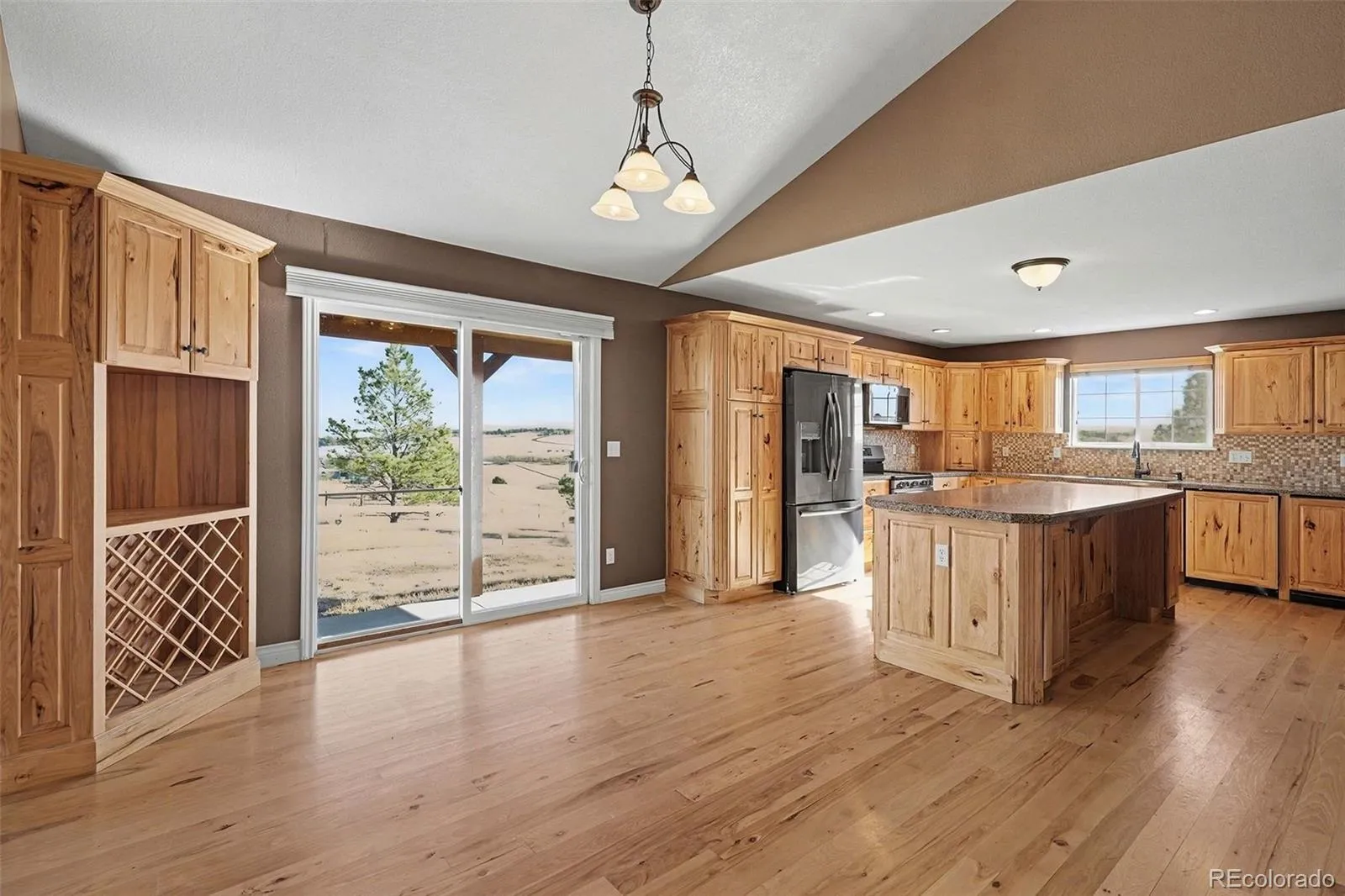 A rare opportunity to own close-in acreage featuring a ranch-style home with a walk-out basement and a spacious outbuilding. This 4-bedroom, 4-bath home with a 3-car garage truly checks all the boxes. The large kitchen with pantry opens to a welcoming great room with a custom rock fireplace and expansive windows showcasing beautiful views. Beautiful wood floors and hickory cabinets add to the mountain contemporary style. The finished walk-out basement offers a second living area with a private entrance—perfect for guests or multi-generational living. The impressive 60×64 shop includes concrete floors, three 14-foot doors, electricity, water, and an overhang ideal for animals. Mature pine trees surround the home, complemented by ample pasture space. Domestic well taps into the Upper Dawson aquifer. 10 plus acres located on a private cul-de-sac with no HOA and low taxes. Move-in ready!