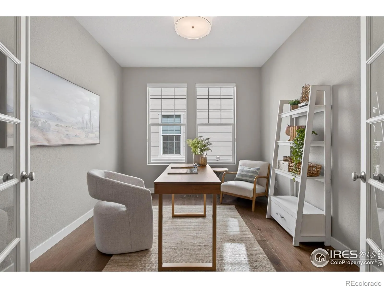 Experience breathtaking sunsets from the comfort of your screened-in porch, perfectly positioned to overlook the neighborhood’s open space and park and sweeping mountain views from the Flatirons to Longs Peak. This home offers the ease and convenience of one-level living at its best.The heart of the home is the kitchen, boasting a generous island with seating for five, gleaming stainless steel appliances, Corian countertops, and rich plank flooring. The open-concept design seamlessly connects the kitchen to the dining room, living room, and the porch, creating a space that’s as functional as it is inviting. The living room, bathed in natural light from a wall of west-facing windows, features a cozy fireplace with a classic mantel-ideal for relaxed evenings at home.The primary suite is a true retreat, complete with serene views, large shower, a double-sink vanity, and a walk-in closet. The second bedroom, thoughtfully located at the front of the home, offers privacy with a full bath just steps away. A versatile office with elegant glass French doors can easily transform into a reading or TV room to suit your needs.The full unfinished basement, complete with an egress window, provides endless possibilities for customization. Outside, the professionally designed, low-maintenance backyard is a private oasis, complete a dedicated fenced in potty space for your furry friends. The oversized two-car garage offers ample storage to keep everything organized.This home is the perfect blend of comfort, convenience, and charm-don’t miss the chance to make it yours!