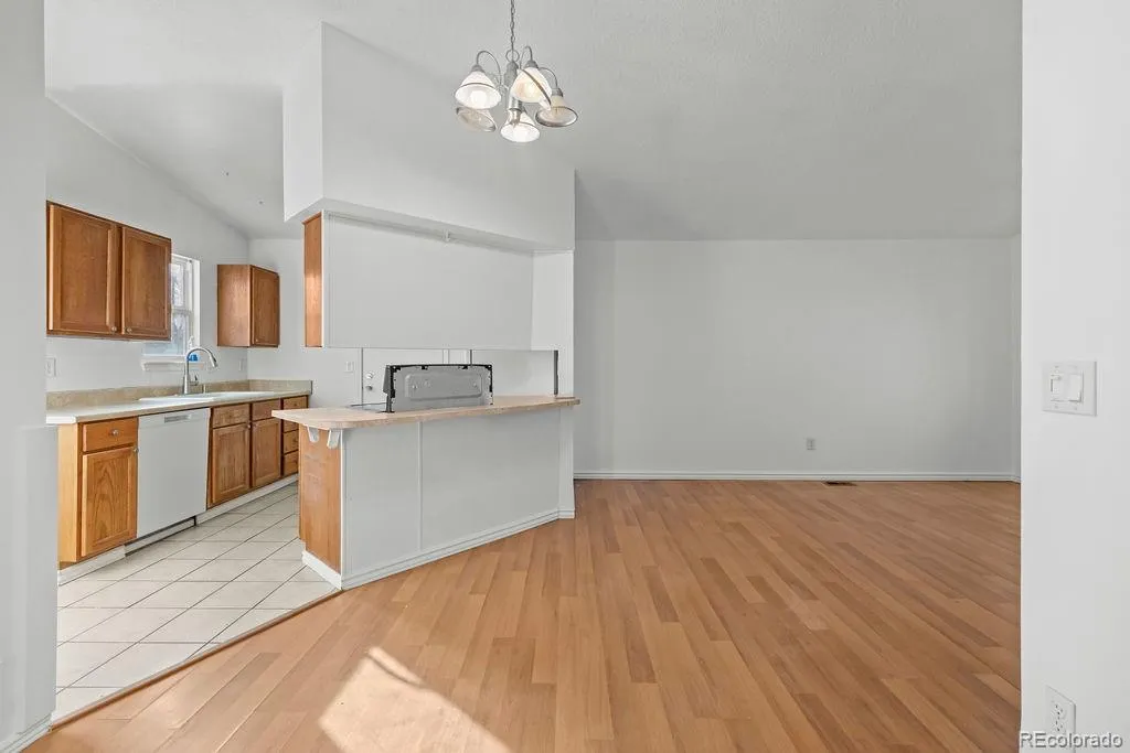 Charming and efficient single family home in the established Summer Valley neighborhood, located within the highly regarded Cherry Creek School District. This well-maintained residence offers a functional layout with all living spaces on one level, making it an ideal option for first-time buyers, downsizers, or anyone seeking low-maintenance living. The main living areas feature durable laminate flooring and an open, connected flow between the living room, family room, and eat-in kitchen… perfect for everyday living and casual entertaining. The kitchen offers ample cabinetry, laminate countertops, and a practical layout that opens directly to the family room for easy interaction. Two bedrooms provide comfortable and flexible living options, including space for a primary bedroom, guest room, or home office. The full bathroom includes tile flooring and an updated shower, conveniently located to serve both bedrooms and the main living areas. Outside, enjoy a fully fenced yard with space for pets, gardening, or outdoor gatherings, along with a patio area ready for relaxing or entertaining. An attached one-car garage adds everyday convenience, and the home’s west-facing orientation means less snow shoveling in winter. Ideally situated near parks, shopping, dining, and Quincy Reservoir, with easy access to major routes including E-470, this home offers a balance of comfort, functionality, and location, all without HOA restrictions.