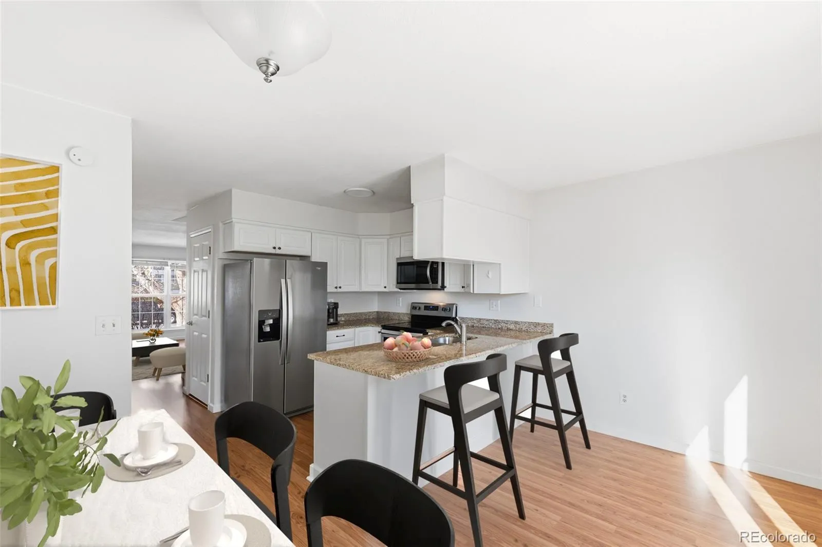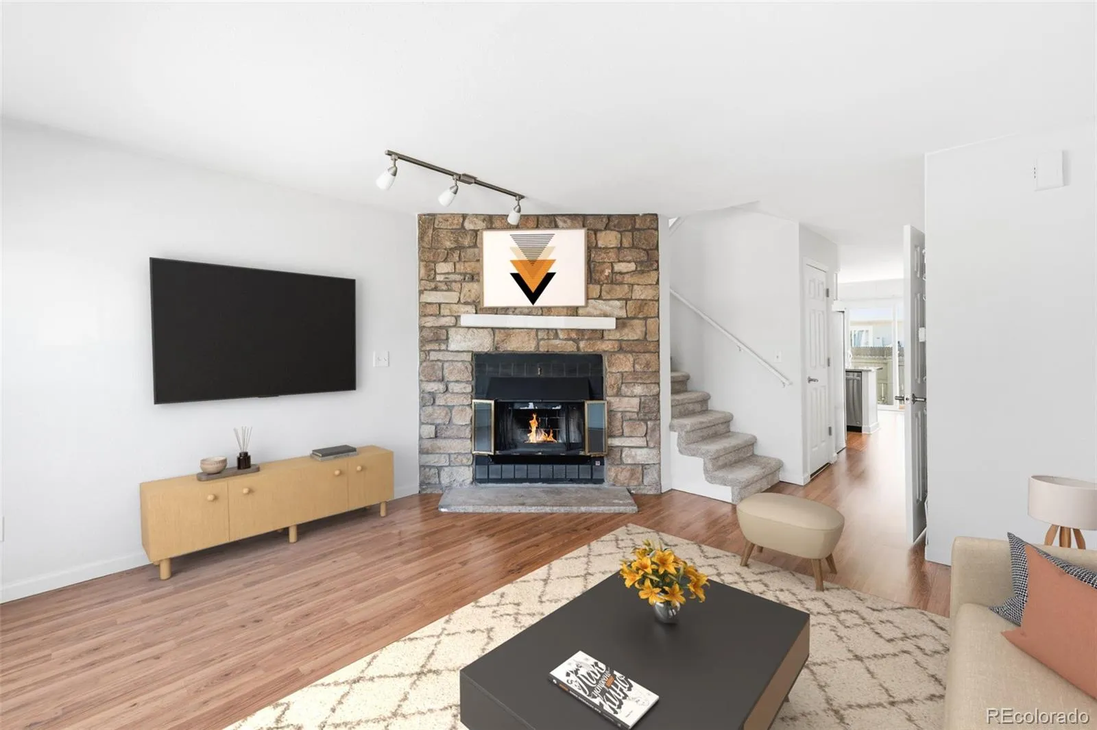 Beaming with abundant natural light, this Town and Country Village townhome is ideally located just moments from historic Downtown Parker. Freshly updated with new interior paint and newer carpeting, the main level feels bright and welcoming. The living room is anchored by a cozy fireplace and flows seamlessly into the updated kitchen with all-white cabinetry, creating an inviting space for everyday living and entertaining. Upstairs, two spacious en-suite bedrooms provide privacy and convenience, with vaulted ceilings allowing for bright and airy spaces. The finished basement adds exceptional versatility with an additional bedroom, bathroom and excellent storage — ideal for guests, a home office or recreation space. A private backyard offers a quiet retreat for morning coffee or evening gatherings. Residents enjoy a prime location near shops, restaurants, the Parker Arts Center and the summer farmer’s market, with easy access for commuters. With an assigned parking space, this turnkey townhome delivers location, livability and timeless appeal.