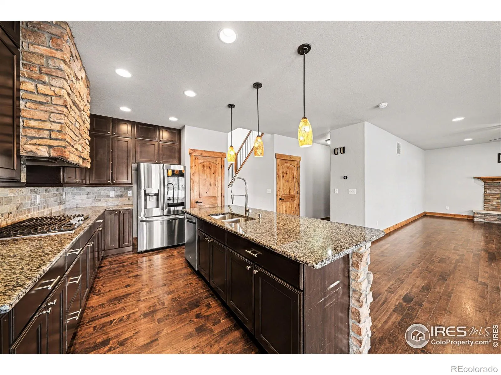 Beautiful Custom Built Home 1 block away from School and Parks! 3 car garage on oversized corner lot! Kitchen features upgraded custom cabinetry to the ceiling, Large kitchen island w Breakfast bar, In Wall Oven/Microwave, Rock Hood Vent, Gas Cook Top, Under mount sinks, Solid surface countertops, Living room gas fireplace, entry built ins, Rod Iron Railings, Large walk in closets, Full 5 piece master bath w walk in shower, custom knotty alder trim work through out, gas out door fireplace and covered patio are perfect for entertaining, full unfinished basement is ready for all your ideas. Fenced in yard, sprinkler system- No Metro District! Hurry and make it yours!