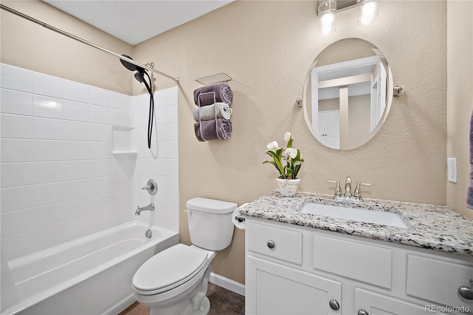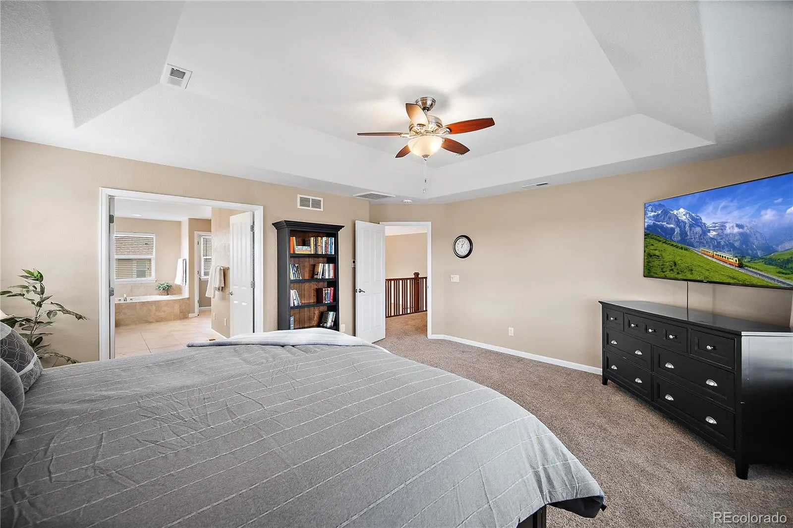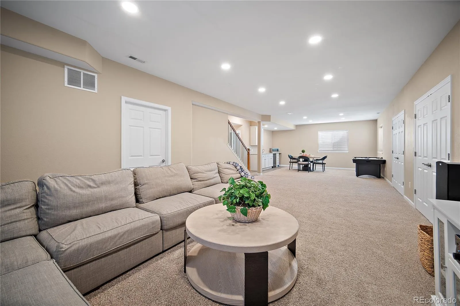 This beautiful 6 bed, 4 bath, 3 car home is located in the coveted Wolf Ranch neighborhood in School District 20. The main level features a formal dining room, main level office with barn door. The living room features a 2 story ceiling with a gas fireplace and stacked stone surround. The spacious eat-in kitchen walks out to the back yard and stamped concrete patio. Just off the kitchen is a spacious laundry room with a walk out to the side yard. There is also a main level guest bedroom and 3/4 bath. Upstairs features the primary suite with trey ceilings , 5 piece spa-like ensuite bath and walk in closet. There are 3 additional bedrooms upstairs and a full bath with double vanity. The recently finished basement boasts a huge entertaining space with a wet bar and walk-in game closet. There is also a bedroom and full bath as well as unfinished storage space. The back yard is fully landscaped with a stamped concrete patio. Wolf Ranch features beautiful community parks and miles of trails. The clubhouse with outdoor pool, dog park, play ground and plenty of outdoor event space. There is even a small fishing lake within the community. Minutes from schools, shopping and entertainment.