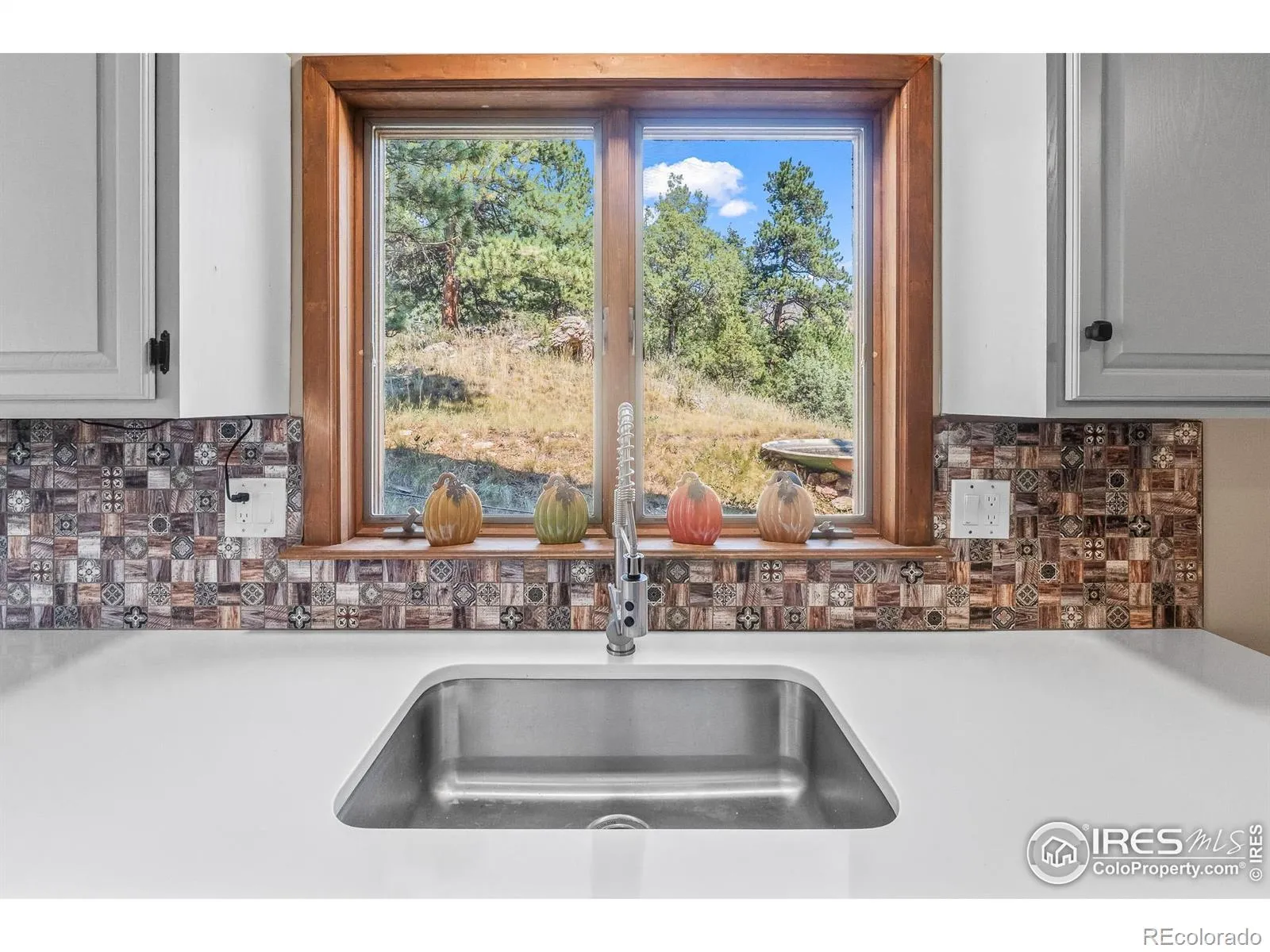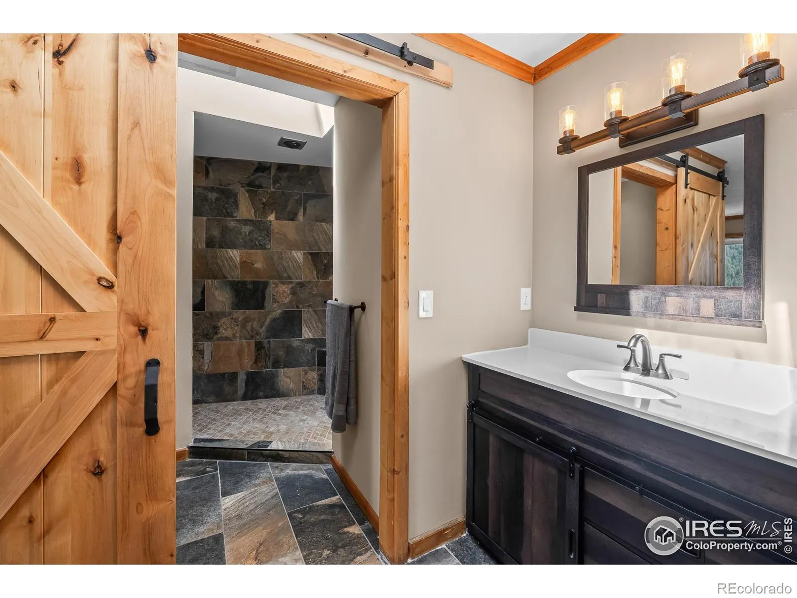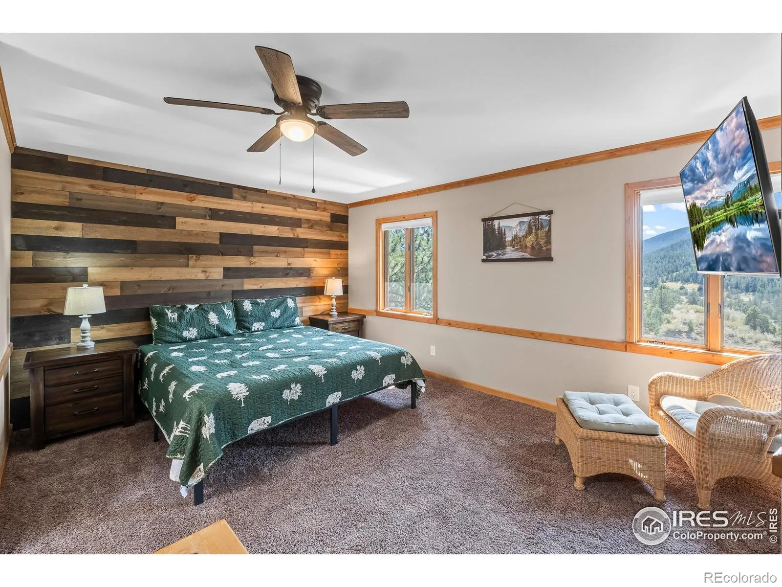 Imagine a stunning mountain home, nestled on over 4.5 acres amidst towering peaks, while offering an unparalleled sense of tranquility and connection to nature found only minutes to Loveland and Estes Park! Upon entering this Glen Haven home, your greeted with abundant natural light from the living rooms floor to ceiling windows that draw the eye outward, creating an uninterrupted flow between the meticulously updated interior and the awe-inspiring scenery outside. The new natural wide stone tile flooring and vaulted ceilings lay the foundation for a space that is both elegant and welcoming while maximizing views from every direction. A large, floor to ceiling stone-clad fireplace serves as the heart of the living room, inviting cozy gatherings on cool mountain evenings. The kitchen, designed for both functionality and aesthetic appeal, boasts stainless steel appliances, newly updated cabinets/hardware and lighting, and is perfect for entertaining or enjoying casual meals with loved ones. The large primary suite conveniently located on the main level features an en suite bath, and walk in closet. The magnificent, large walk-in shower is beautifully accented with stone-tile walls and floor, and has multiple showerheads for a truly immersive and spa like experience. Upstairs you will find the 2nd bedroom and full bath along with a large loft which could easily be converted into a 4th bedroom as it is currently being used as a sleeping space fitting 2 full size beds and a closet. The large basement rec room is great for evening game/movie nights. and hosts another large bedroom, and powder room. Outside the newly finished large wraparound trex deck welcomes the cool,crisp, mountain air, carrying the scent of pine and the sound of a nearby rushing stream. This home is the one you’ve been waiting for!