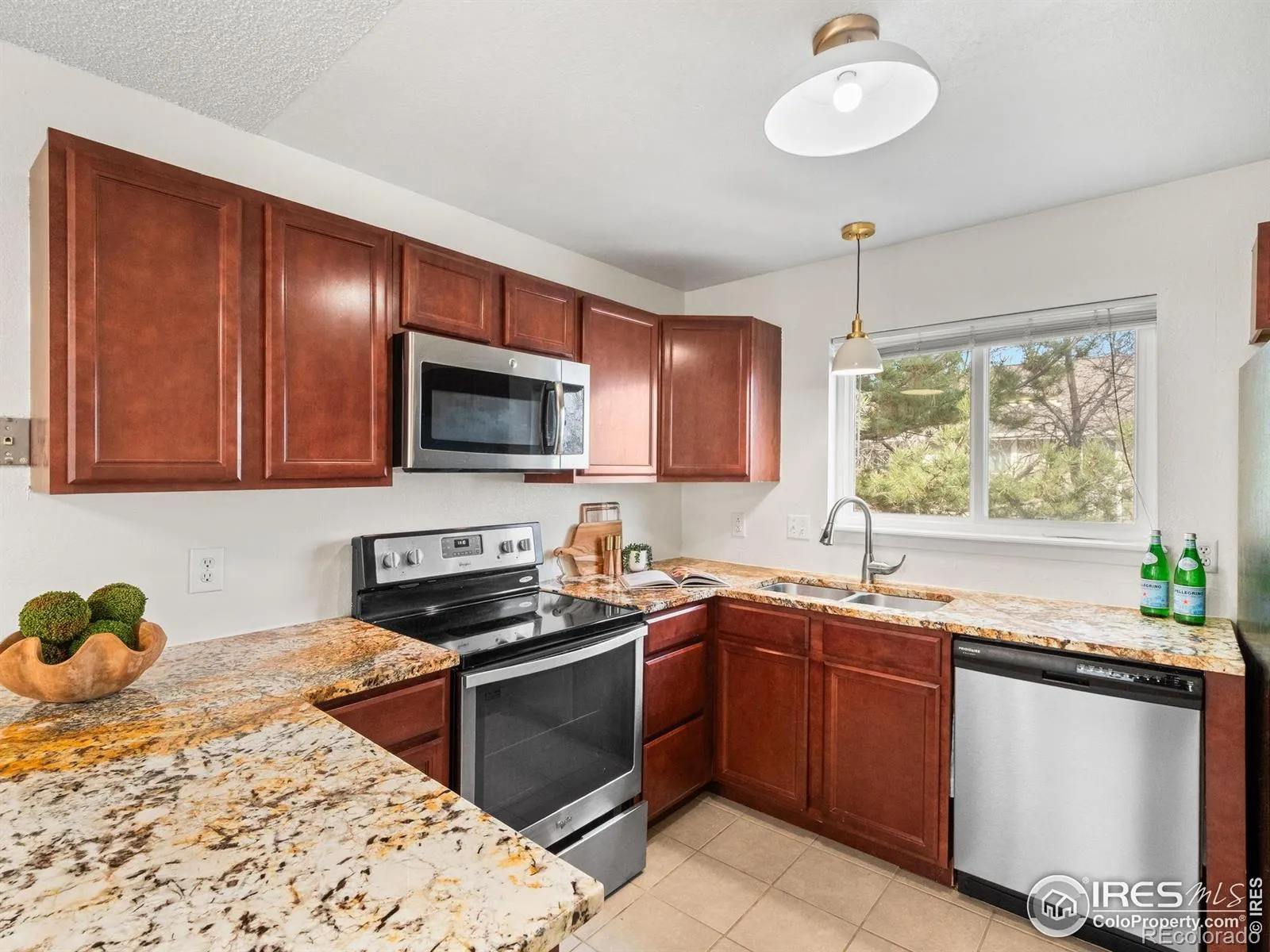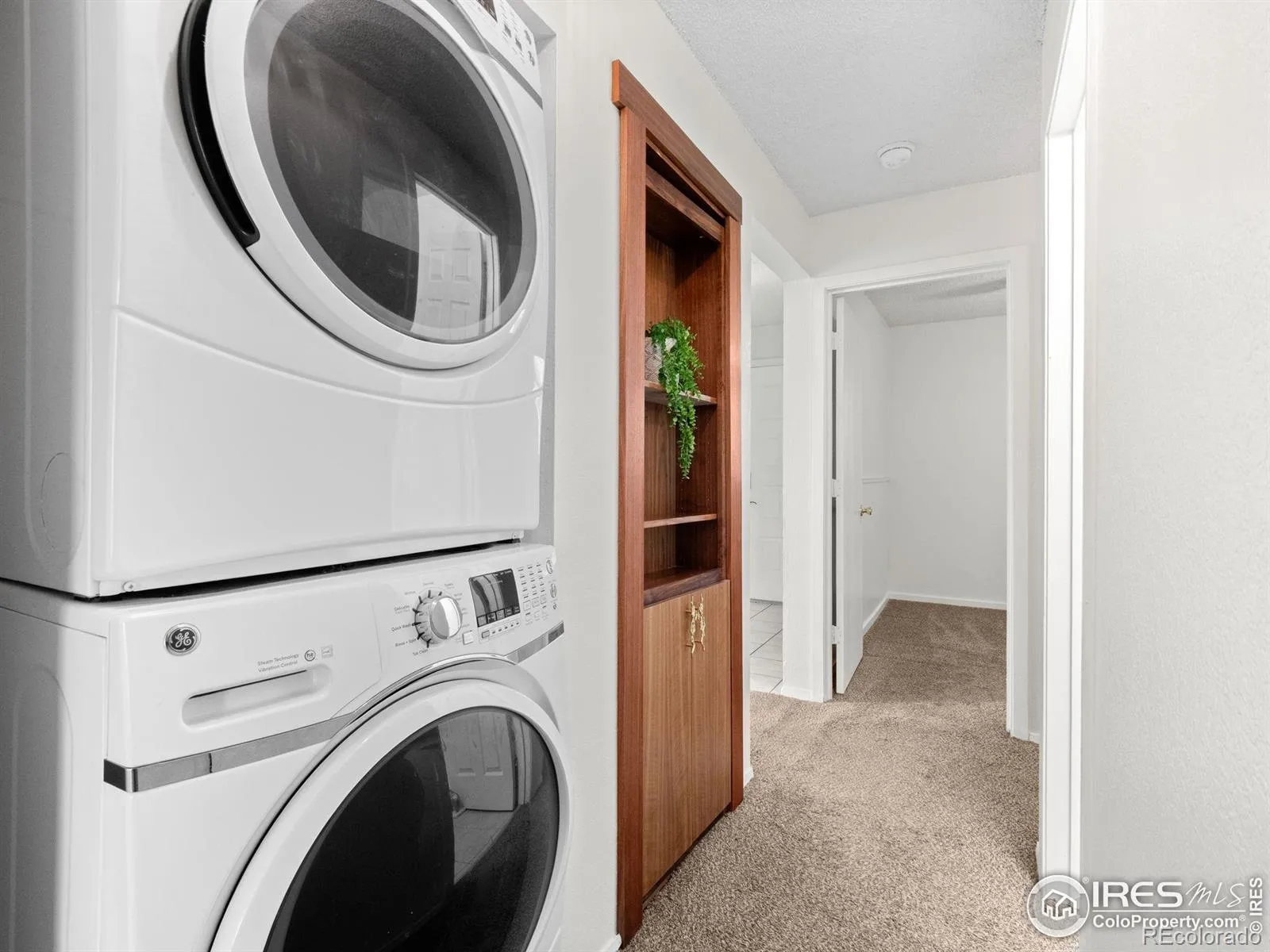 This 3-bedroom, 2-bath condo features 1,167 square feet of well-designed living space. Positioned on the third floor at the end of the building, the unit benefits from vaulted ceilings, skylights, and abundant windows that fill the home with natural light. The living room includes a wood-burning fireplace and sliding glass door that opens to a private balcony surrounded by mature trees, creating a quiet outdoor space. The kitchen is equipped with granite countertops, stainless steel appliances, and a pantry for additional storage. All three bedrooms offer generous closet space. The primary bedroom includes a convenient half bath ensuite. An in-unit washer and dryer add everyday functionality, and ample open parking is available for residents and guests. This move-in ready condo offers easy access to Highway 36 for commuting to Denver or Boulder. An excellent opportunity for buyers seeking top-floor privacy, low-maintenance living, and strong value in Westminster.