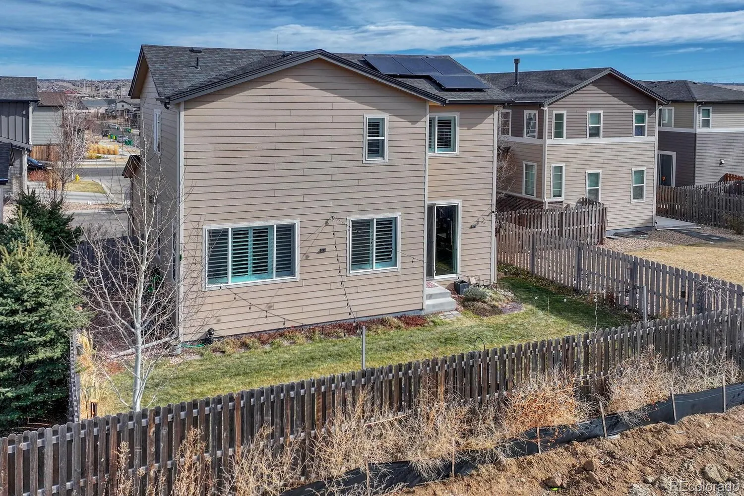 Location, amenities, upgrades, single family home, easy access to Main Street and must see home gym in the basement priced at $595,000. Seller is including all the professional gym equipment. Nestled in a great community in Parker, Senderos Creek offers, parks, open space, community pool, trails and walking distance to restaurants, American Academy, etc. As you enter, notice the high ceilings and open floor plan to the dining room, kitchen, bath and garage. The warm wood floors, plantation shutters and upgrades make the main floor an inviting space. Gourmet kitchen with NEW KITCHEN AID appliances, gas range, dishwasher, microwave/convection oven and refrigerator is included. The quartz countertops, stainless steel sink, faucet and new backsplash with accent to the ceiling make the kitchen stand out. Kitchen is complete with roll out drawers, loads of cabinets and seller added the glass pantry door. The open floor plan allows for eating at the island or add a table for gatherings and media. The seller upgraded the powder bath with accent flooring, new vanity, lighting and don’t miss the iron railing as you head upstairs. The second floor is complete with an oversized master suite, large walk-in closet, custom lighting, and spa shower with subway tile. Enjoy 2 more spacious bedroom with a secondary bath close by and upstairs laundry! Washer and dryer are included. The outdoor space is right off the kitchen, seller added planter boxes, plenty of grass and no home is located behind the property. The hammerhead design of the cul de sac allows for 2 extra parking spots plus the driveway and directly in front of the home. The two car garage is oversized with room for shelving. This is a great value in Parker at $595,000 for a single family home! Set a showing soon.