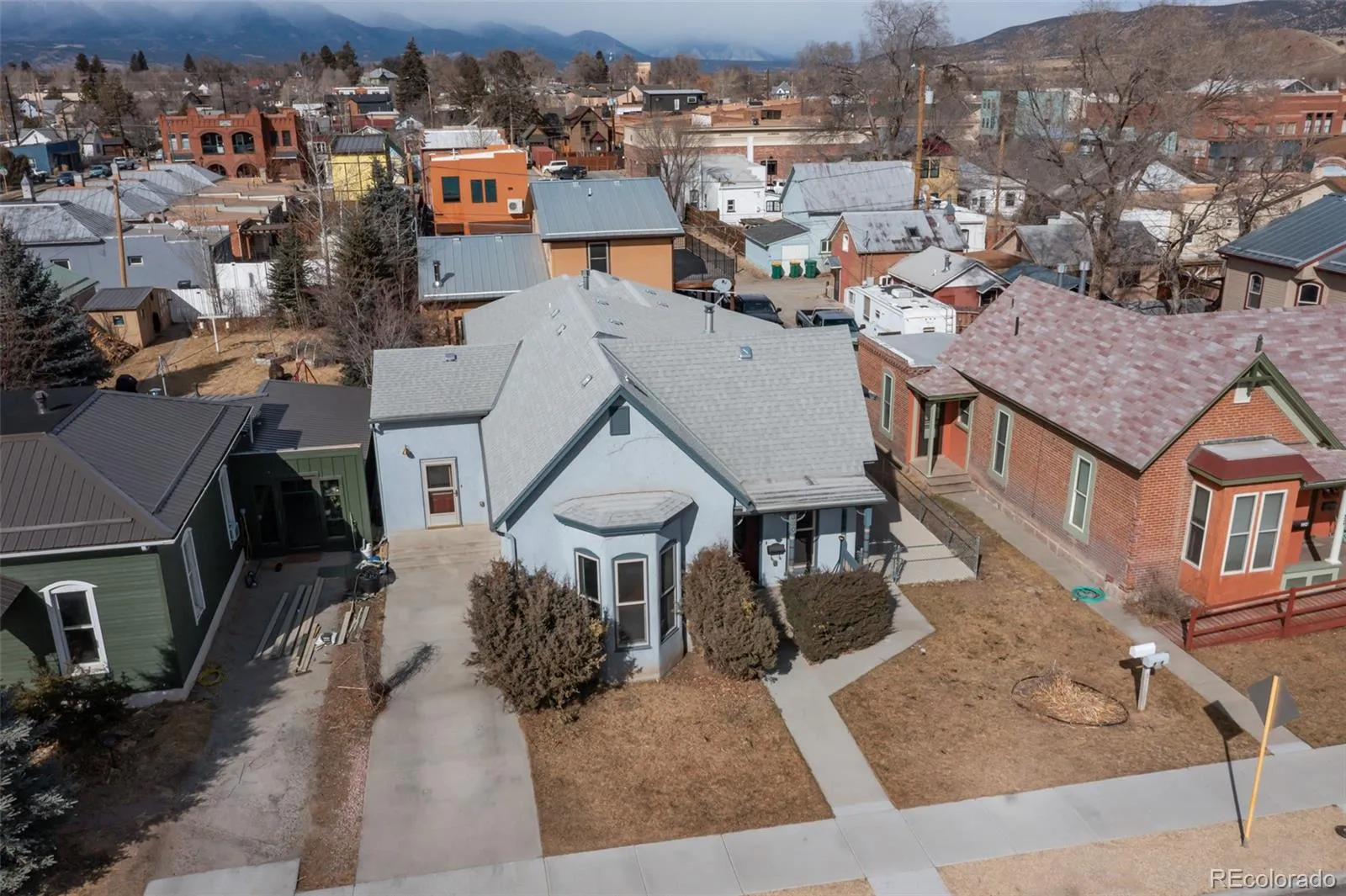 Rare opportunity in prime Salida location. Updated and remodeled Victorian home plus oversized triple car garage and 660 +/- sq ft ADU, mere minutes’ walk from all downtown has to offer. From the covered porch the front door opens into a large, light-filled living room with tall ceilings, hardwood flooring and a wood stove for warmth and ambience. The living area in turn opens onto a spacious kitchen with ample counter space and dining nook. Off the hallway is a large primary suite with walk-in shower and closet, a second bedroom, full bath, and dedicated laundry. Additionally, a third bedroom with 3/4 bath and small kitchenette and private entrance can be locked off for separate living or rental income. Across the small, manageable back yard is a newer oversized three car garage and above a one bedroom ADU with full kitchen, living room, 3/4 bath, and a large deck with views of downtown and S Mountain, offering further income potential or lifestyle flexibility. Mixed Use Neighborhood zoning allows for a variety of uses, including live / work.