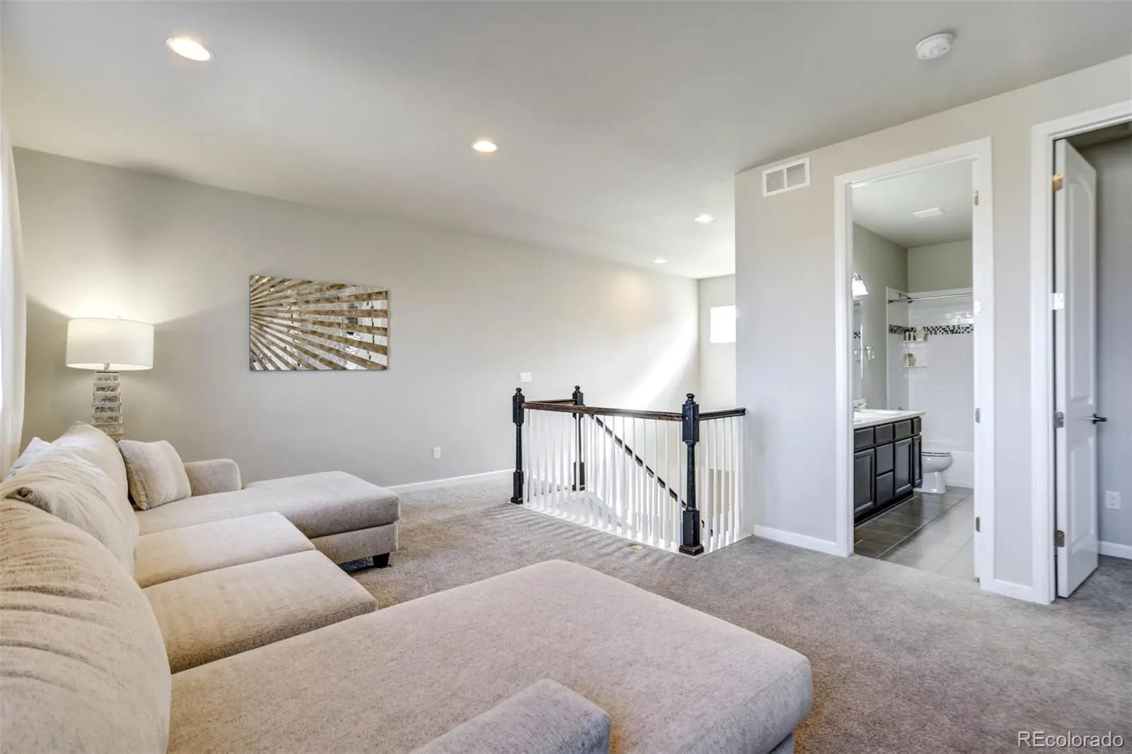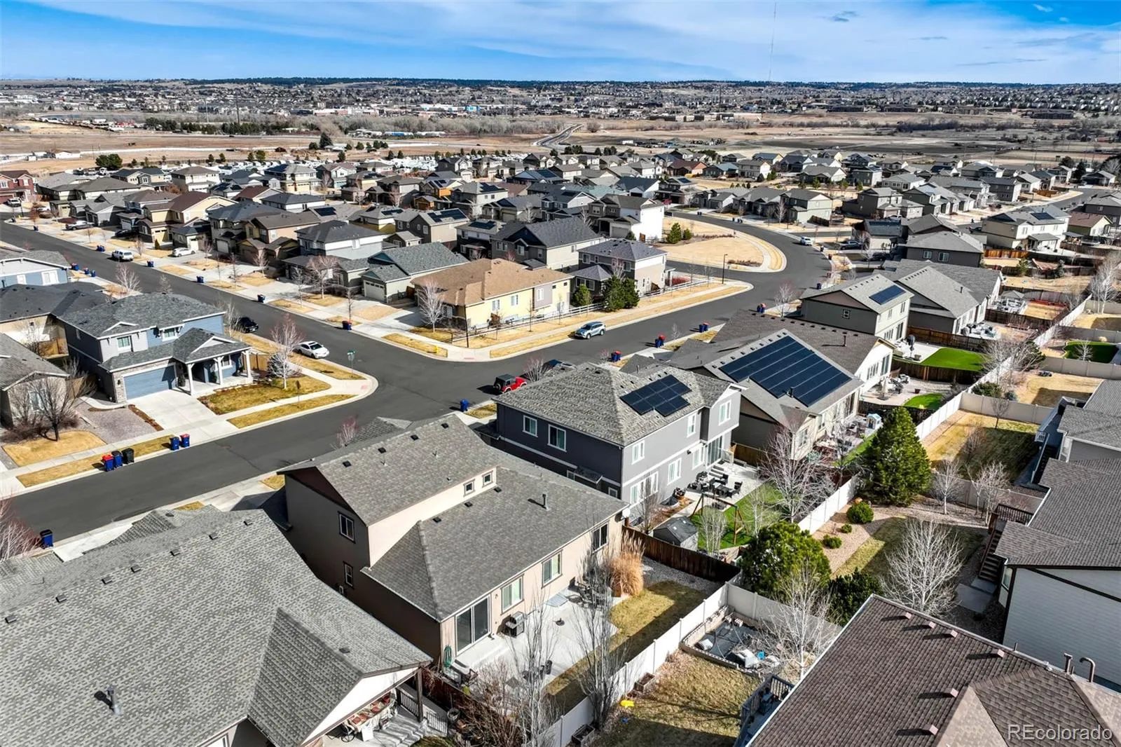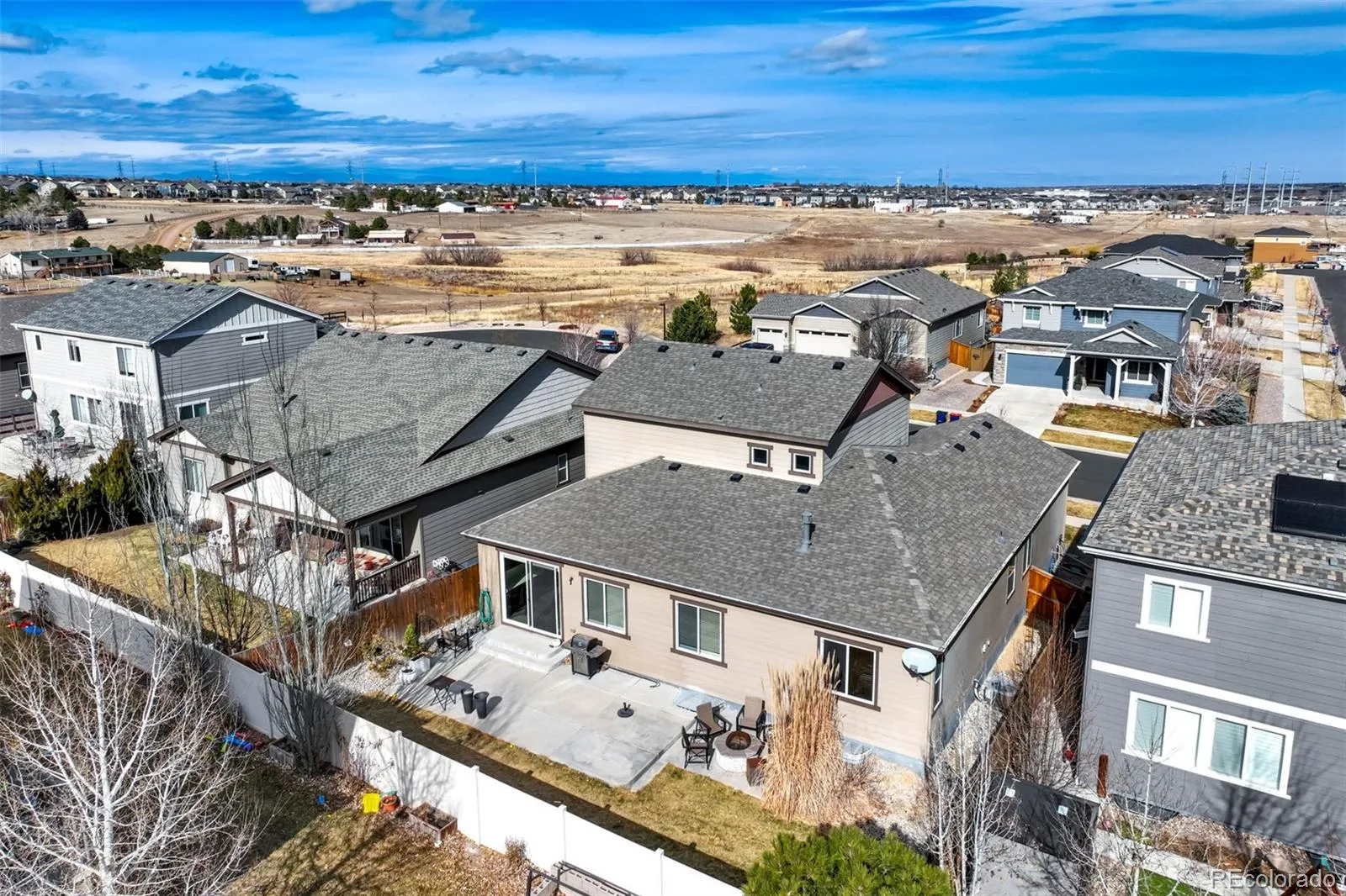This stunning ranch-style home with a bonus upstairs level — featuring a loft, two additional bedrooms, and a full bathroom — in desirable Salisbury Heights is completely turn-key and a true must-see. Enjoy professionally landscaped front and back yards, highlighted by a large concrete patio with a built-in fire pit, perfect for year-round entertaining. Tucked away on a quiet street near the end of a cul-de-sac, this home offers both privacy and convenience. The main floor features a spacious primary suite with a luxurious 5-piece bath and large walk-in closet, plus two additional bedrooms and a generous office. Upstairs provides flexible living space with two more bedrooms and a versatile loft ideal for a media room, playroom, or workspace. At the heart of the home is a beautifully upgraded kitchen showcasing granite countertops, 42″ dark cabinetry, a massive center island, gas cooktop, and all stainless-steel appliances included. Additional highlights include an oversized 3-car tandem garage (EV Charger included) and an expansive 2,025 sq. ft. unfinished basement with 9-ft ceilings ready for customization. Enjoy abundant neighborhood trails, walking distance to Salisbury Park, and quick access to I-25, E-470, and charming downtown Parker. This home truly checks all the boxes — location, layout, upgrades, and outdoor living.