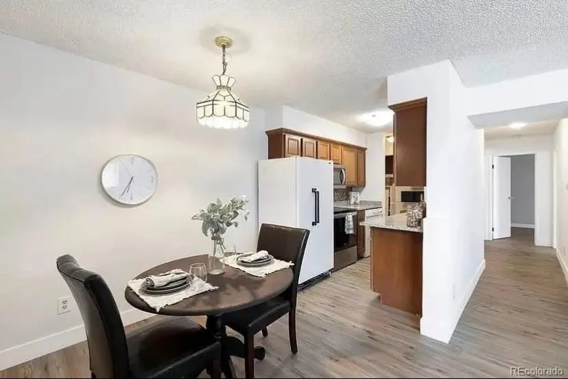 Welcome to 7455 E Quincy Ave #101. This updated and freshly painted, corner unit features luxury vinyl plank flooring and granite countertops. This home is ready to enjoy and of all of the appliances are included. There are two large bedrooms, a full bathroom, dining room and generous sized living room. This is a ground floor unit with lots of light and many windows. This home features a blend of comfort and convenience. Stay comfortable year round with central air conditioning and forced air heating. Minimal stairs to access this home. There is a clothes dryer in the unit. The building features its own laundry room and dedicated storage unit on the same floor. This home also includes one space in a lighted carport. Take advantage of the pool, clubhouse, fitness center, and tennis court right at your doorstep. Also a short walk to two wonderful parks. A quick drive to the Denver Tech Center and Cherry Creek State Park. Also easy access to I-25 and I-225. Only 13 miles to downtown Denver and 25 miles to DIA. Walk to restaurants, shopping, elementary school and much more! Free 1 year, 1% interest rate buydown through preferred lender.