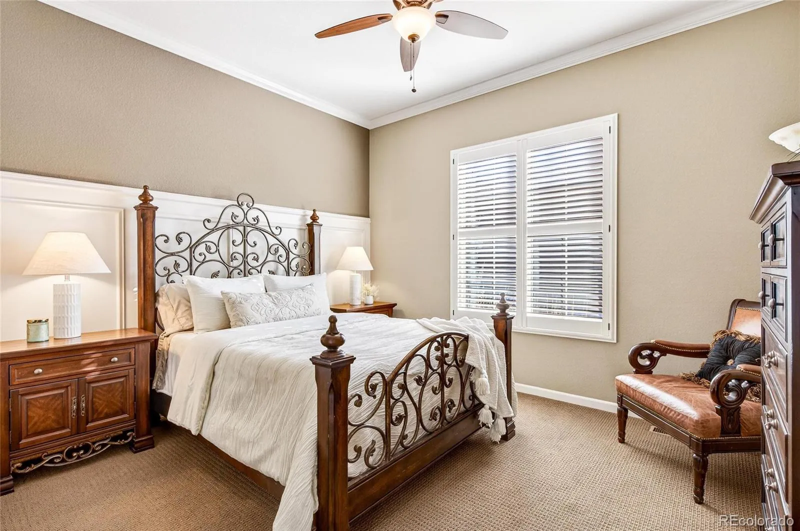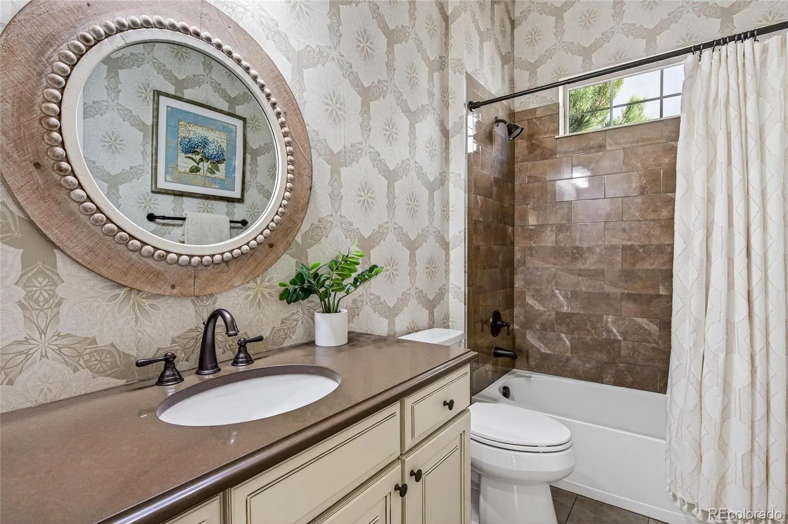 **OPEN HOUSE SATURDAY, FEBRUARY 14TH 12-2PM** You will love his thoughtfully appointed ranch-style home w/ fantastic layout and nice views. The open floor plan is enhanced by wood flooring and an abundance of windows, creating a bright, airy atmosphere that flows easily from room to room. The kitchen is designed for both daily living and entertaining, offering an expanded island, gas cooktop, and a large walk-in pantry. It opens naturally to the living room, where a gas fireplace adds warmth and visual appeal. A flexible bonus room provides space for a home office, library, or dining room, allowing the home to adapt to your needs. The main-level primary suite is a peaceful retreat with coffered ceilings, plantation shutters, and a spa-inspired bath featuring a soaking tub and a spacious glass-enclosed shower. A second bedroom and full bathroom, along with a convenient laundry/mudroom with a utility sink just off the garage, complete the main floor. The finished walk-out basement extends the living space with a large family and entertaining area, a third bedroom, and another full bathroom. A custom wine cellar and built-in wet bar with a bar refrigerator and dishwasher create an ideal setting for hosting, while an oversized storage room provides ample space for organization. Outdoor living is a highlight, with a three-panel sliding door leading to a covered deck featuring a built-in gas fireplace. Enjoy mountain views, sunsets, and hot air balloons drifting by on summer and fall mornings. Additional features include a fully finished garage with epoxied flooring, hardwired ADT security system with video doorbell, and integrated Sonos surround sound. The HOA handles exterior landscaping and snow removal and offers access to an impressive range of amenities, including the Colorado National Golf Course, pickleball,pools, a fitness center, clubhouse, trails, and parks—all conveniently located near shopping, dining, and major highways. Come discover this GEM. WELCOME HOME!