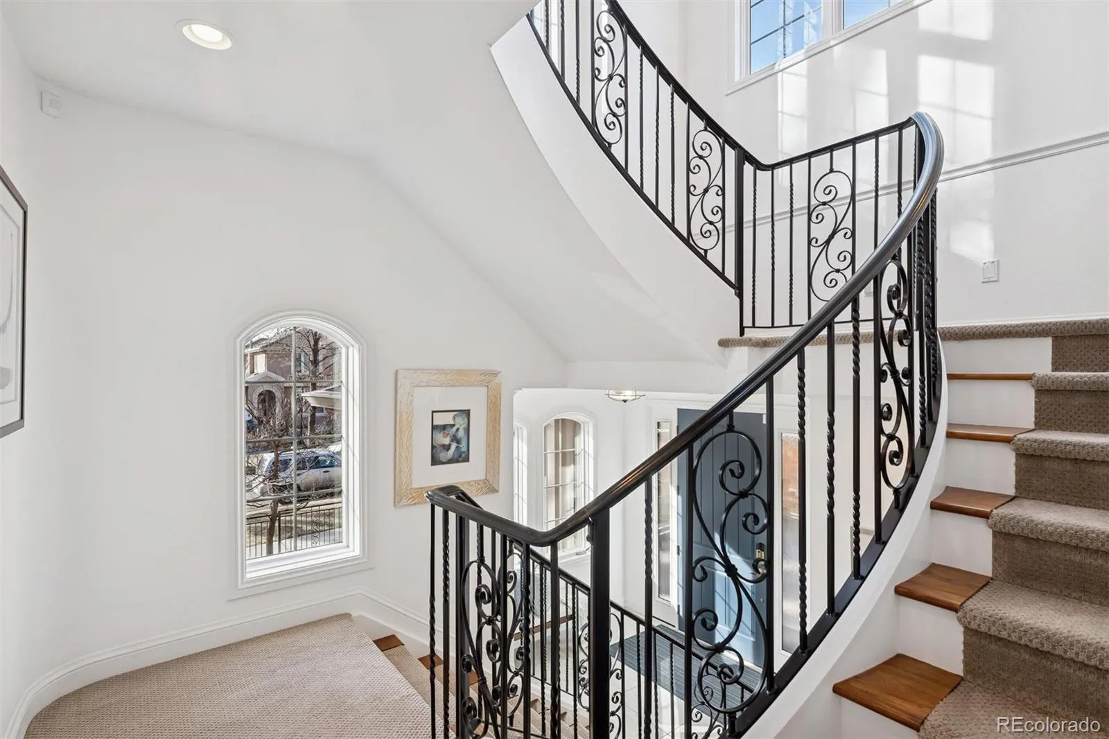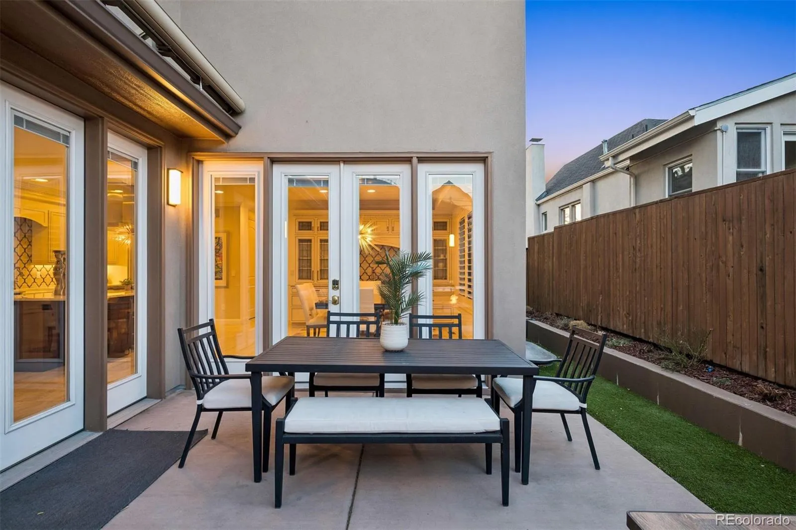 An exceptional expression of contemporary sophistication, this 5 bedroom, 6 bath residence offers elevated living in the heart of Cherry Creek North, just steps from the neighborhood’s most coveted dining, shopping, and lifestyle destinations. A rare and highly sought after highlight is the coveted three car garage as well as an elevator that accesses all levels of the home. Designed with enduring craftsmanship and thoughtful detail, the home welcomes with an awe inspiring foyer where a striking staircase, 8 foot solid core doors, and soaring ceilings create a sense of grandeur and refinement. The main level is both functional and inviting, featuring a private office with new wool carpet, as well as expansive living and dining spaces tailored for entertaining. The gourmet kitchen is appointed with quartzite counters, Kohler fixtures, abundant storage, a walk in pantry, and a large eat in island designed for gathering. Culinary enthusiasts will appreciate premium Thermador appliances, including double oven, oversized refrigerator, and six burner gas range, plus two dishwashers. Indoor outdoor living is seamless, with the kitchen and living area opening to a private patio complete with an outdoor fireplace. The second level offers exceptional flexibility with a second primary suite on this level and an additional ensuite bedroom with walk in closet and a gym/office. The crown jewel is the third floor primary suite, a private sanctuary featuring its own fireplace, spa like bath with a heated jetted tub, built in “coffee” bar and a spectacular rooftop deck, an ideal escape for morning coffee, and Colorado sunsets. The finished lower level extends the home’s livability with a spacious media area and an entertaining bar setup, complete with a sink, refrigerator, and dishwasher. With a west facing orientation, the home enjoys beautiful natural light and warm afternoon glow. Both the front and back yards are fully fenced, making it ideal for pets and outdoor enjoyment.