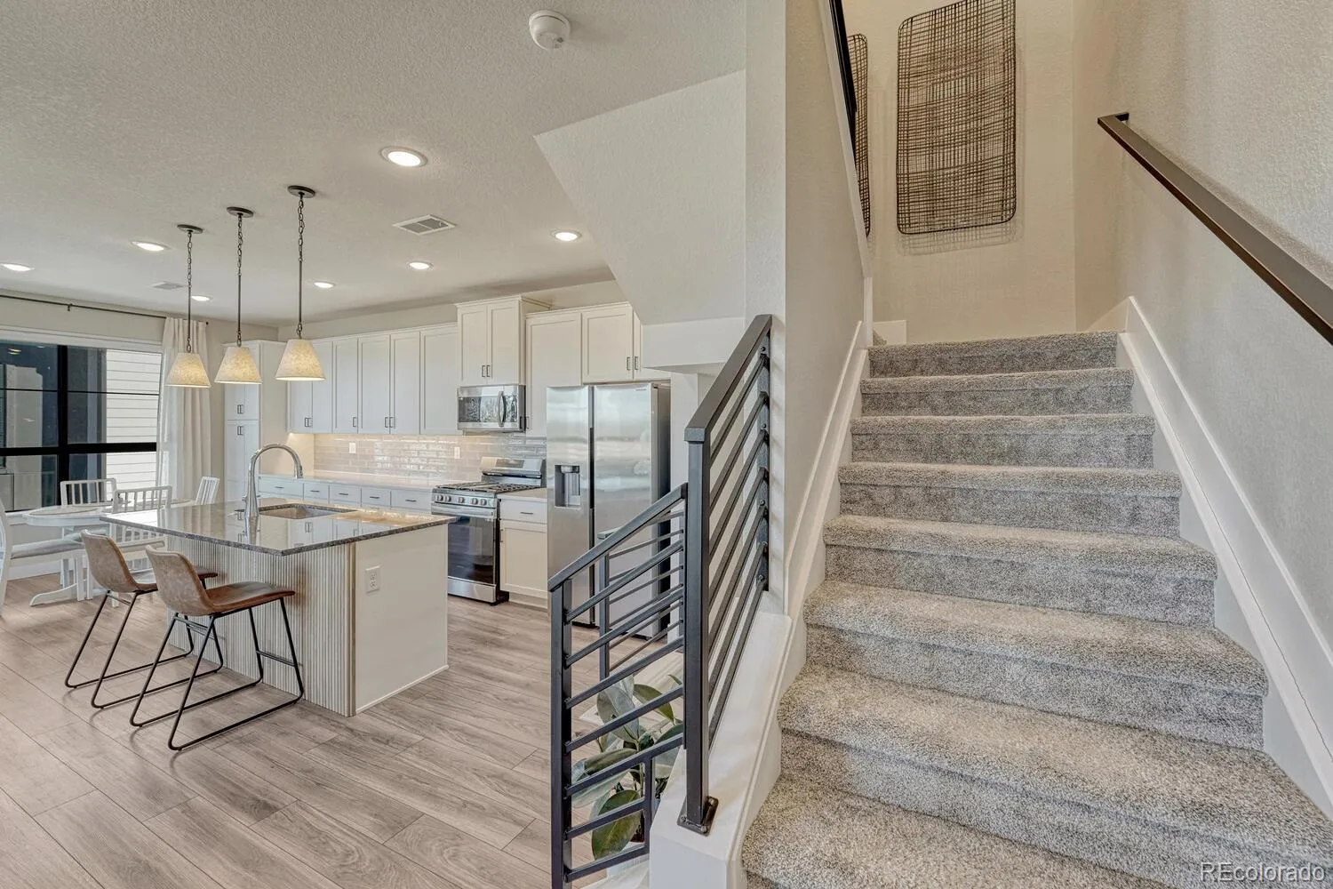 This better-than-new townhouse is ideally located in one of Denver’s most desirable areas and offers over $10,000 in thoughtful upgrades added by the seller in just over a year of ownership. Enhancements include extended kitchen cabinetry with quartz countertops for added storage and pantry space, along with custom closets installed in 2025. Perfectly blending modern living with urban convenience, this home is situated minutes from Cherry Creek and downtown within The Hub at Virginia Village, a community known for contemporary design, open-concept layouts, energy-efficient systems, and premium finishes. The impressive three-story Baxter floor plan begins on the lower level with a welcoming entry that leads to a functional mudroom with a built-in key drop and direct access to the attached two-car garage. The main level features a bright and open great room that flows seamlessly to a covered patio, ideal for indoor-outdoor entertaining, while the stylish kitchen showcases Samsung stainless steel appliances, an oversized center island, elevated finishes, and a charming dining area perfect for gathering. Upstairs, two generously sized secondary bedrooms share a full bath with premium Kohler fixtures, complemented by a linen closet and a conveniently located laundry room. The luxurious primary suite serves as the centerpiece of the upper level, offering a spacious walk-in closet and a private bath with dual vanities and a walk-in shower. The home feels light, fresh, and welcoming throughout. Built-in smart home features, including a Ring video doorbell and a smart garage opener with video capability, provide added security and peace of mind, making this Baxter model at The Hub an exceptional opportunity for those seeking modern design, thoughtful upgrades, and an unbeatable Denver location.